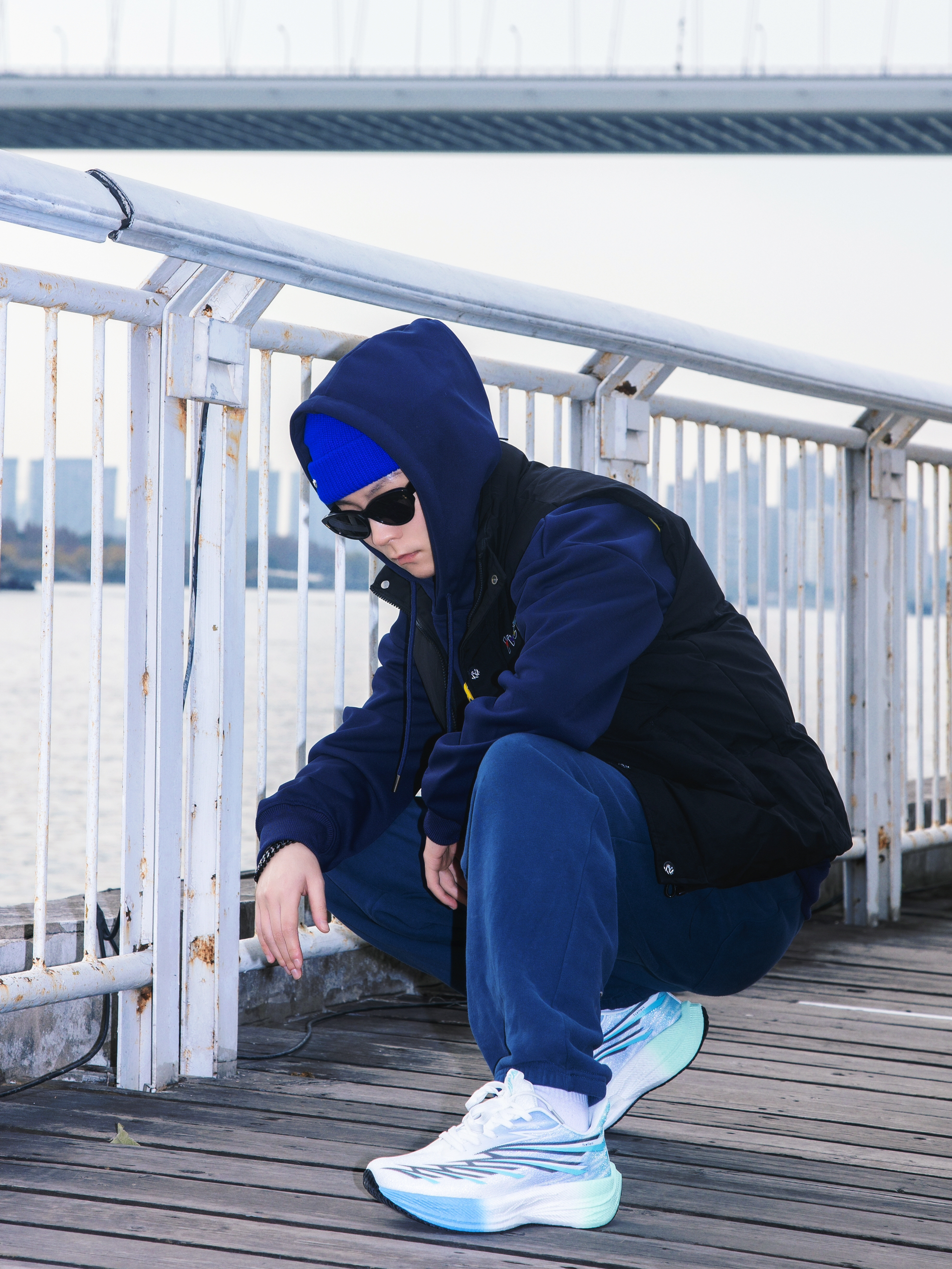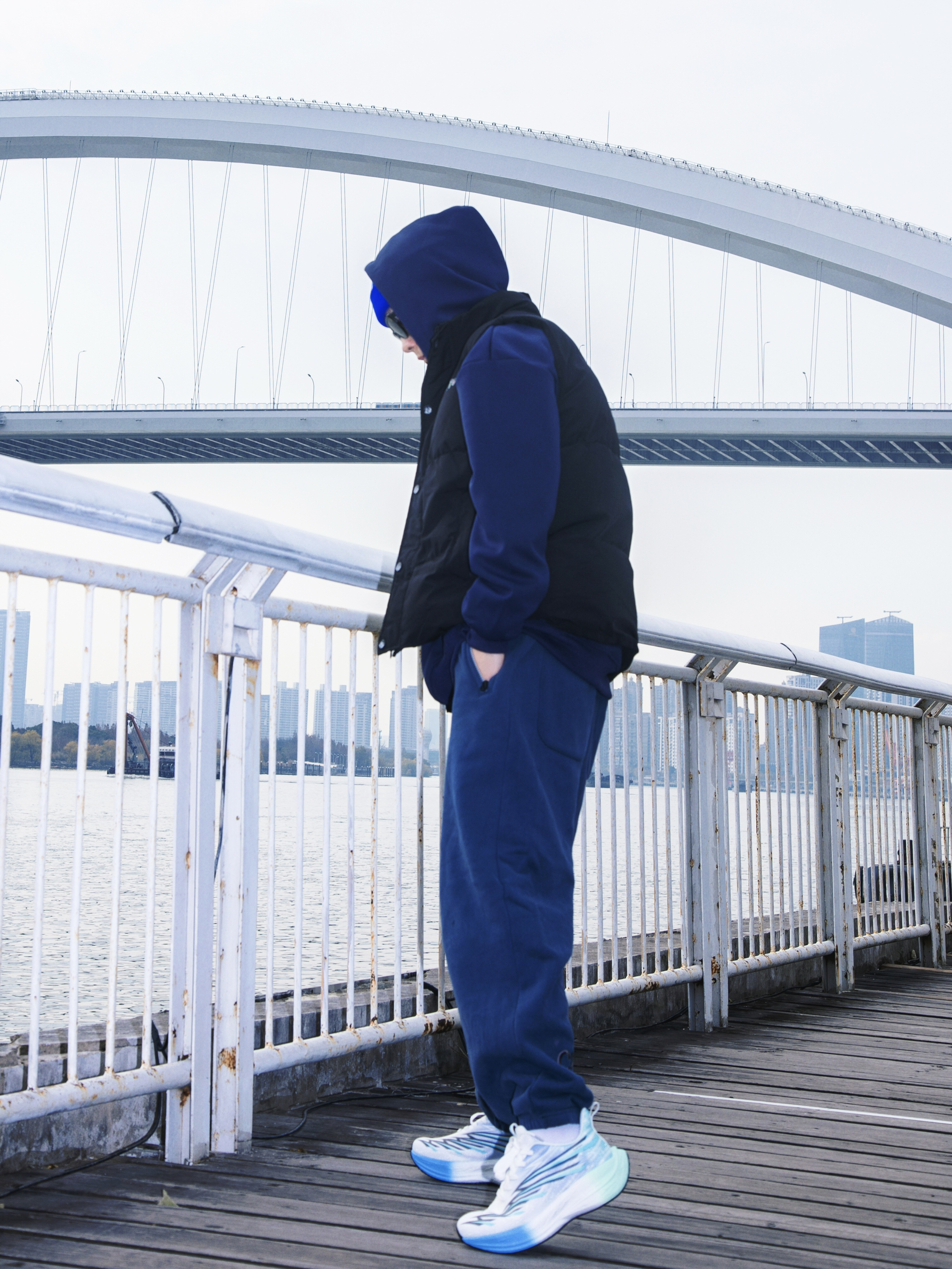 想要休闲舒适 还是运动风缀好穿 分享一套冬日运动休闲穿搭 穿搭指南: 上身一件藏蓝色连帽卫衣 宽松版型加绒加厚 保暖又舒适 外搭一件黑色羽绒马甲 叠穿增加层次 时髦与温度并存 配一条同色系运动卫裤 上脚一双tcellars跑步鞋 蓝绿白拼接配色 清爽有少年感 舒适的脚感 运动逛街两不误 冬季懒人穿搭 运动风就对了