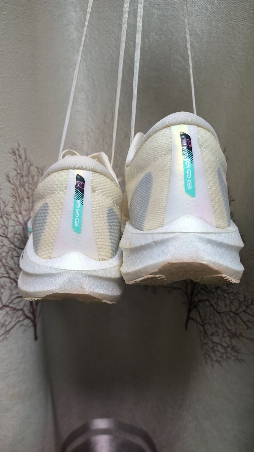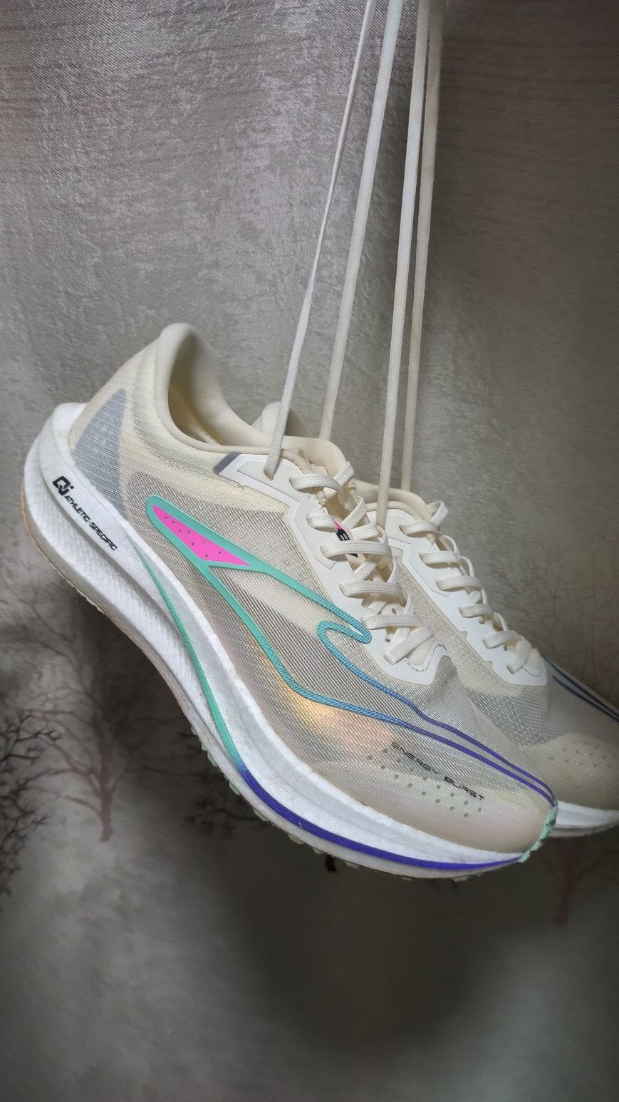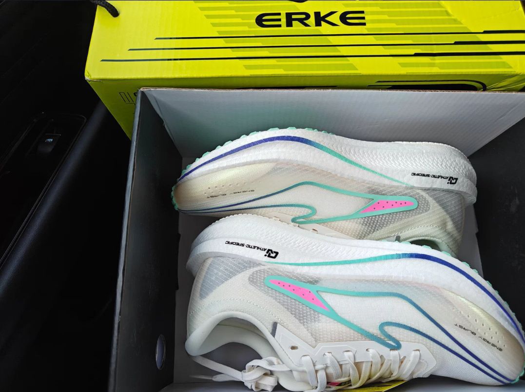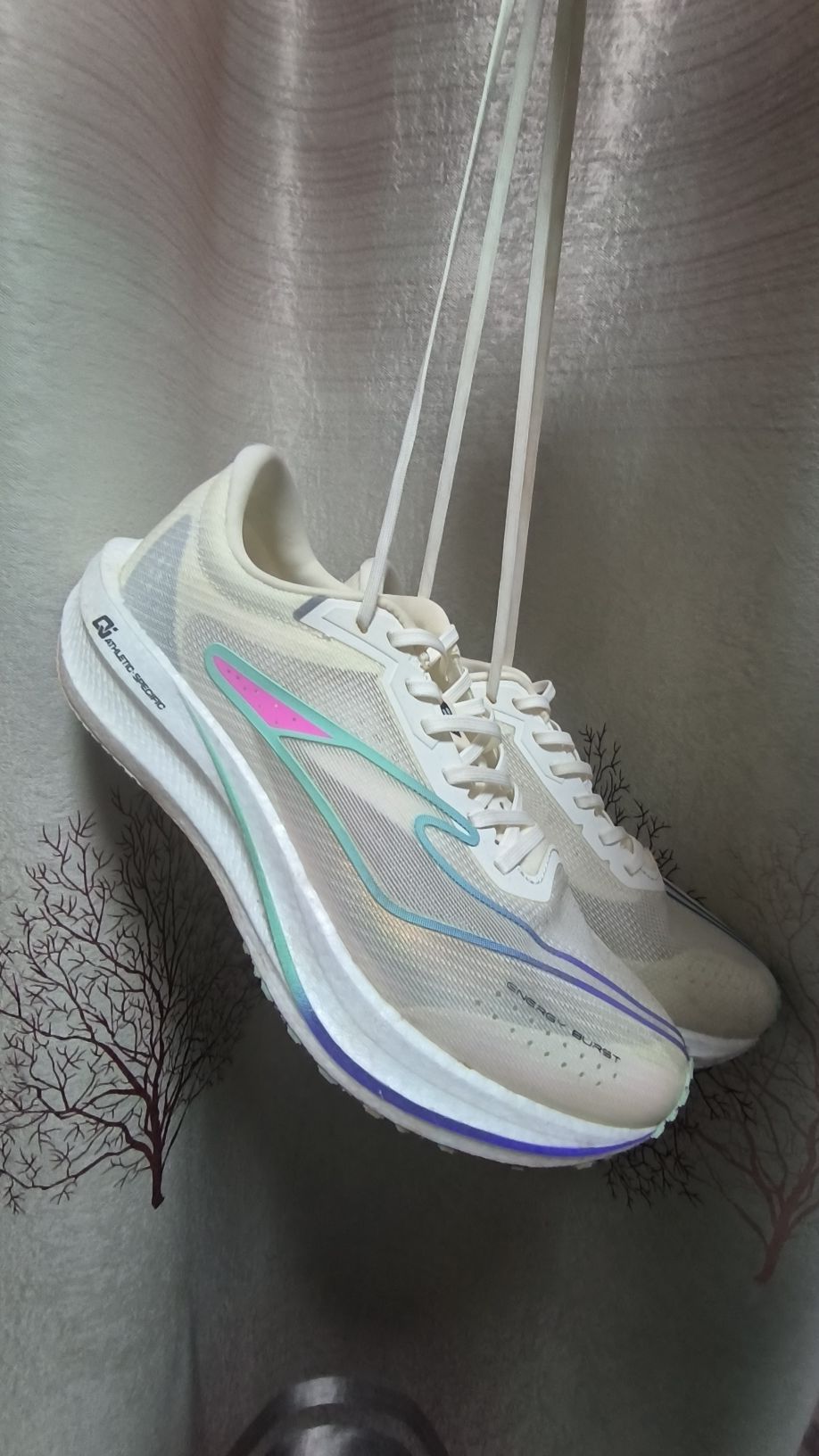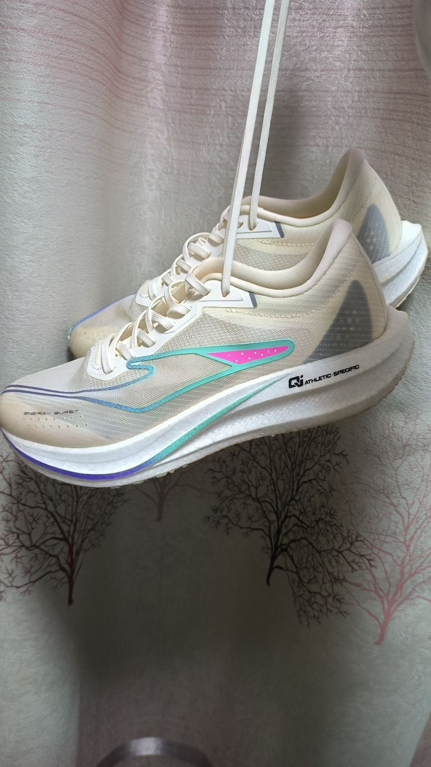鸿星尔克极风2.0 颜值天花板,十分炫酷 鞋面透气,面料舒适,就是容易磨损 脚感软弹,鞋底防滑,雨天不怕 薄底竞速跑鞋,适合跑场地 不适合大体重,缓震有限 鞋舌容易往两边偏