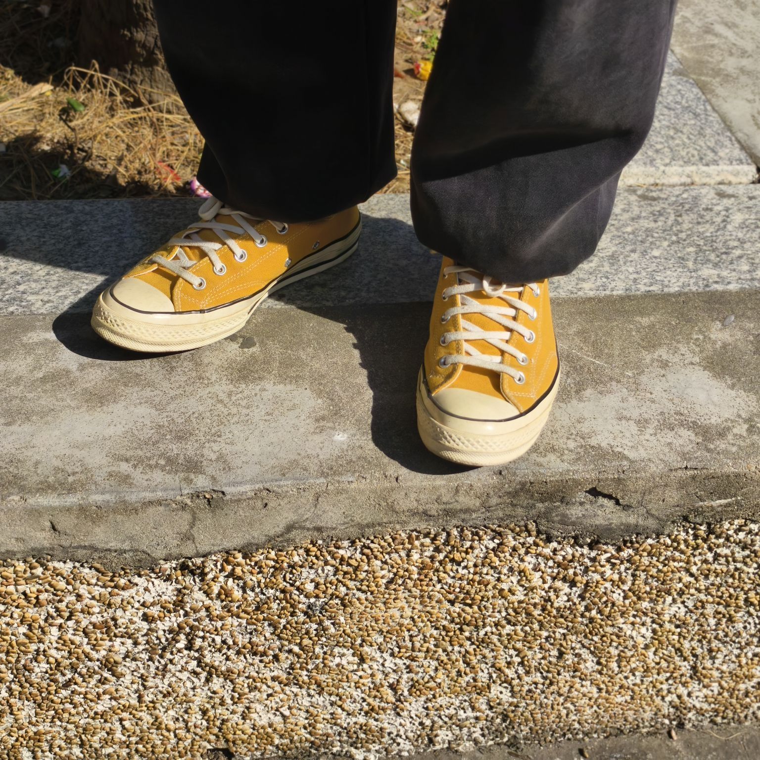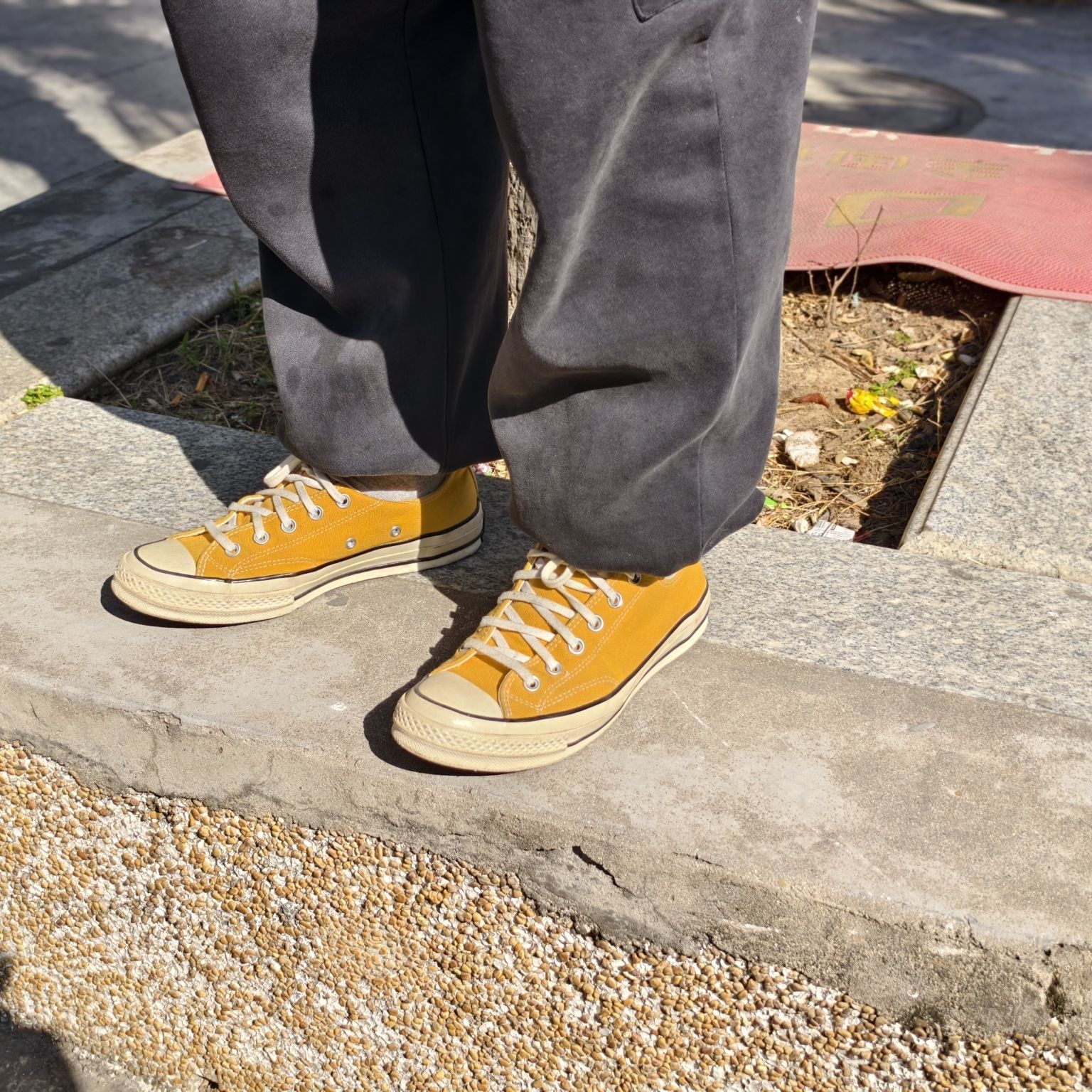 今日出门吃饭上脚👞 匡威1970s低帮奶酪🧀 匡威低帮奶酪黄🧀真的太好看啦 超级耐看越看越喜欢的黄色 阳光下的匡威是暖色的~ 好穿又好搭