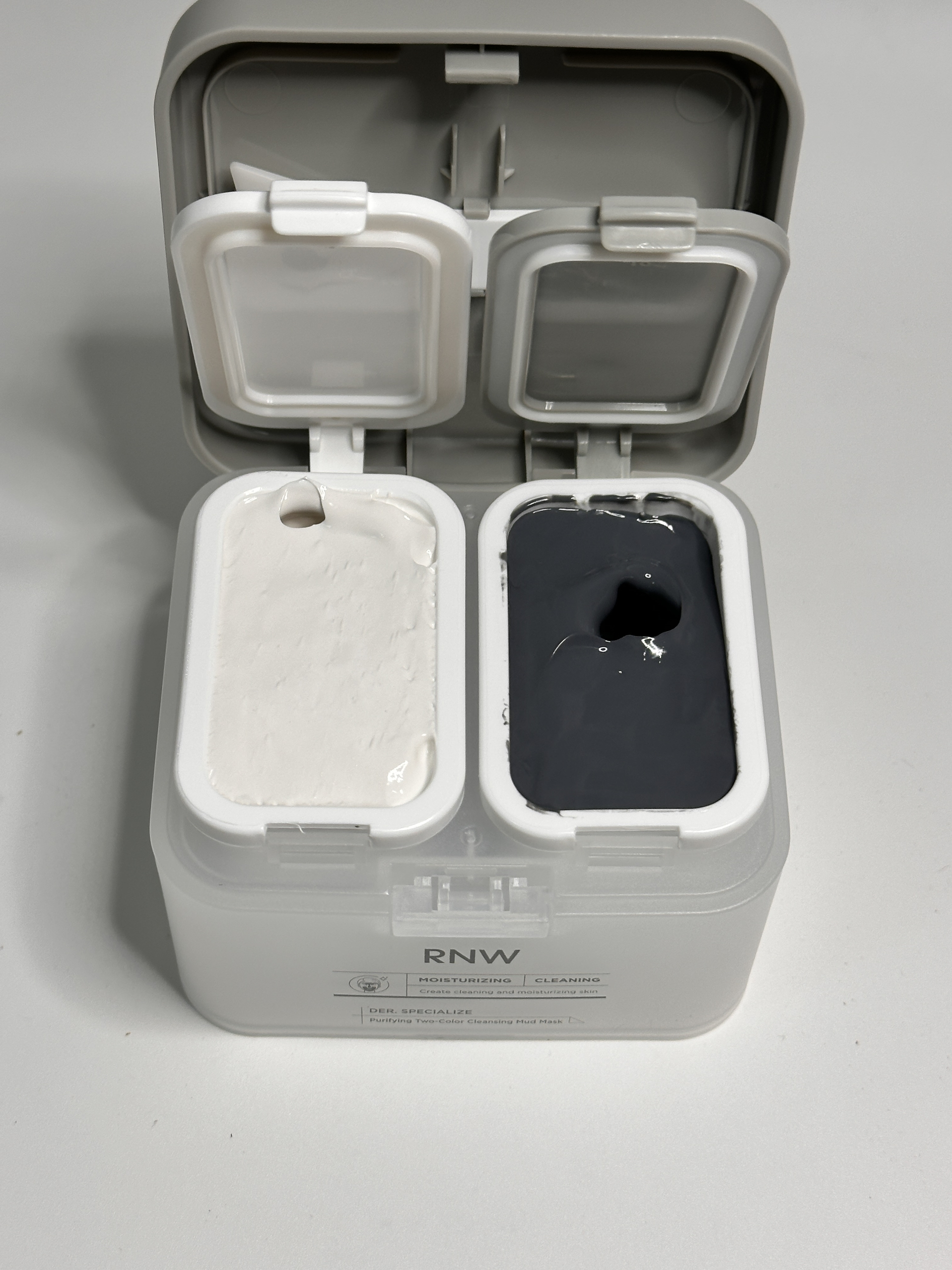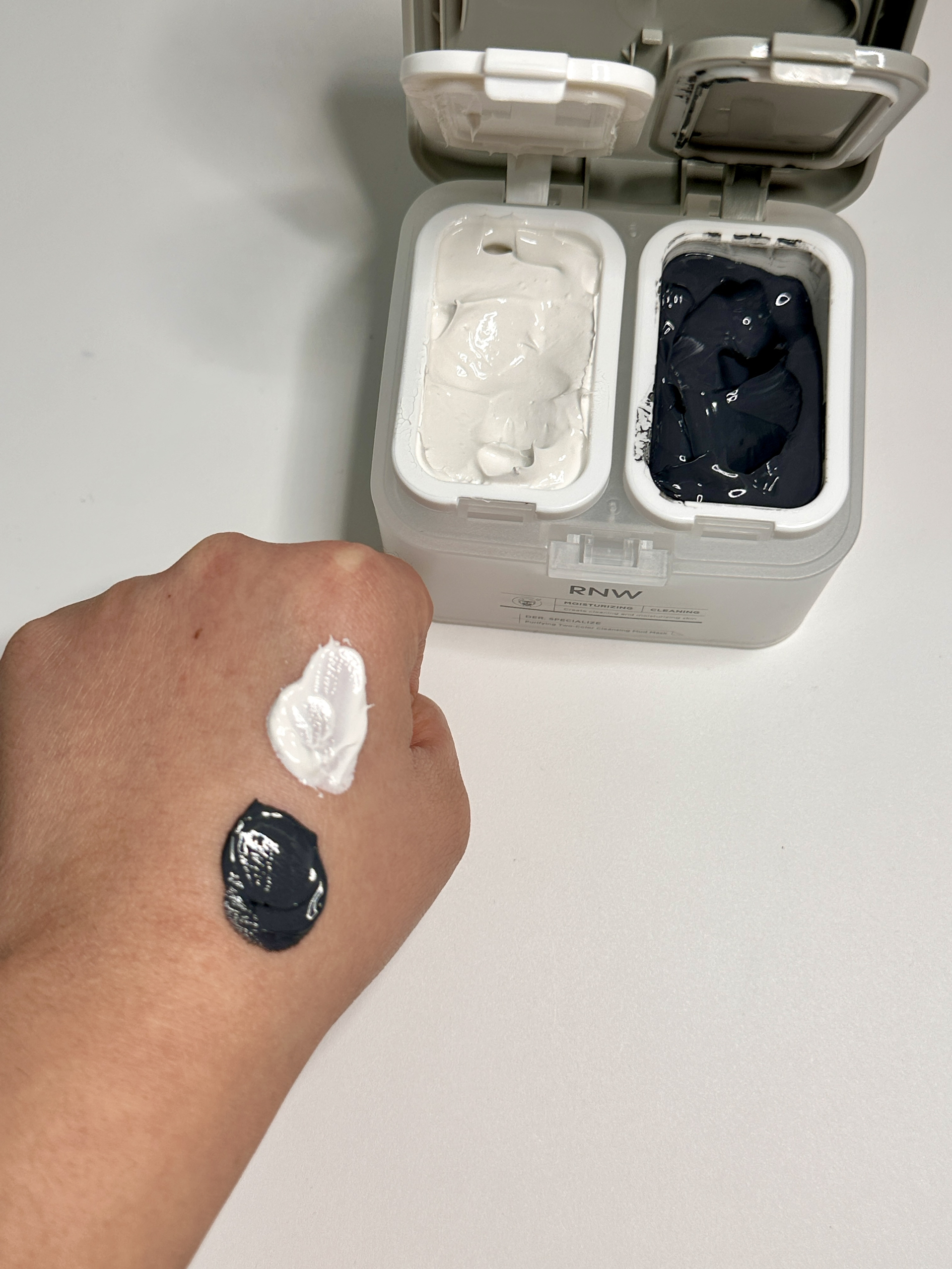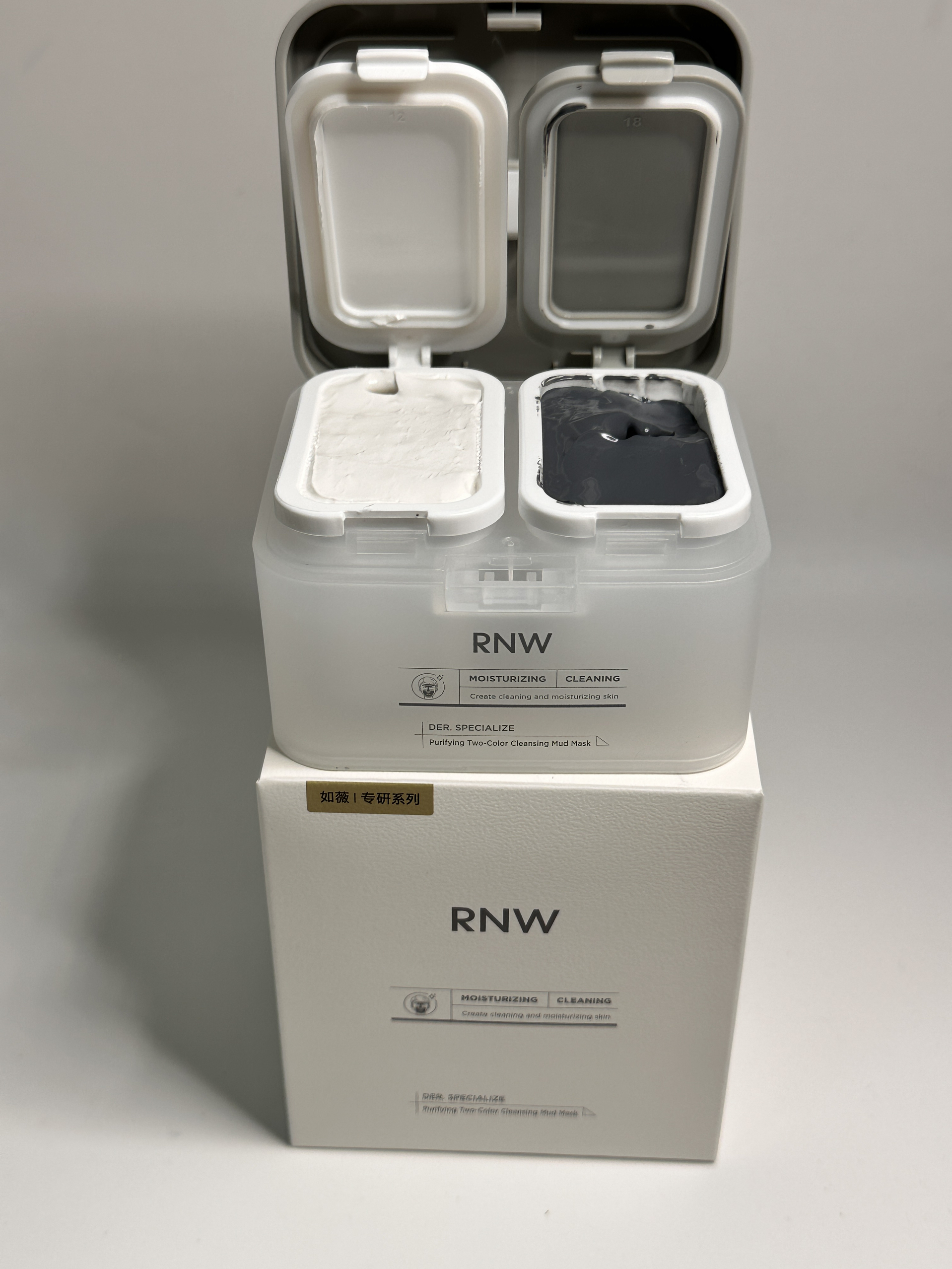 这款rnw双色泥膜真的好好用 质地丝滑软糯 上脸很好推开 冰冰凉凉的超舒服 温和舒服完全不会有紧绷 t区黑泥吸附脸上多余油脂 减少油光 u区白泥水润保湿 改扇皮肤粗糙暗沉 清洁力强保湿效果也很好 坚持用了一段时间皮肤状态真的有在变好~隔天美美化妆出门也不会卡粉啦