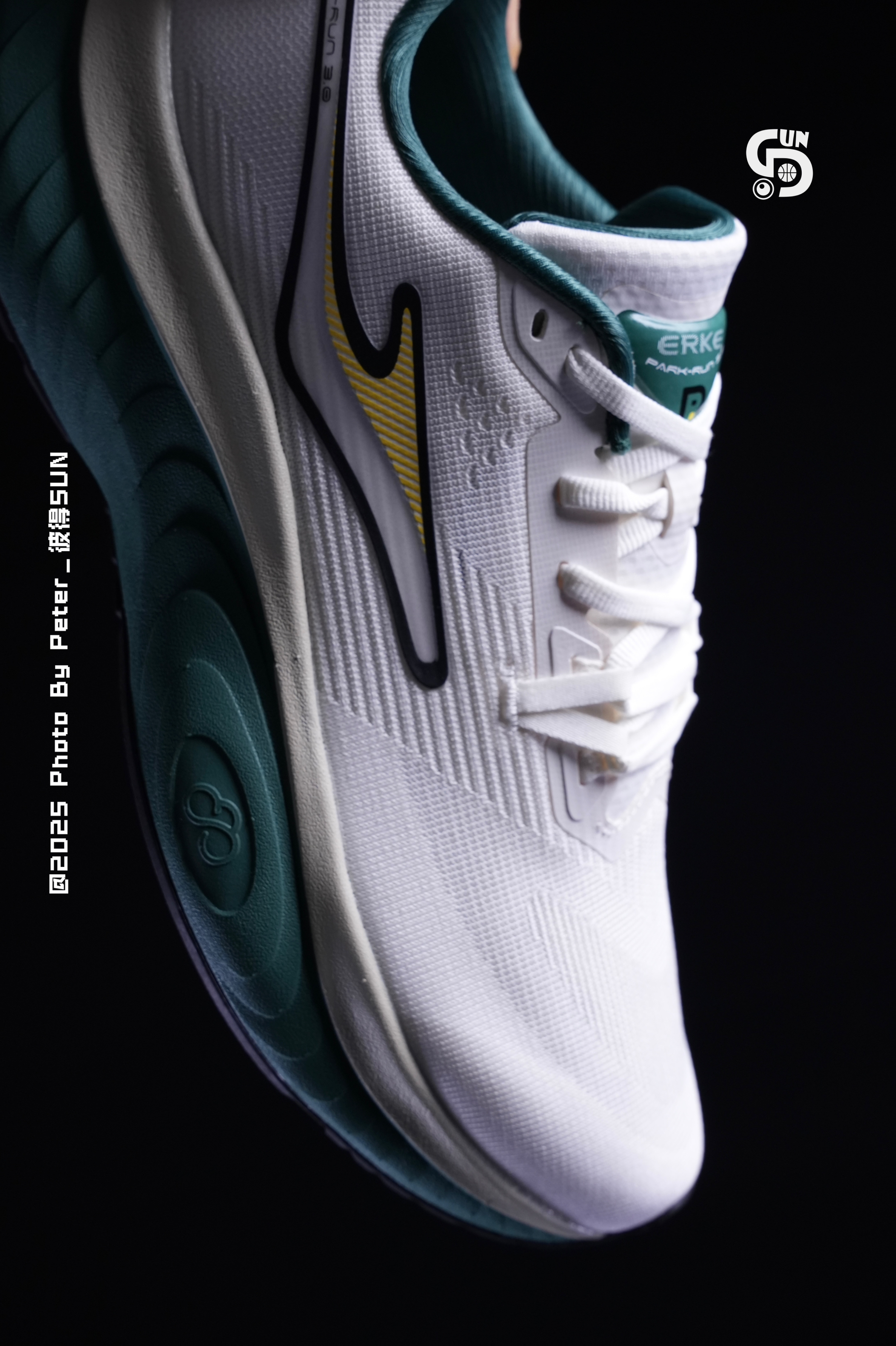 今天分享一下尔克家最新的公园跑2.5跑鞋 颜值当面我还是挺喜欢的 白色鞋面比较百搭 中底外侧是类似履带的设计还挺酷的 深绿色接近墨绿的颜色比较好打理 另外就是尔克用了这个新Logo以后 整体确实大气了不少 这鞋子我觉得平时通勤穿也挺不错的 我穿着公园跑2跑步时 速度不用很快 缓震感受也是挺明显的 比较轻弹,落地时舒适不拖沓 我特别喜欢它中底连接鞋面部分给了一个环抱的上包设计 这个配合外扩的中底给...