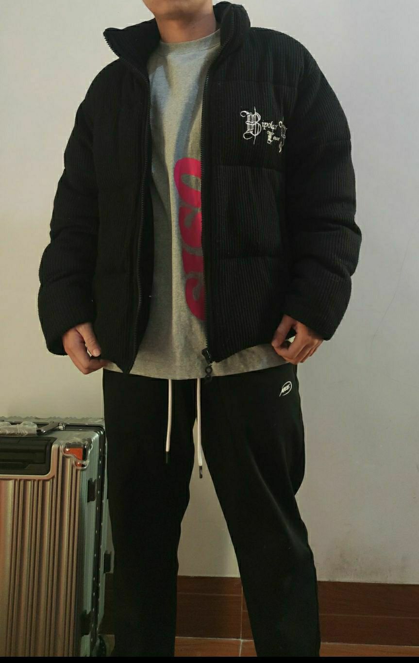 尽量选择短款的棉服或者羽绒服拉高腰线,露出内搭长袖的下摆,更显得有层次感,再搭配一条比较有坠感的直简长裤,长度稍微盖住脚背,这样就十分可以啦😘😘😘