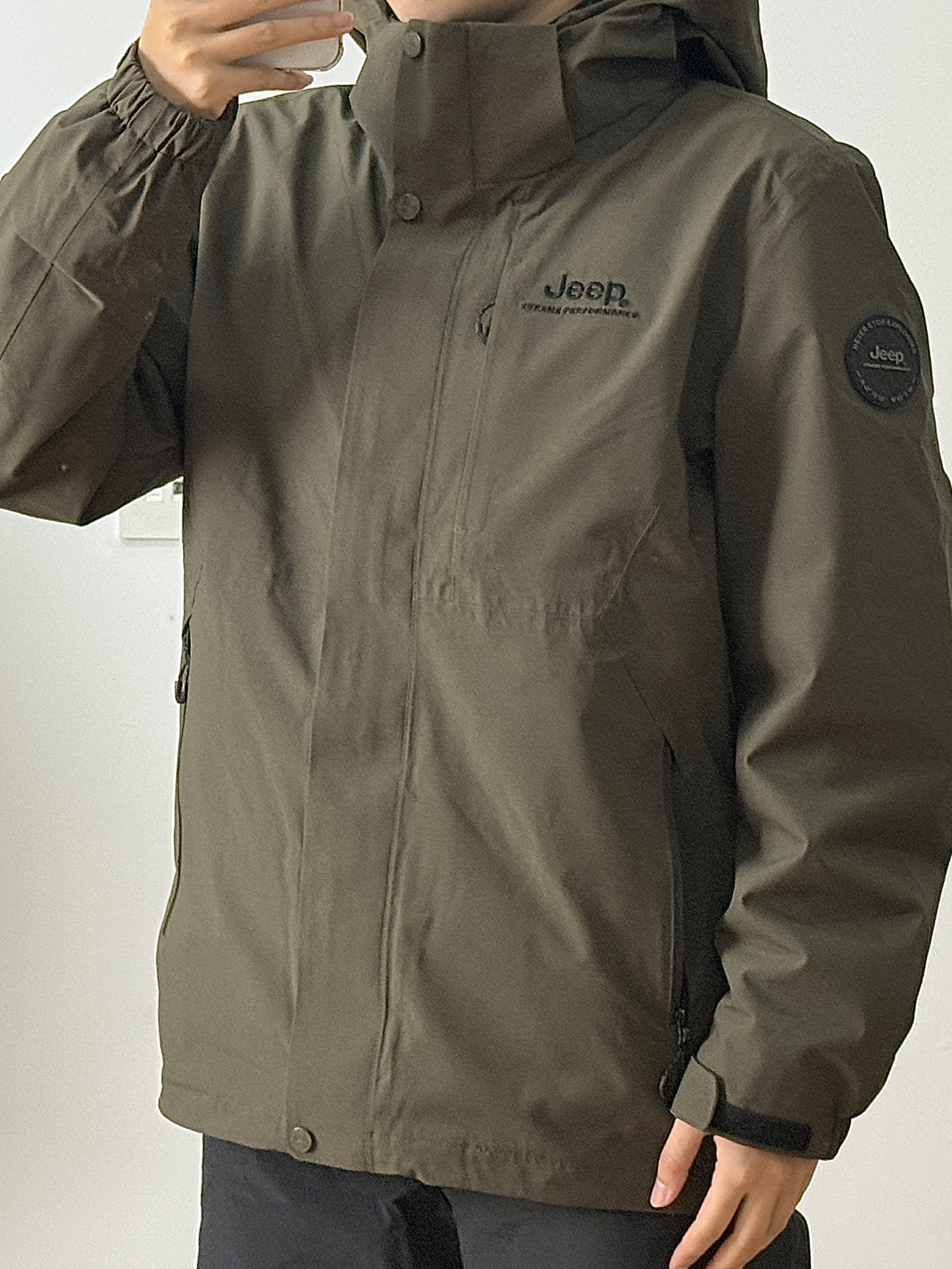 💥今日分享超酷户外穿搭! 👕橄榄绿jeep冲锋衣,防风防水,连帽设计,袖口收口,品质个性兼具。 👖黑色始祖鸟冲锋裤,防水宽松,裤脚可调,活动自如。 👟白色空军一号,提亮造型,舒适百搭。 💡这套穿搭,户外出行或日常皆可,功能时尚两不误,尽显独特品味。
