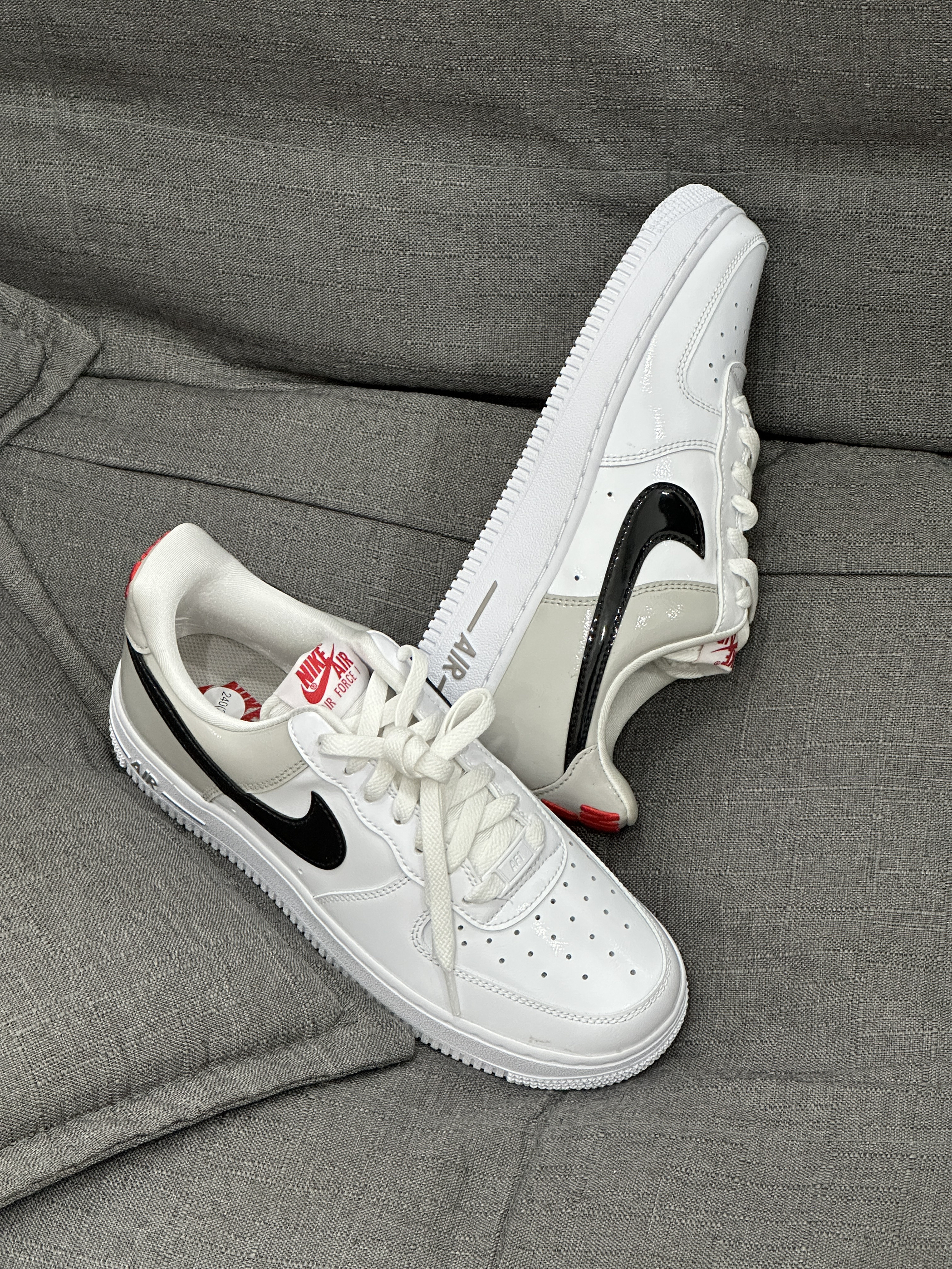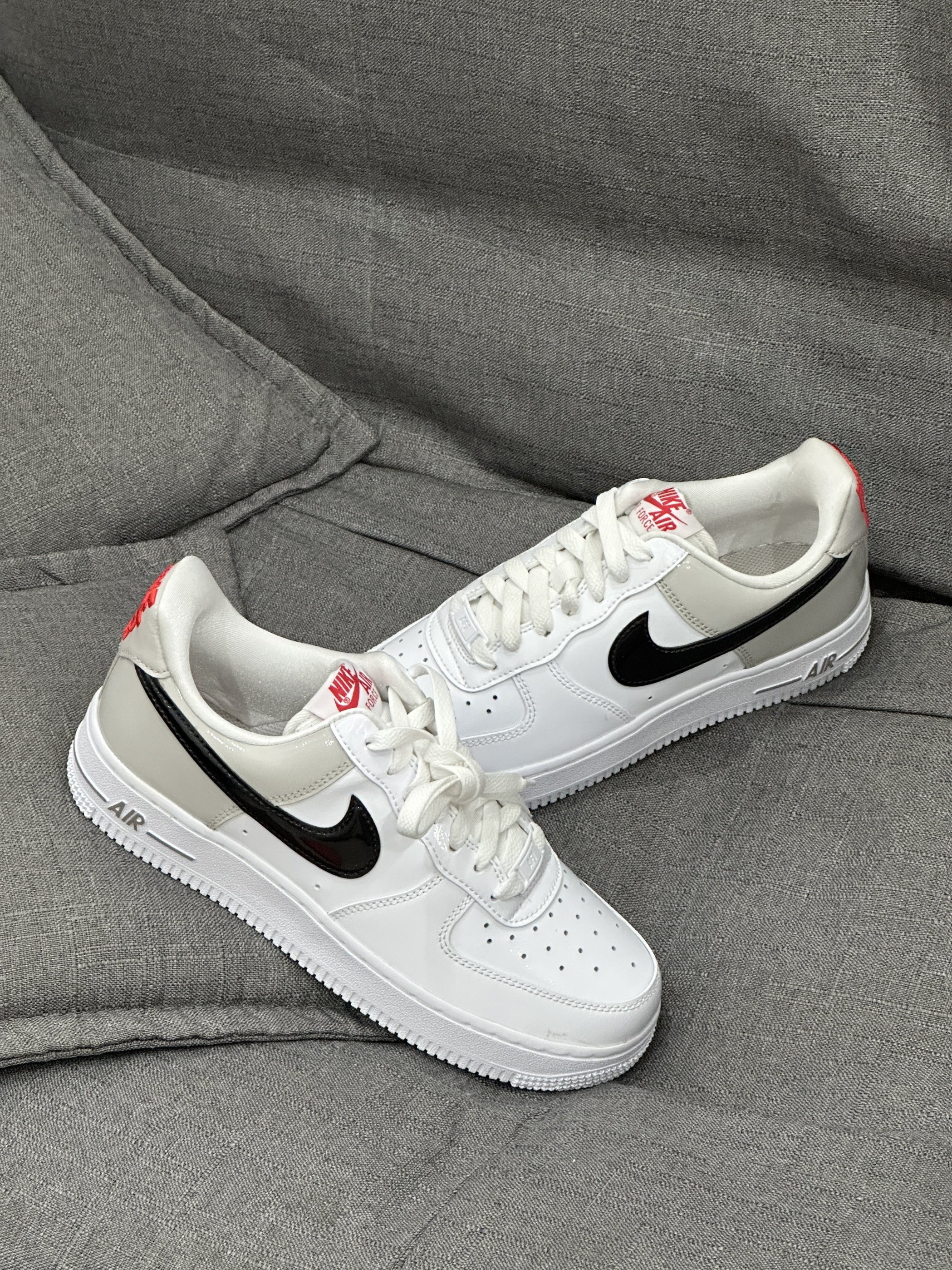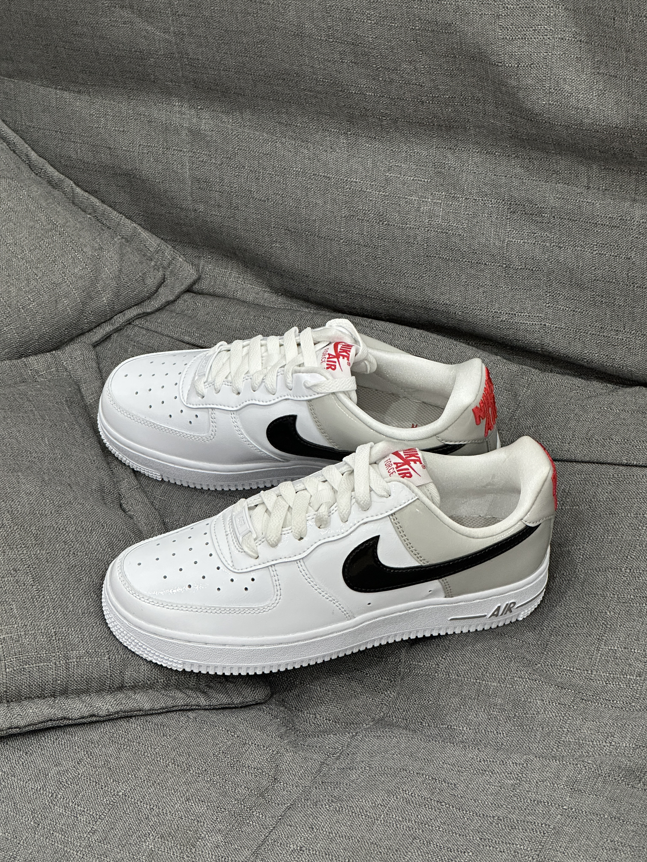👟:Nike Air Force 1 Low 白黑 hello,这里是陈白羊🐑! 睡前给大家分享一双性价比不错的Air Force 1 鞋身整体以白色与灰色为主色调,细节部分辅以红色、黑色点缀,结合高级又优雅的漆皮材质鞋面,层次感鲜明。特别是后跟醒目的刺绣工艺呈现的Nike Air与鞋侧的黑色SWOOSH属实给整体外观加分不少。 目前3️⃣0⃣️0⃣️➕的一个入手价个人感觉还是不错的,喜欢的...