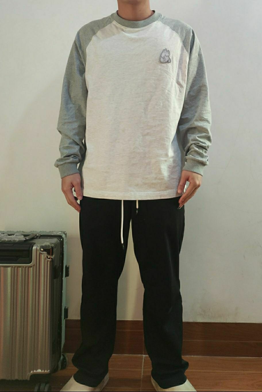 内搭一般我都会买大一码的,为了搭配穿外套的时候漏出下摆,显得更有层次感一点,至于内搭的颜色如果不知道怎么选择,黑白灰是不会出错的而且十分好搭配。