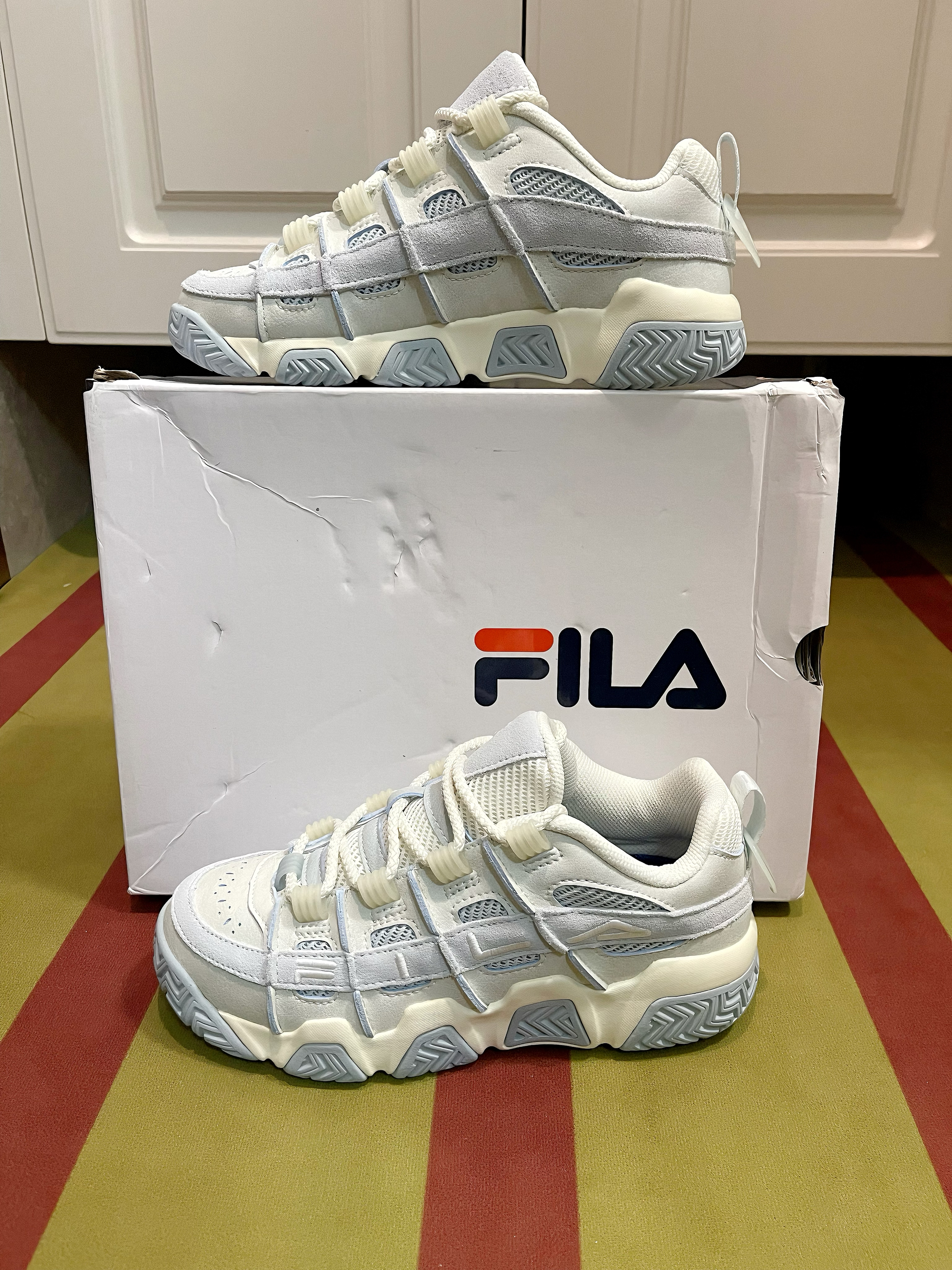 本篇笔记关联了FILA/斐乐 Barricade 休闲时尚 复古 减震耐磨 舒适透气 轻便防滑 织物 合成革 面包鞋 篮球鞋 女款/香草冰等商品,为用户提供真实的使用体验和购买参考。