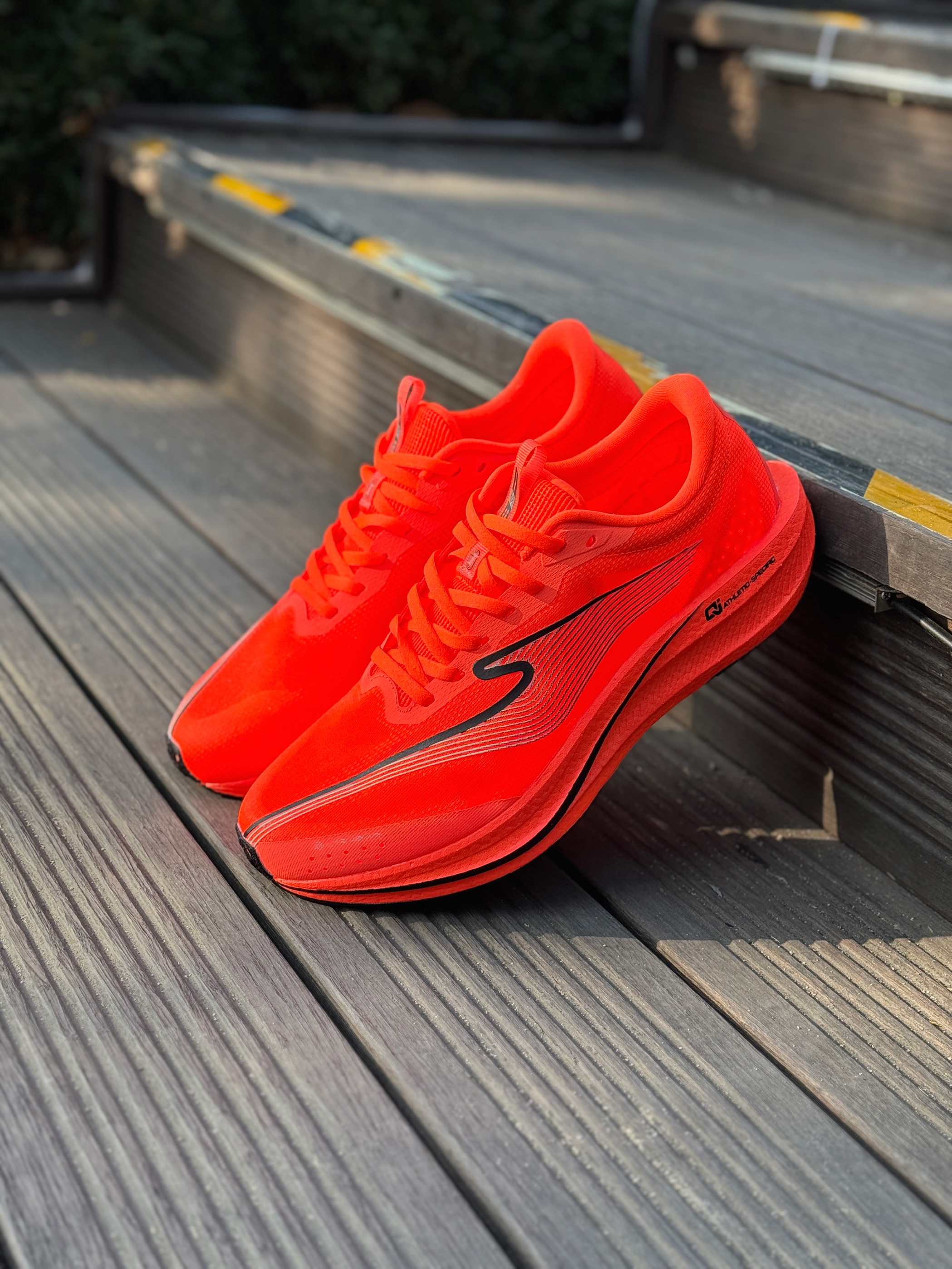 离春节不远了 跑步锻炼不能停!还在备战中短距离、体测体考的同学们一定要坚持!今天分享一双极风2 Plus新配色~~元气满满! 橙色鞋身非常醒目 侧面黑色线条勾勒的鸿鹄Logo我特别喜欢!新年穿这双很适合 这颜色挺讨喜! 贾卡鞋面透气轻薄 脚面包裹性舒适! 薄底设计重心低 6mm跟差非常适合竞速竞训 鞋子场地感很好!这也得益于它全掌尼龙碳片 + 超临界发泡材质的中底组合 脚感澎湃 回弹舒适!跑动过...