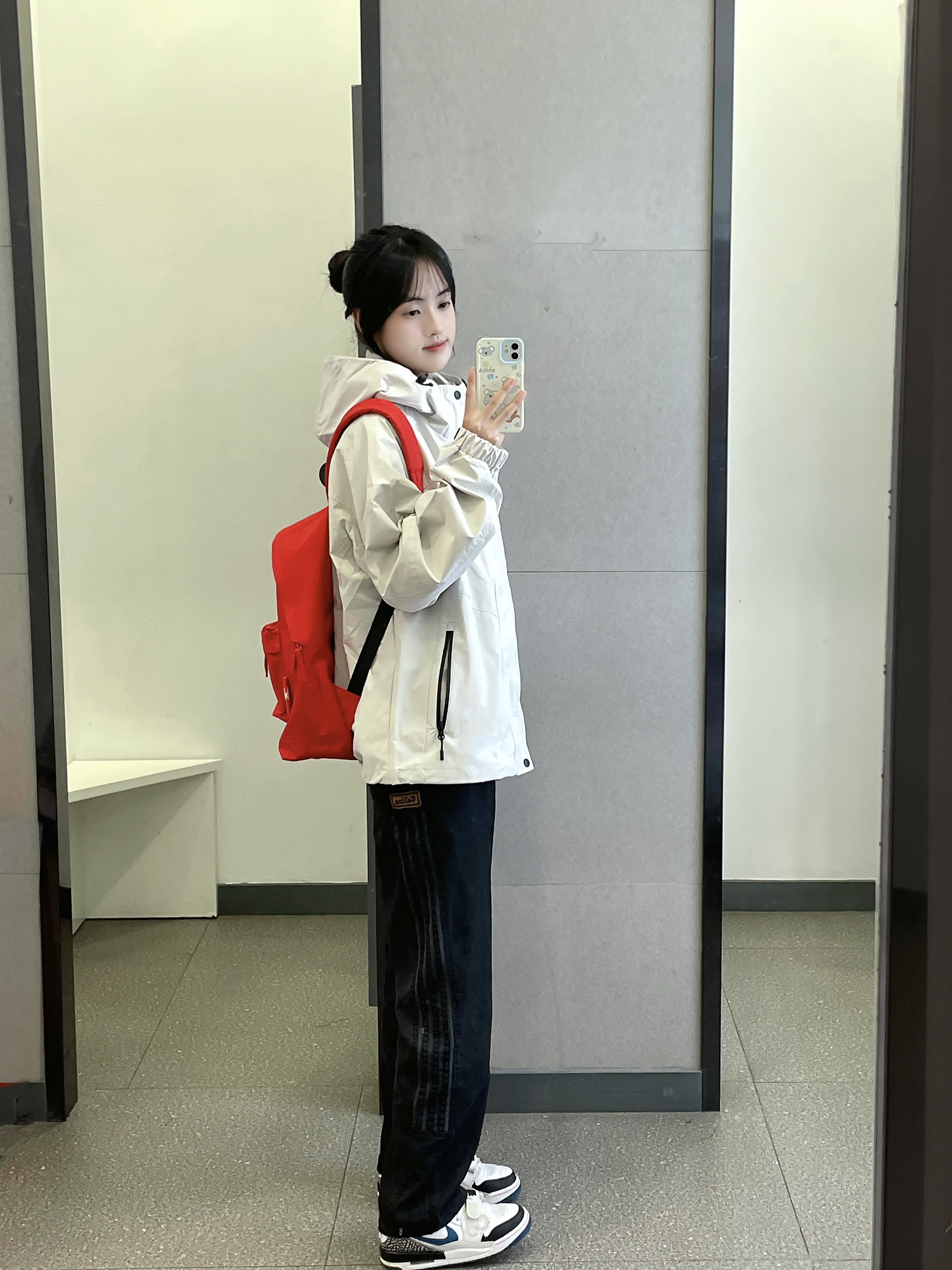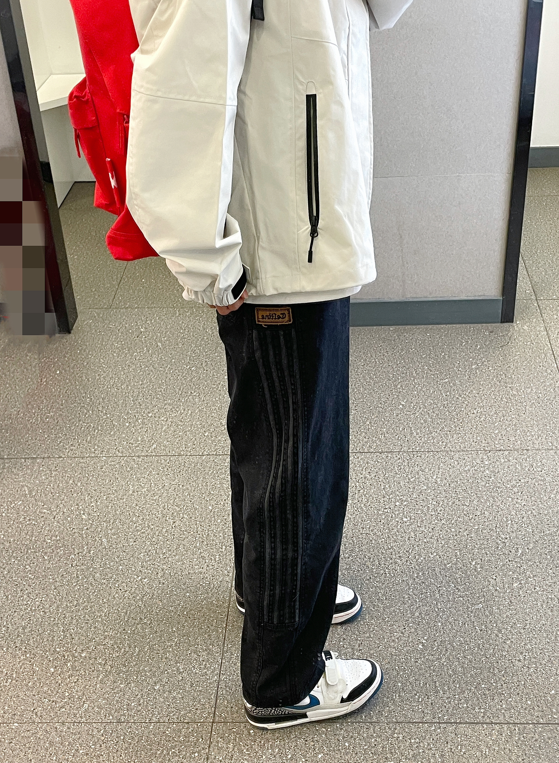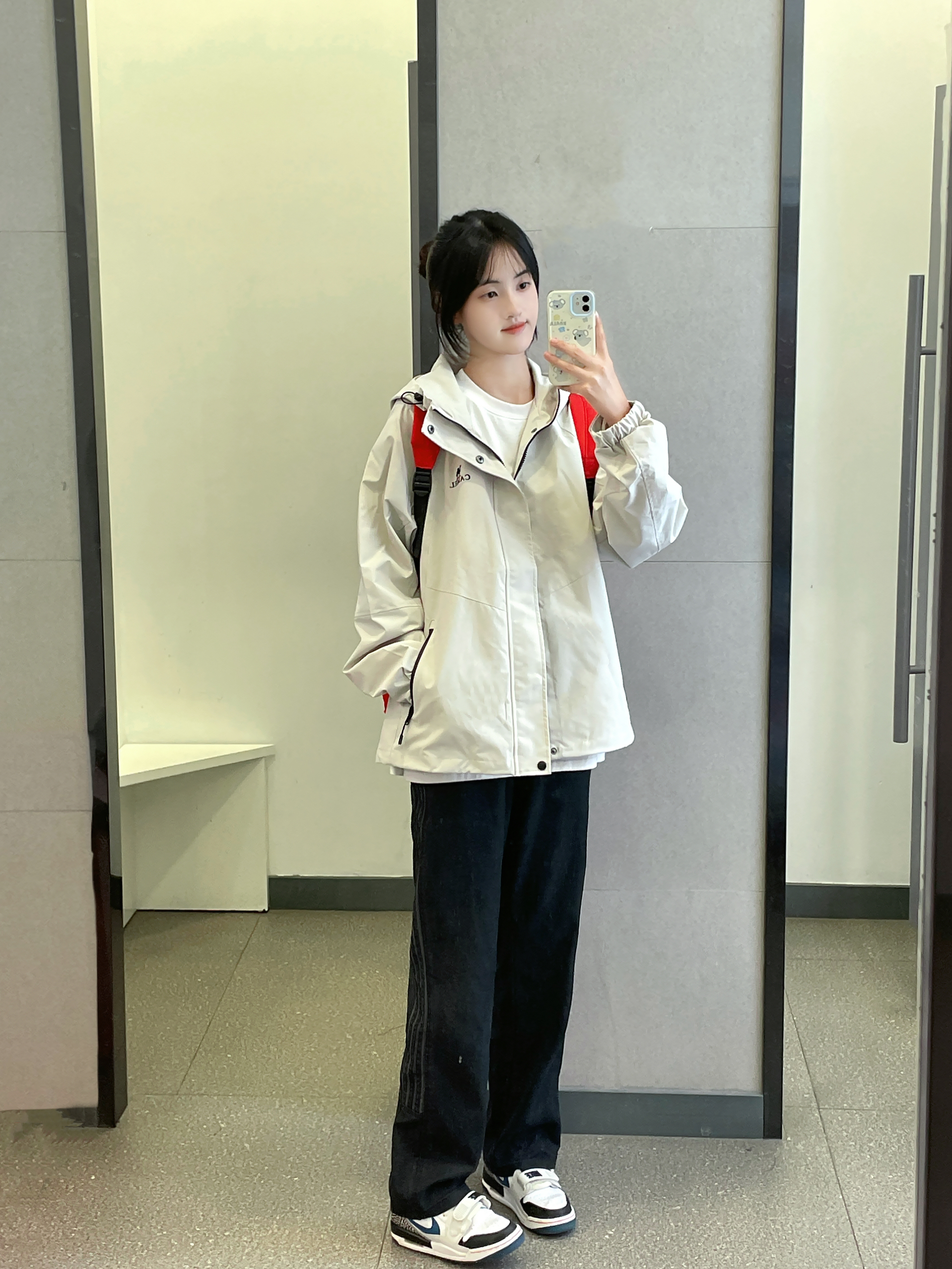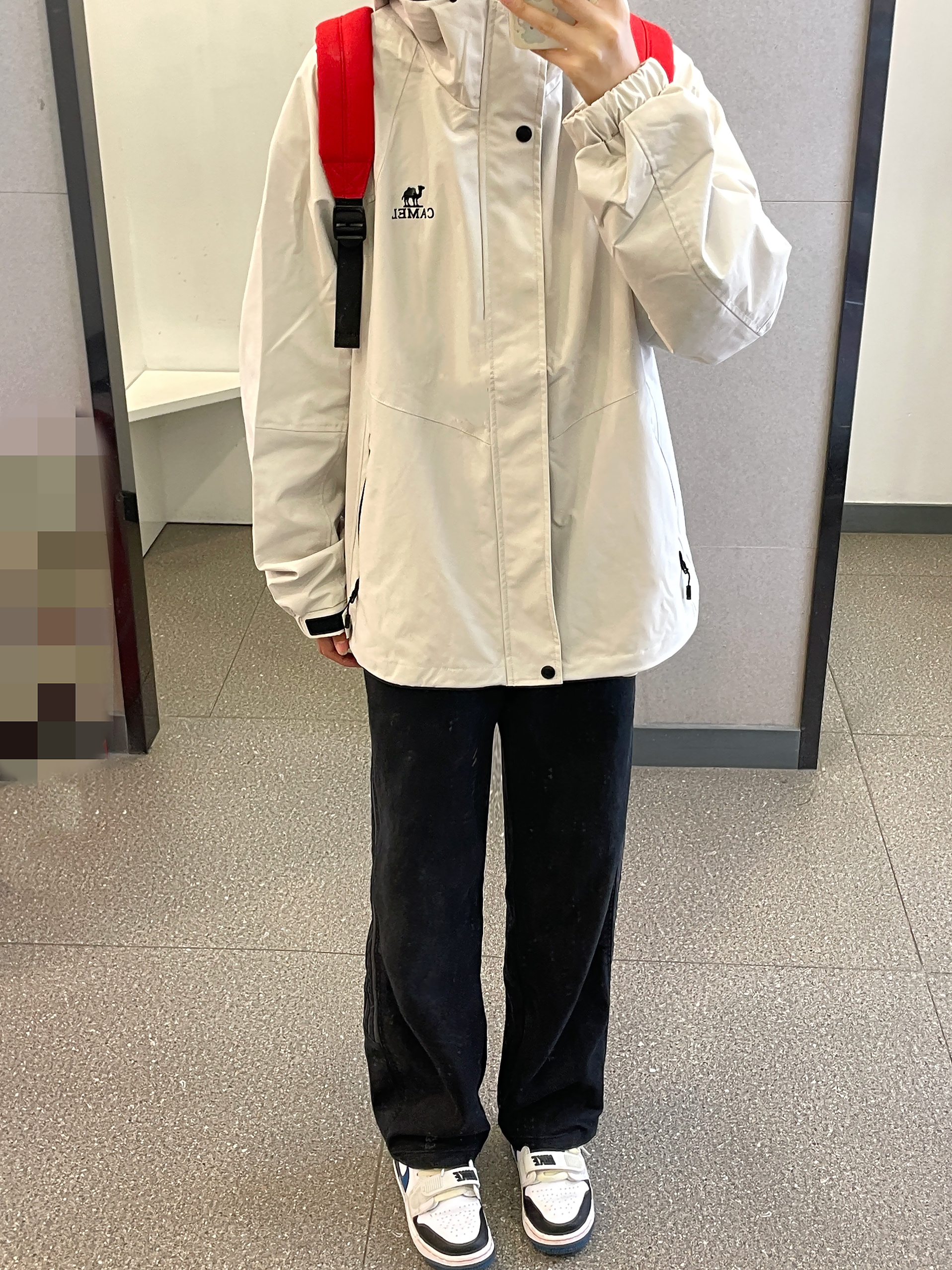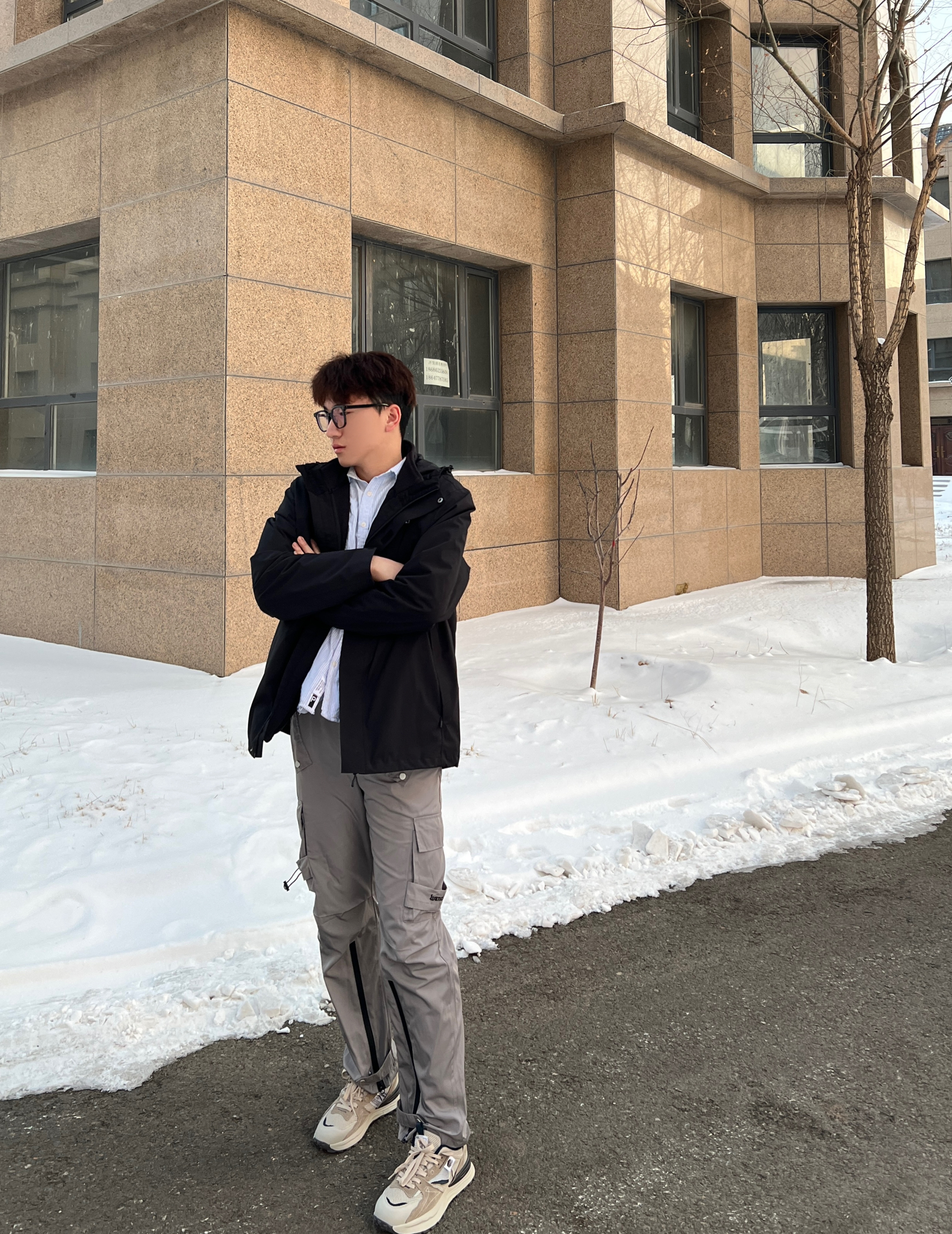 👔 :骆驼米色冲锋衣 👖 :coldstone黑色条纹裤