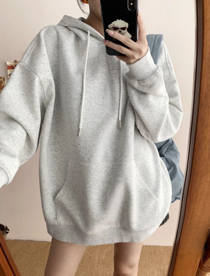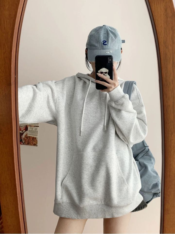 简约好看又百搭的一件连帽卫衣!!浅灰色显白又好看,慵懒又百搭!!