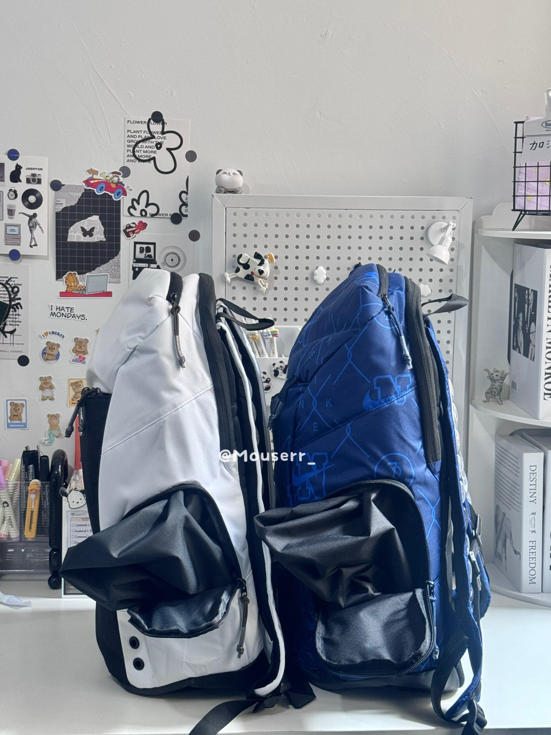 宝子们,今天来给你们分享两款耐克双肩包啦🧐 👈左边白色是老款经典款(DX9786-100):规格:27.9*22.8*48.3cm 👉右边深蓝色是新款(HJ8374-492):规格:29*22*49cm 它们都有着耐克标志性的logo,简约又时尚。包的设计很实用,内部空间宽敞,能轻松装下各种物品。 ⚠️注意注意 1️⃣主袋打开方式跟其他书包很不同哦! 2️⃣包包左侧是双层侧兜哦! 3️⃣包包右侧是...