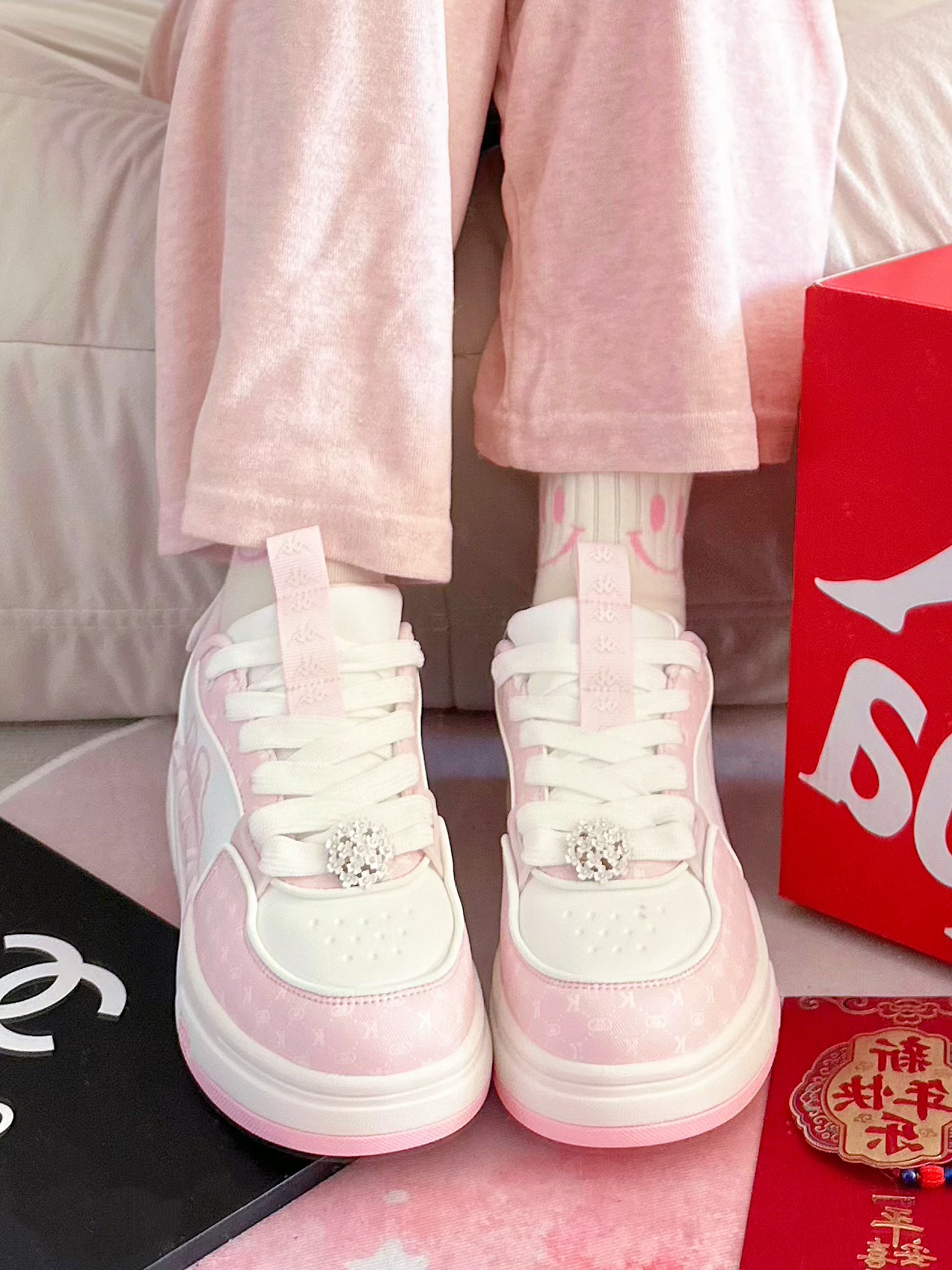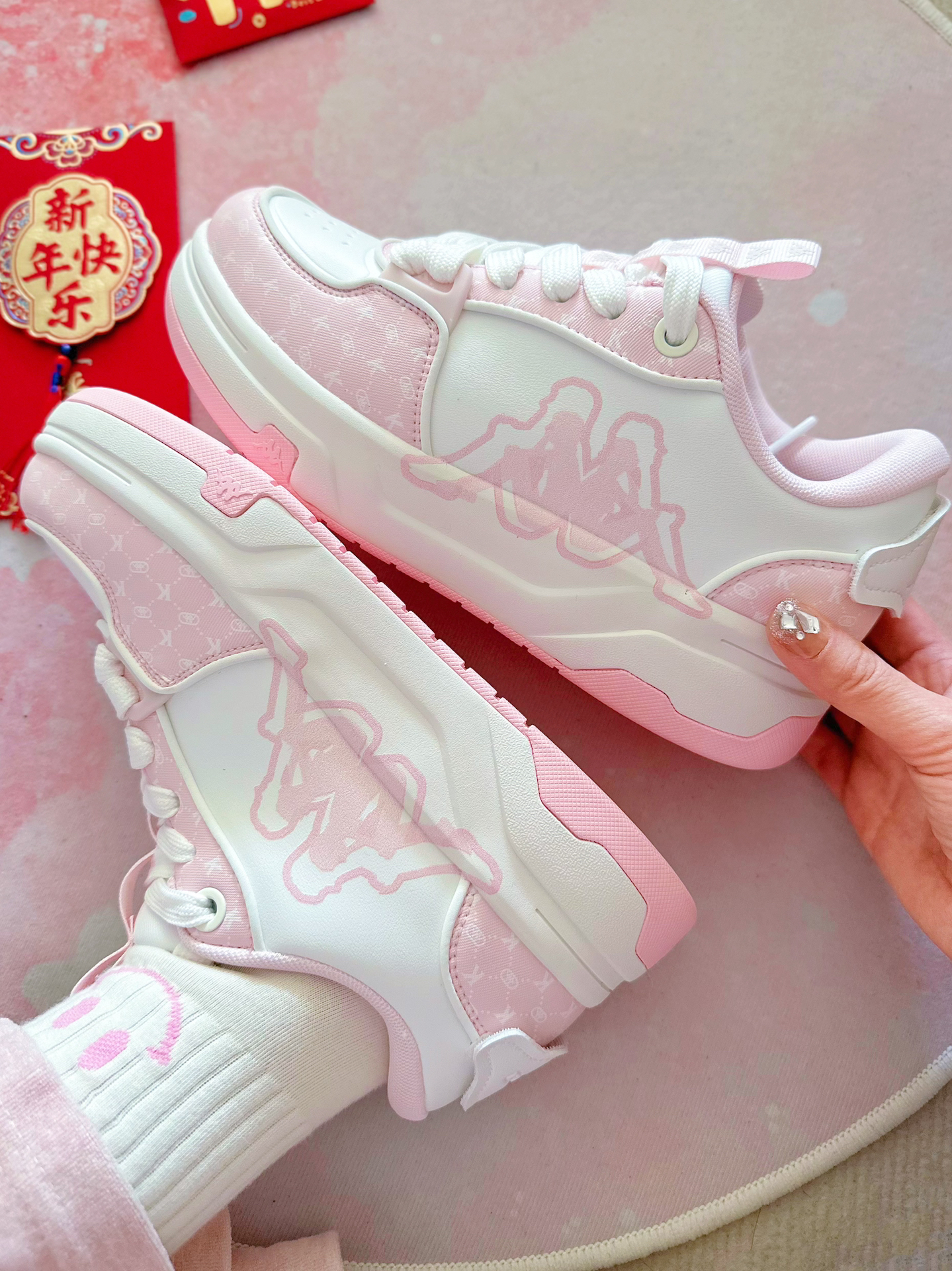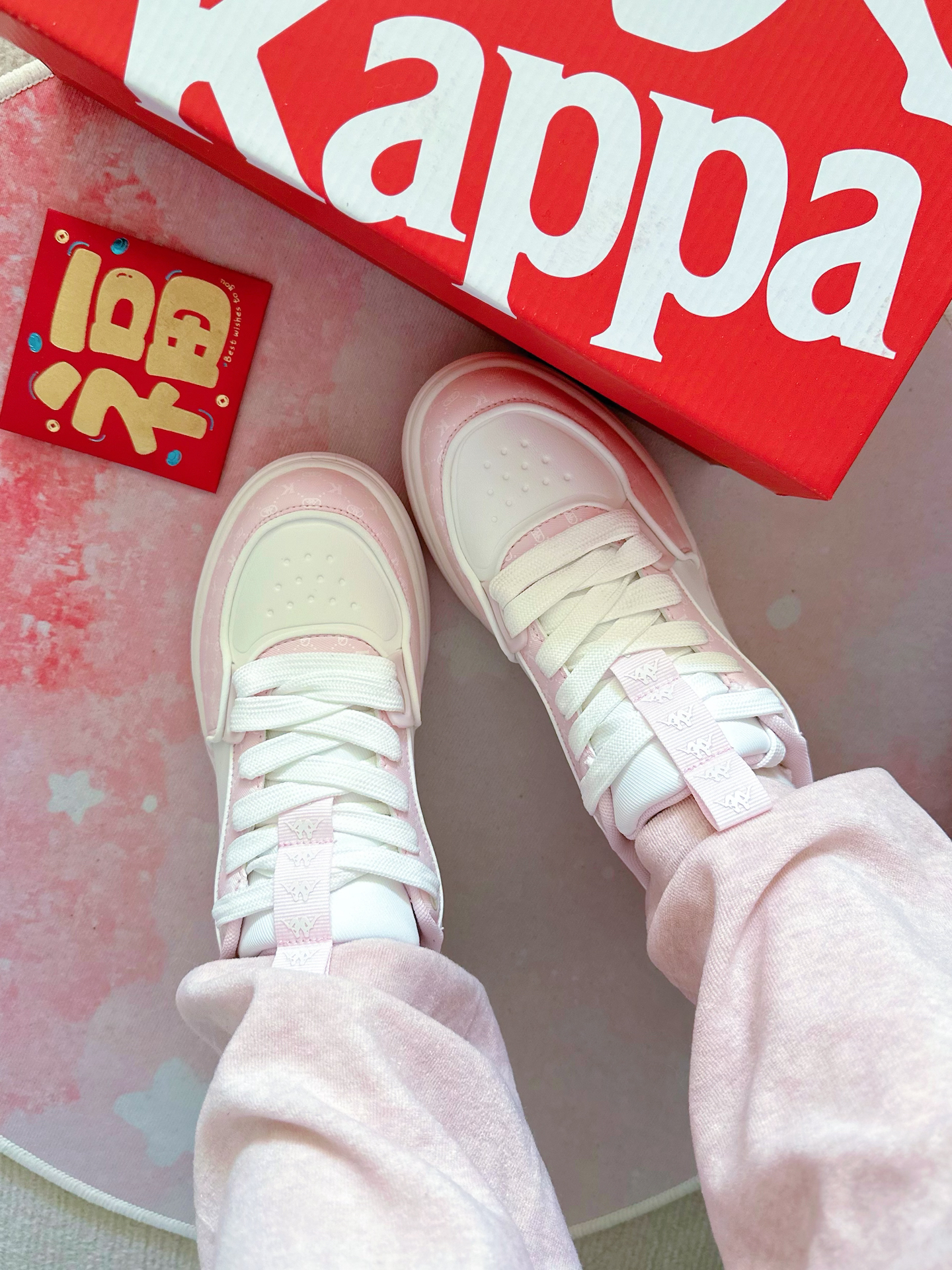 粉糯糯的樱花奶昔🌸看着就是香香哒 狠狠击中老夫的少女心💓 鞋侧大logo更是彰显鞋子档次✌️ 鞋后跟还有鸳鸯图案✔️ 👀卡帕介双板鞋是有些小特别在身上哒 走路软弹,一点都不累🎶 妹妹看到非要我再送她一双作为新年礼物🎁 #哇塞礼物大会 #kappa #谁还没有一双kappa板鞋 #冬天穿这双就够了 #公主的鞋柜必须有这双 #新年买新鞋 #长期主义好鞋 #穿上板鞋板上见 #双旦出街穿这双 #哇...