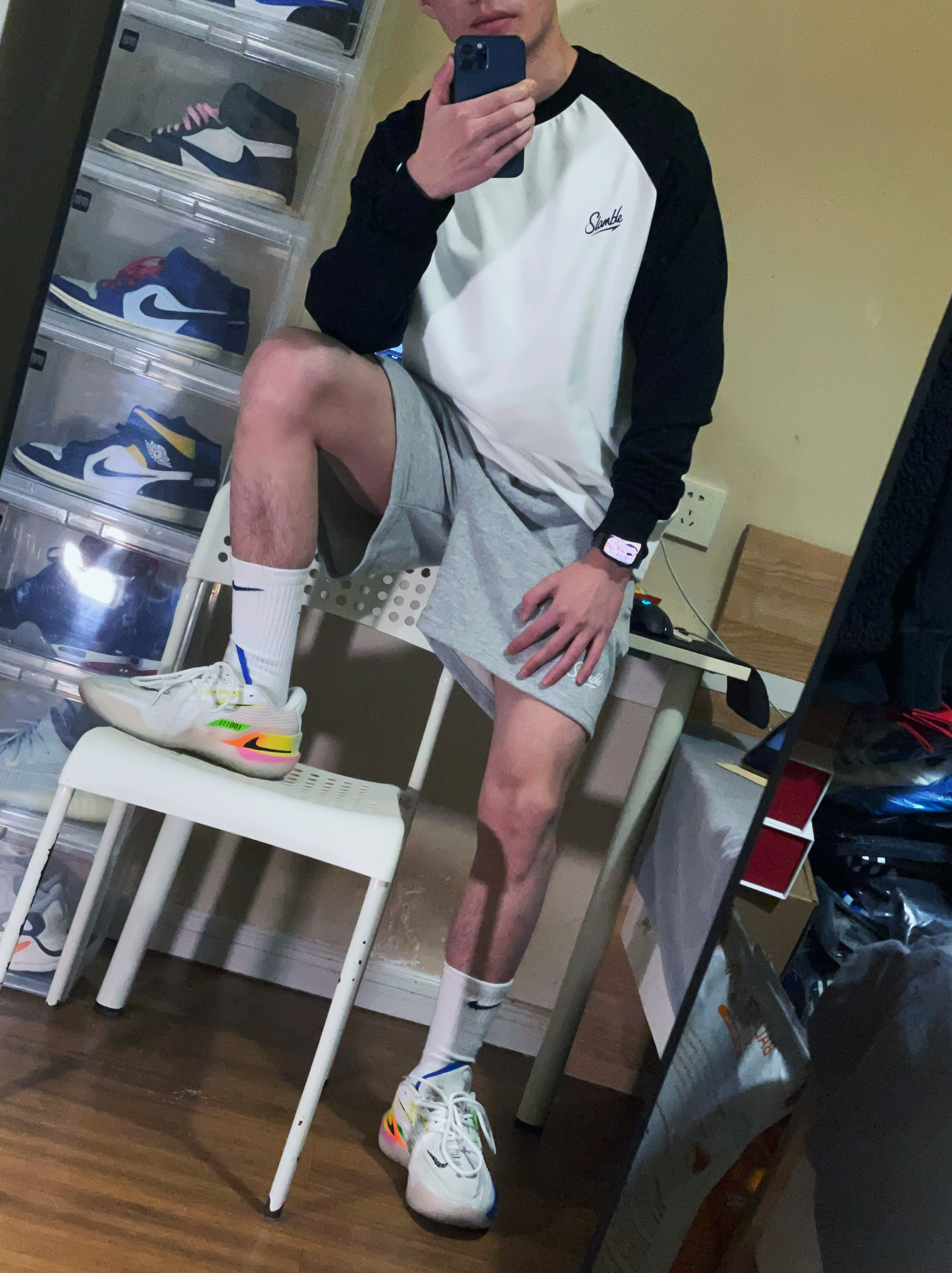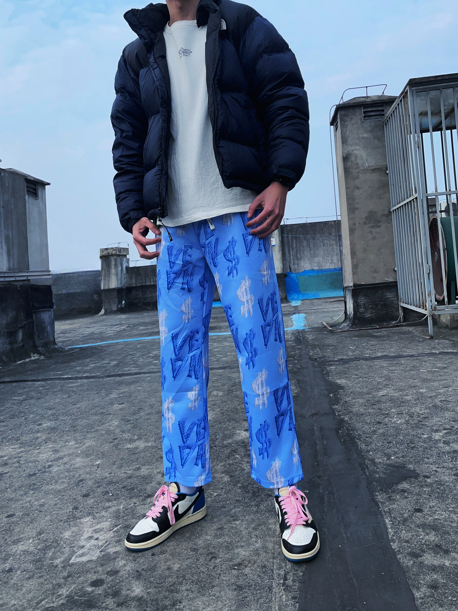 这款维动 VEIDOORN 款街霸运动长裤虽然很花,但是上身还是很不错的,很潮,看惯了一个颜色,偶尔试试这样很不错的 而且它的版型是直筒设计,能够很好地修饰腿型特别修饰腿长 穿着感也很好,柔软亲肤,上身穿着非常舒服