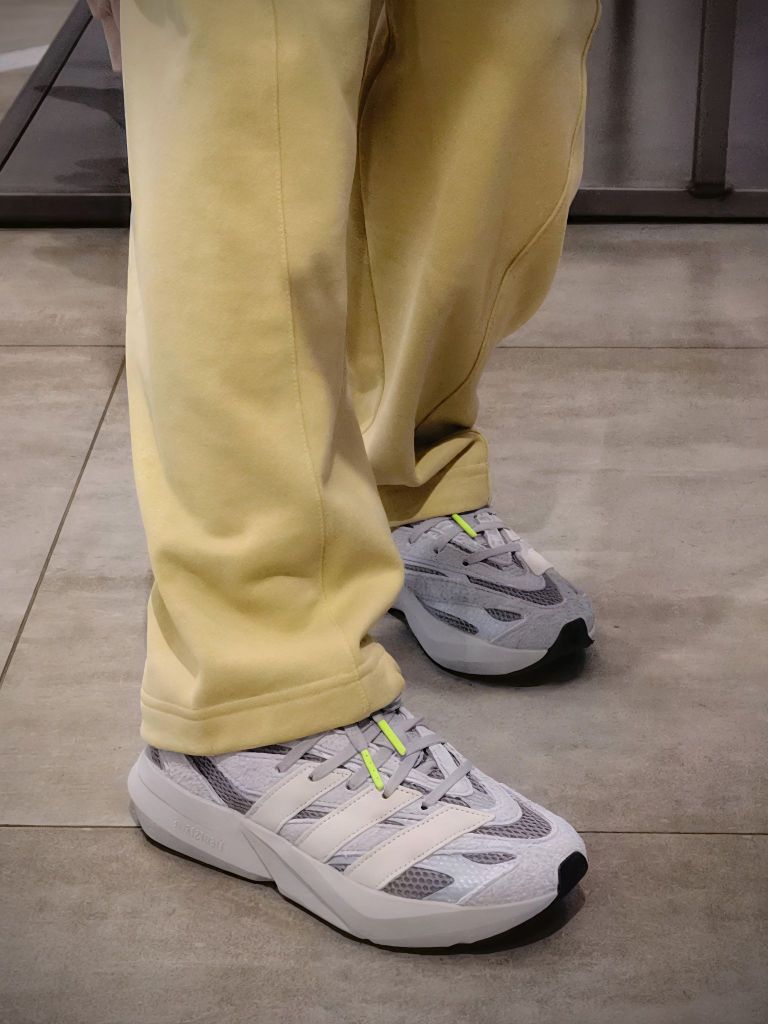 👟LIGHTBLAZE 圆润的鞋头穿着舒适 👍🏻鞋面的拼接巨有很大的视觉冲击使鞋子外观变得修脚型 中底延续了AD的LIGHTSTRIKE技术,回弹舒适! 银灰色配色搭载凶猛的大三条杠非常突出 鞋带还带荧光绿小细节very nice!