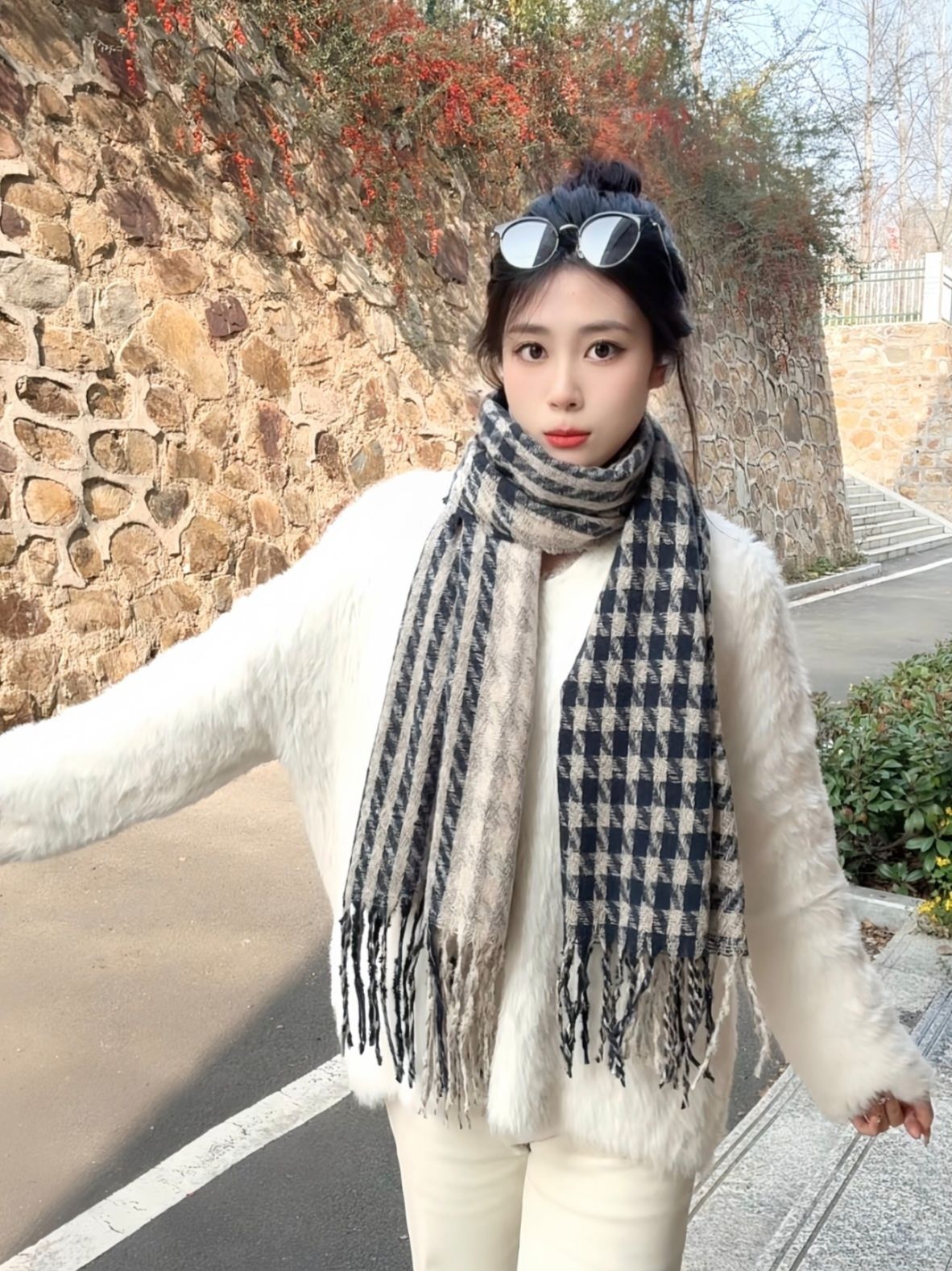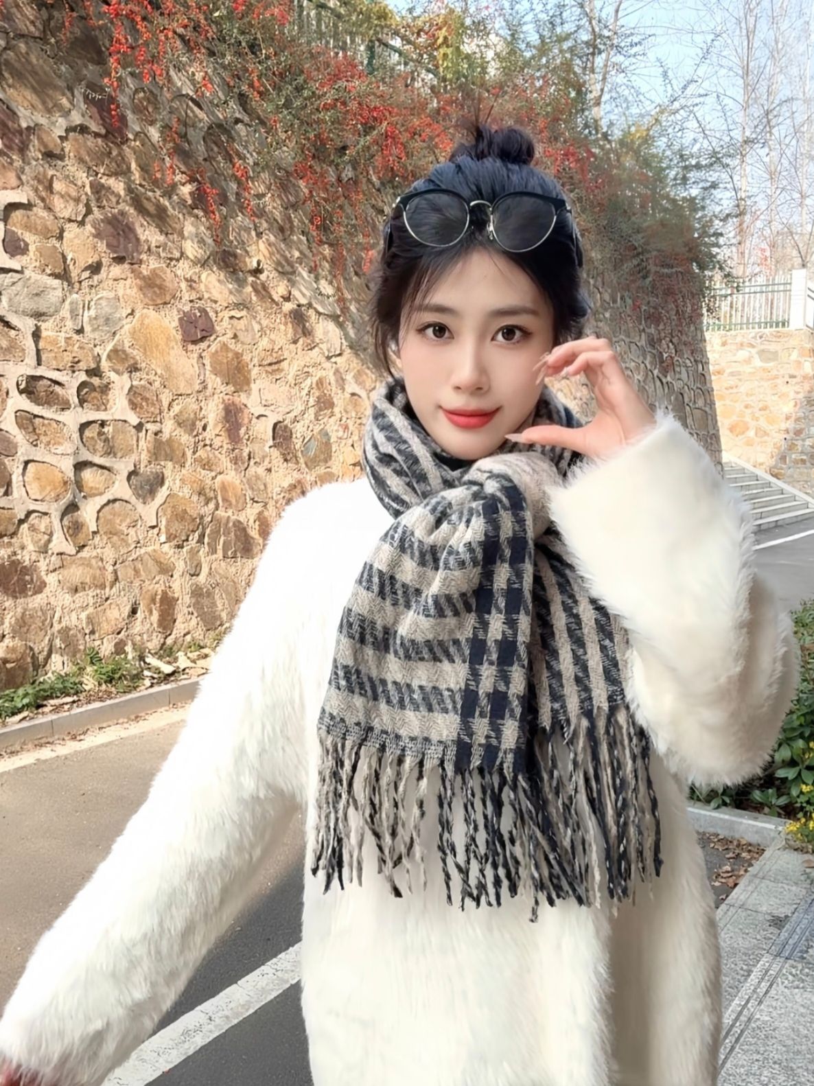 冬天啦真的很需要围巾 秋冬必备毛茸茸围巾真的好好看 摸起来很舒服质感很好 冬天真的很喜欢戴围巾会给穿搭加很多分很保暖也不会起静电 而且早八女大不想化妆戴围巾真的很有安全感