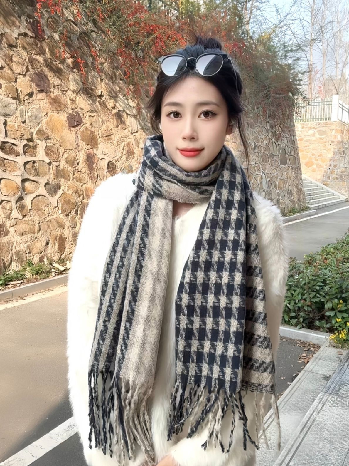 本篇笔记关联了CMFY 保暖加厚千鸟格绒线围巾 MZ199 蓝米色等商品,为用户提供真实的使用体验和购买参考。