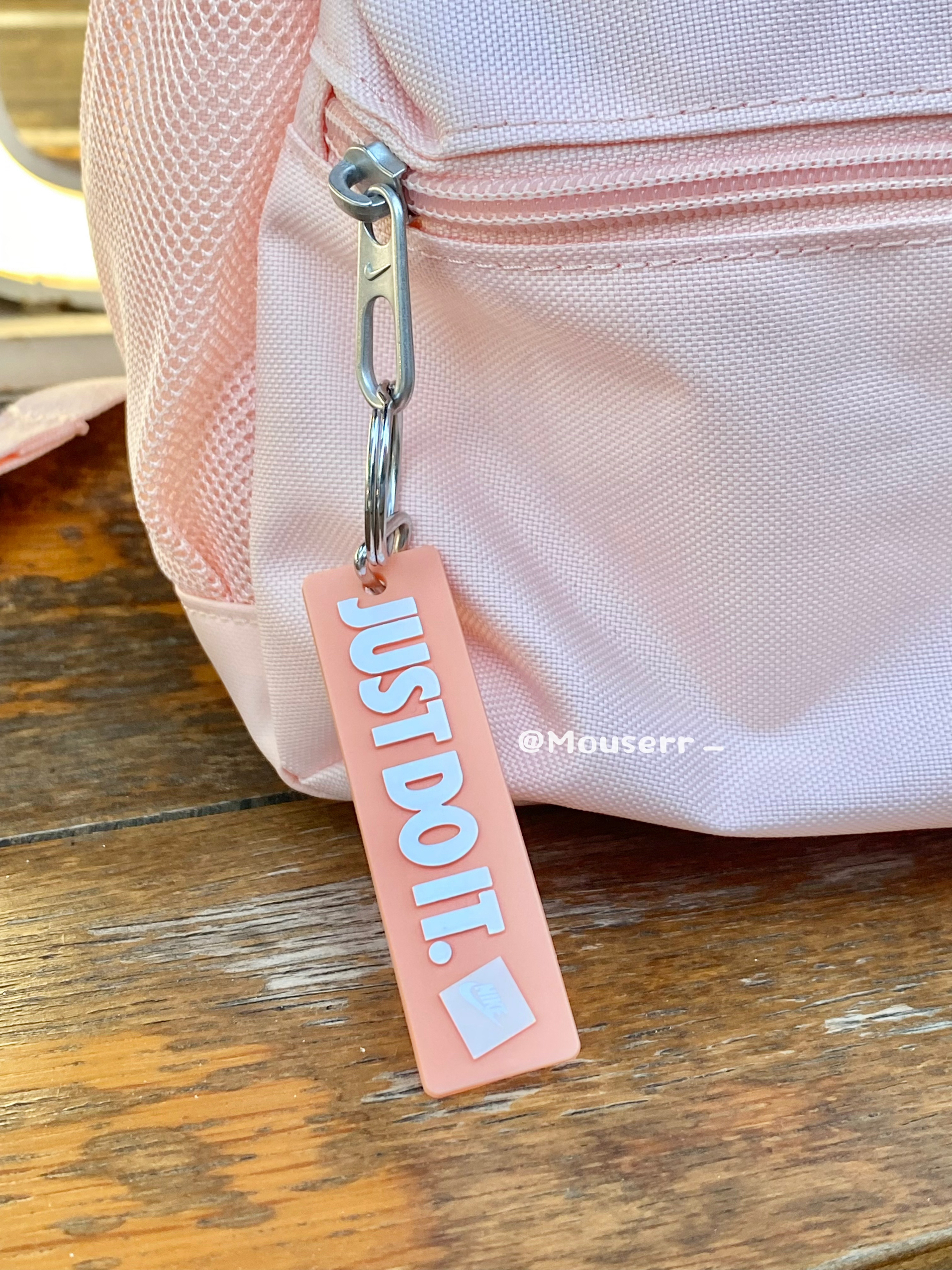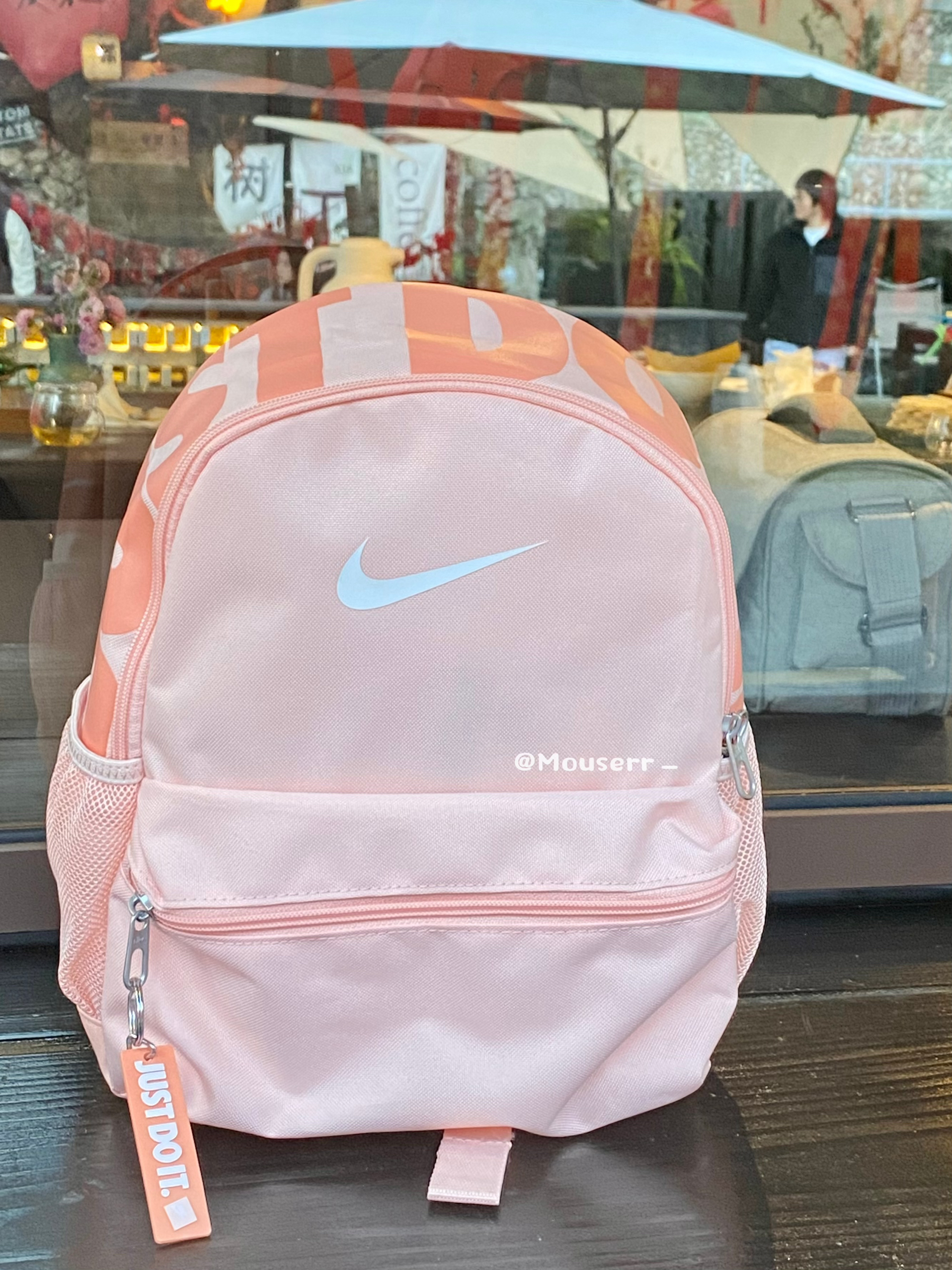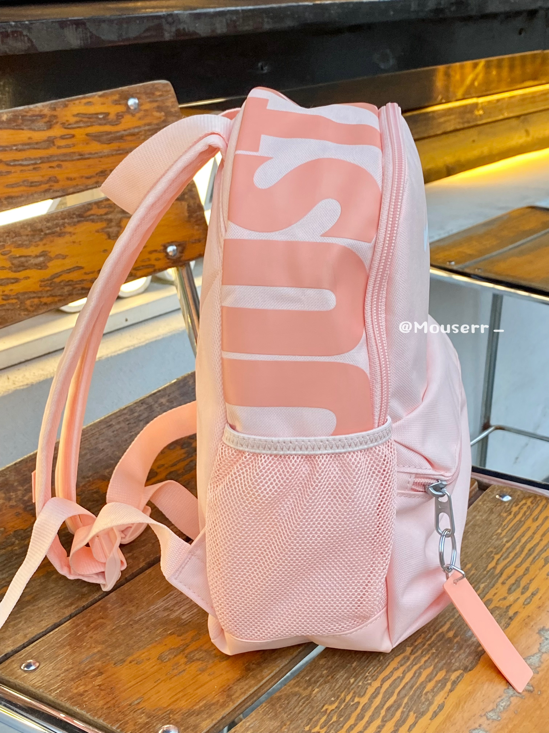 🤩这款包是新款哦~双肩包是淡淡的珊瑚粉色,我觉得最好看的是包包的顶部🔝做了nike的经典标语,设计十分清新。包的侧面还有一个小口袋,方便放置一些小物件。 🌟这款双肩包的材质看起来很轻便,背起来小巧轻便,而且它的容量也很可观,书本、文具、化妆品之类的都可以轻松装下。 ✨背着它出门,你就是行走的甜美少女。宝子们有没有心动呢💕