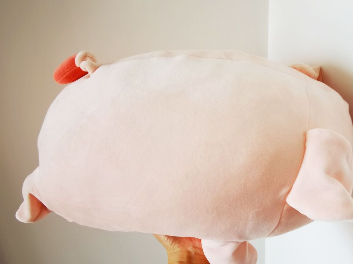 软乎乎的趴趴粉小猪,可爱的爱心❤️尾巴好有趣,面料绒绒的摸起来很舒服,午休垫背、抱着休息非常合适😀