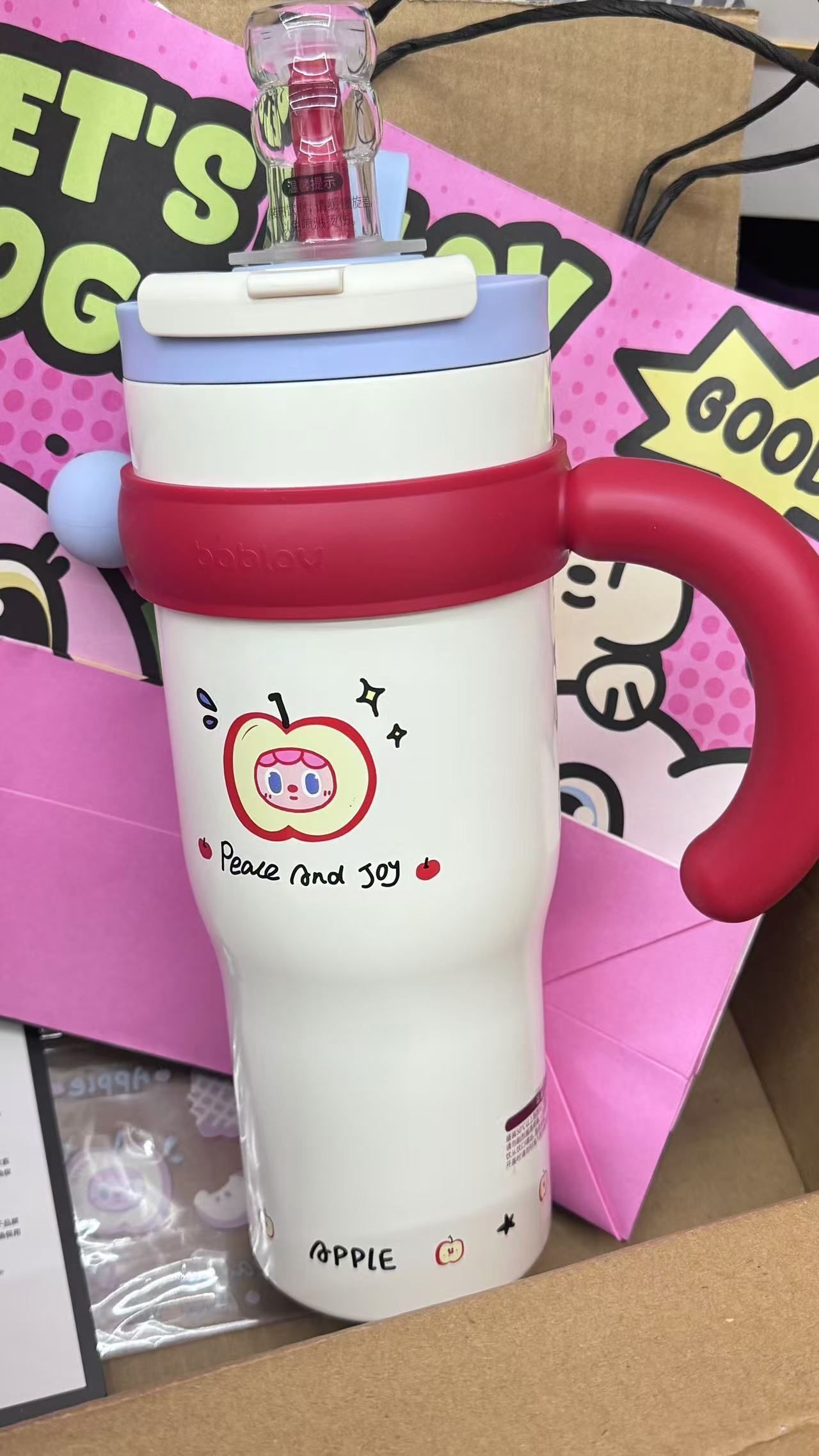 这个杯子太太太太太太好看了。颜值杠杠的,还送了很多可爱的粘贴纸,显得很可爱。最主要拿着手感好,容量很大,上面的涂鸦苹果🍎看着好可爱。好适合那种可可爱爱的女孩子,送礼物也是最佳的礼物🎁,如果你不知道送什么就送这个吧,没有那一个女孩子能拒绝这莫好看的杯子。