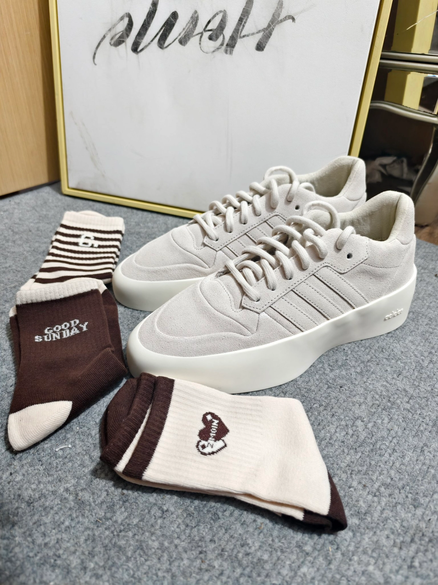 哈喽~这里是爱旅游。 都说灰色百搭,着实名不虚传。最近入手的FOG真就挺好穿。 👀最近很🔥的美拉德配色,也想尝试一下。这下美拉德中筒袜搭配浅灰色。不仅层次感有了,舒适度也有保障。 🐥这套搭配能给几分? 👟:#adidas originals 🧦:#KJ #美拉德穿搭有多绝 #阿迪达斯fog联名 #美拉德穿搭有多艳 #棕色浅灰经典搭