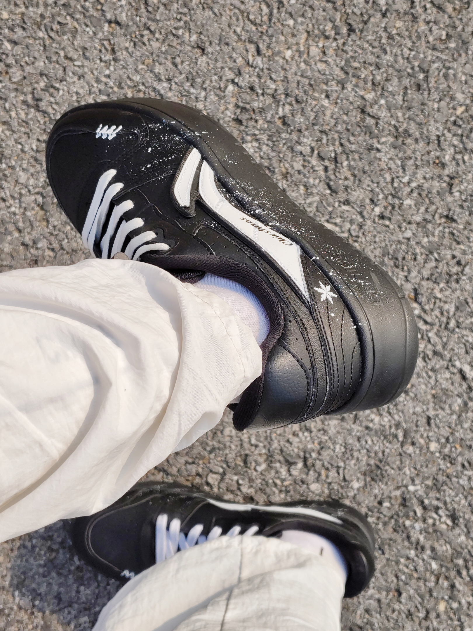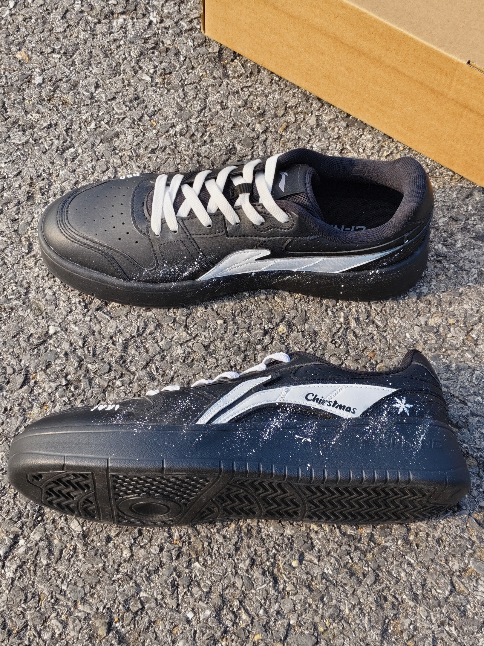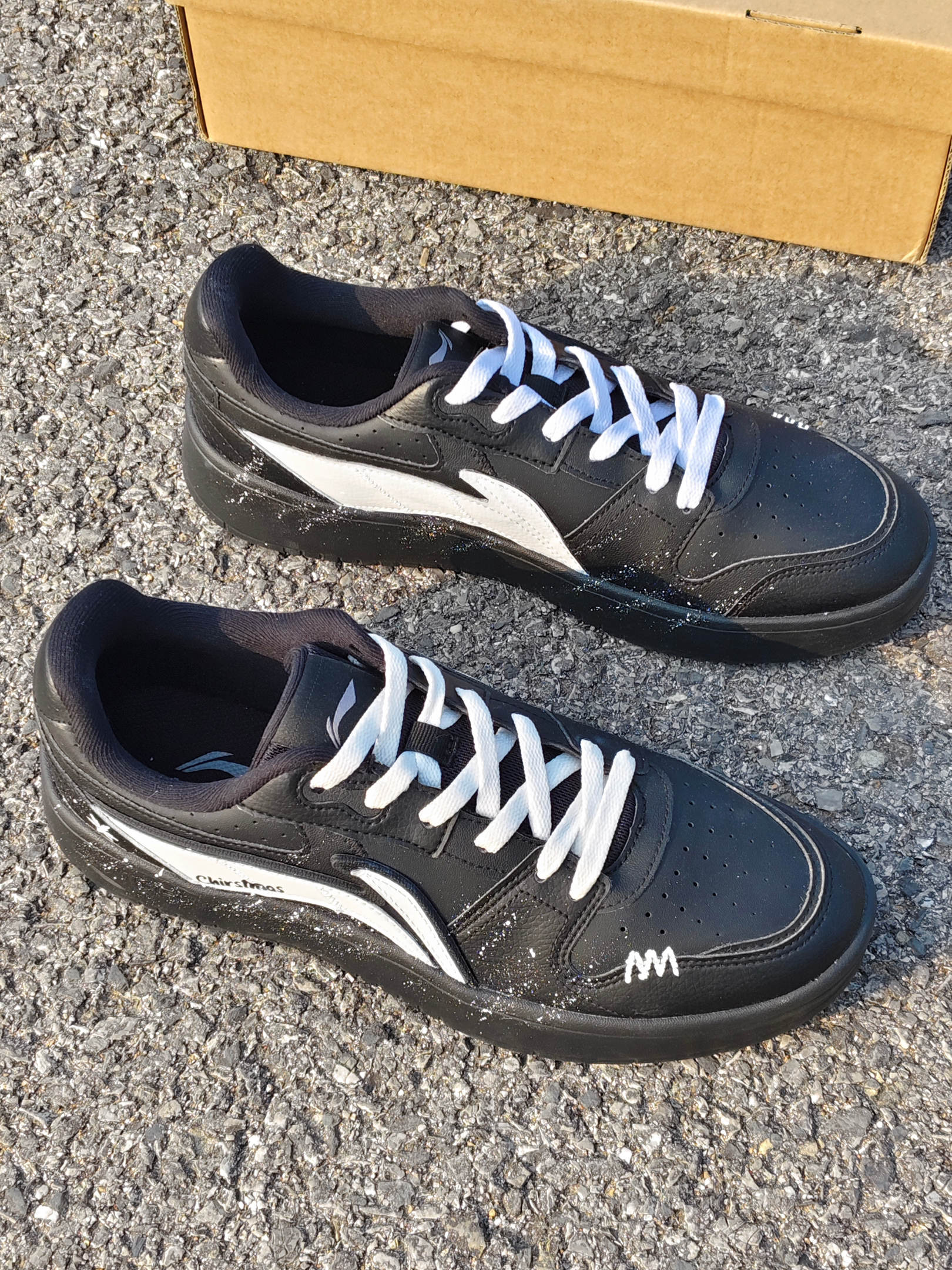 嘿!是晕晕耶! 今天分享一双李宁黑白“浮舟” 整体是黑白配色的,简约百搭 鞋身的白色小泼墨设计,星星点点的,好看耶 小雪花也泰应景了叭 平时简单搭配一条牛仔裤就挺不错的 冬天好鞋找到啦