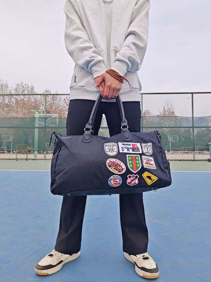 健身怎么能少了健身包 我最近入手了帆布大师MASTERCANVAS 潮流健身包,纯黑底色加上许多漂亮的徽章。真的超级炫酷! 采用织物面料轻薄耐用,特别适合健身!大容 量的设计,还可以满足其他日常的使用