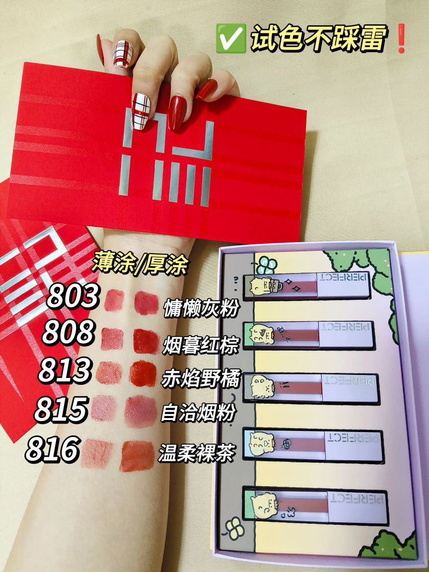 本篇笔记关联了【小熊虫联名款】perfect diary/完美日记 迷你仿生膜唇釉彩妆礼盒套装 持久防水 哑光 唇釉813赤焰野橘 1g+唇釉803慵懒灰粉 1g+唇釉808烟暮红棕 1g+唇釉816温柔裸茶 1g+唇釉815自治烟粉 1g+礼盒等商品,为用户提供真实的使用体验和购买参考。