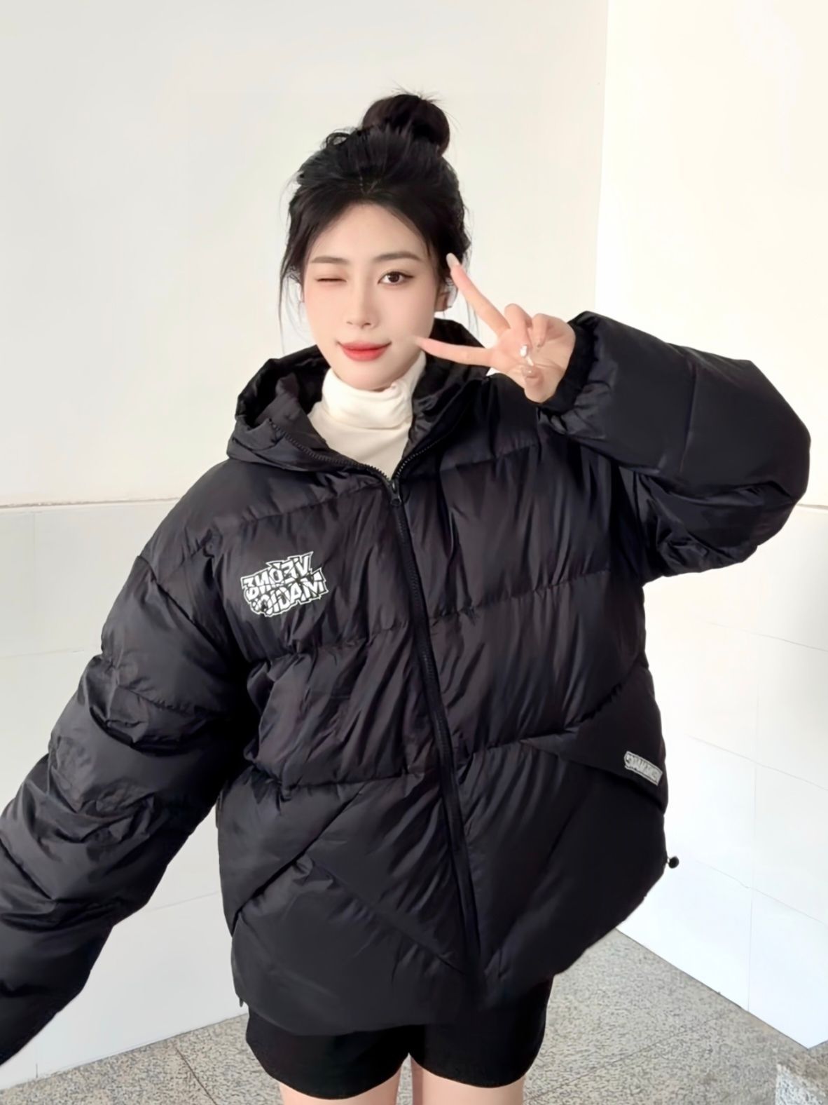 谁懂北方冬天有多冷 维动VEIDOORN飞羽系列羽绒服真的好暖和 我172/58穿L码很合适 上身很轻薄很保暖穿上很有松弛感 黑色很百搭耐脏真的很爱 印花图案提升了衣服滴设计感
