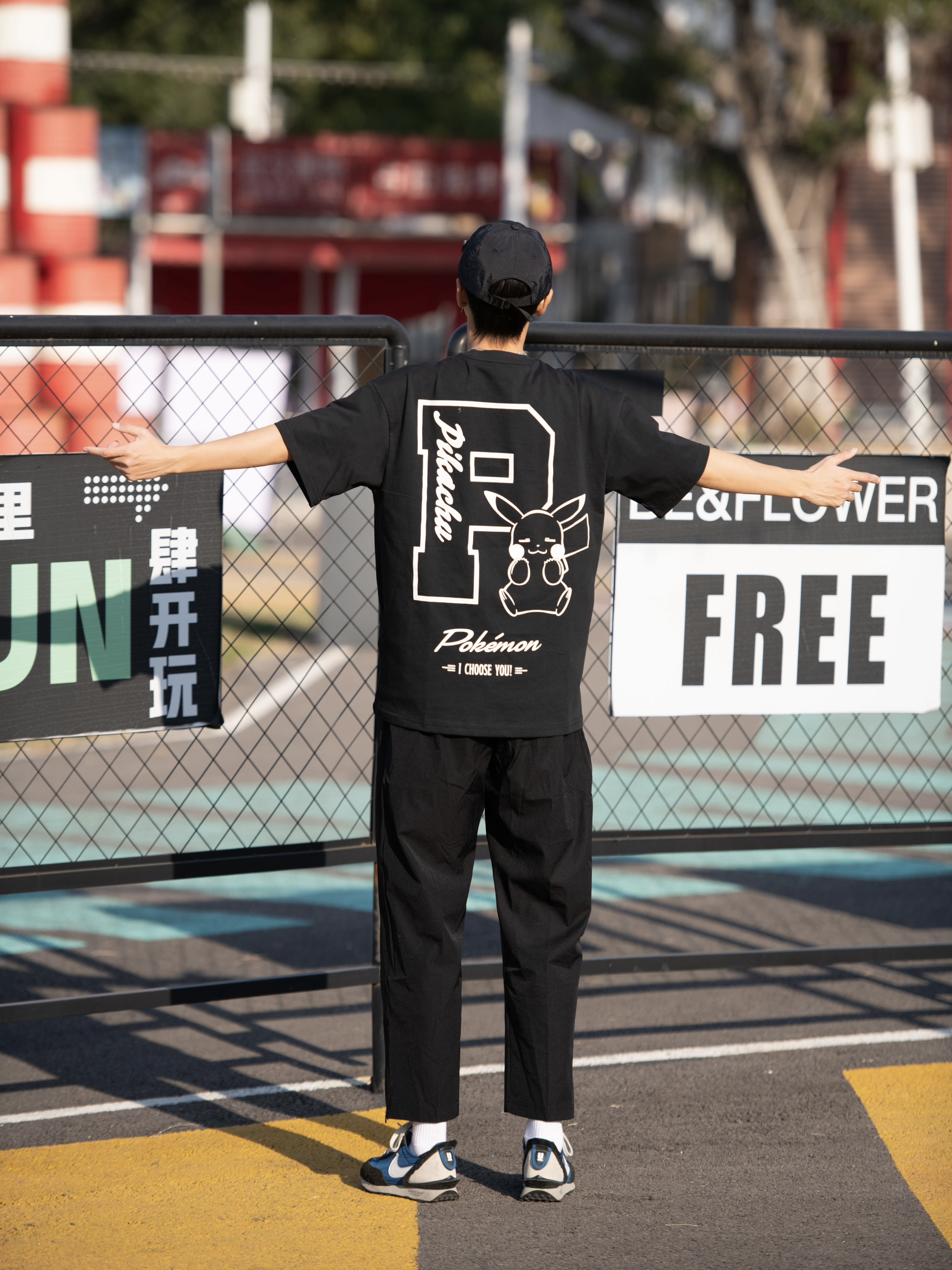 哈喽 欢迎来到哇哇哇穿搭分享频道! 172CM|55Kg|👔:M👖:m 出大太阳啦~ 谁懂福建的1月 我还能穿个短袖在街头哇 上身维动宝可梦皮卡丘联名短袖 皮卡丘~皮卡丘 梦回童年 下半身搭配一条运动裤 戴上火焰🔥黑酷鸭舌帽 Go 出门~