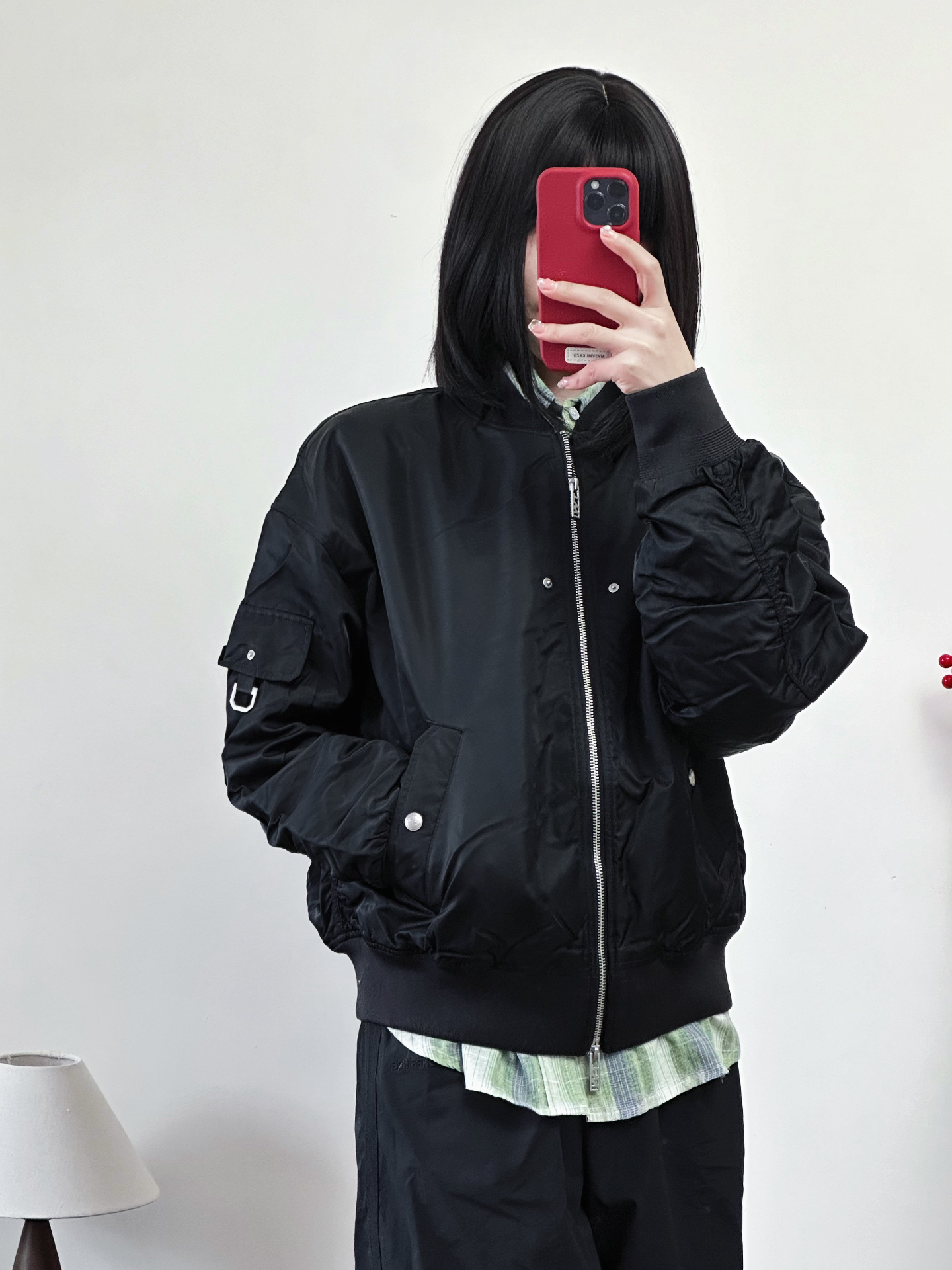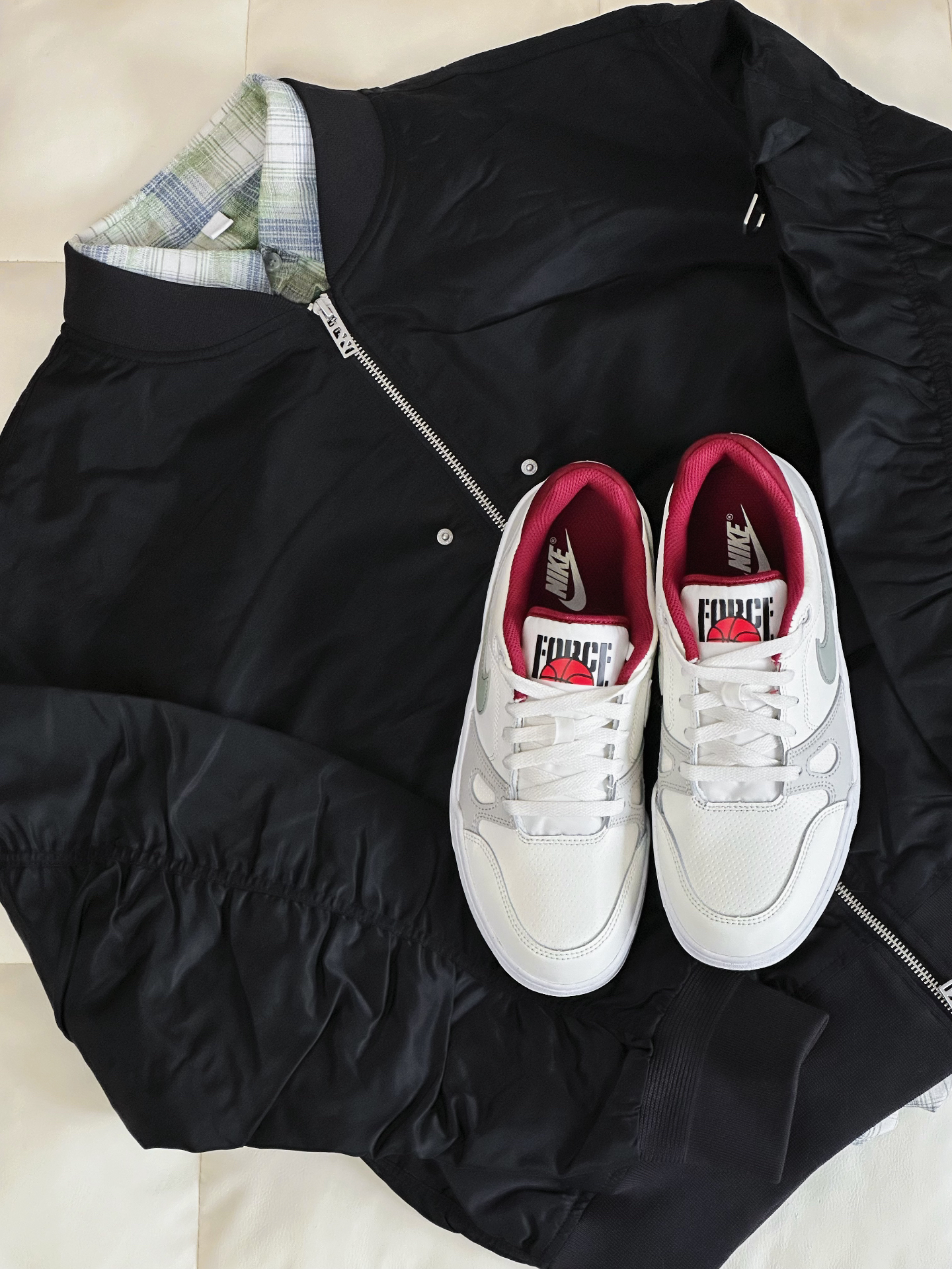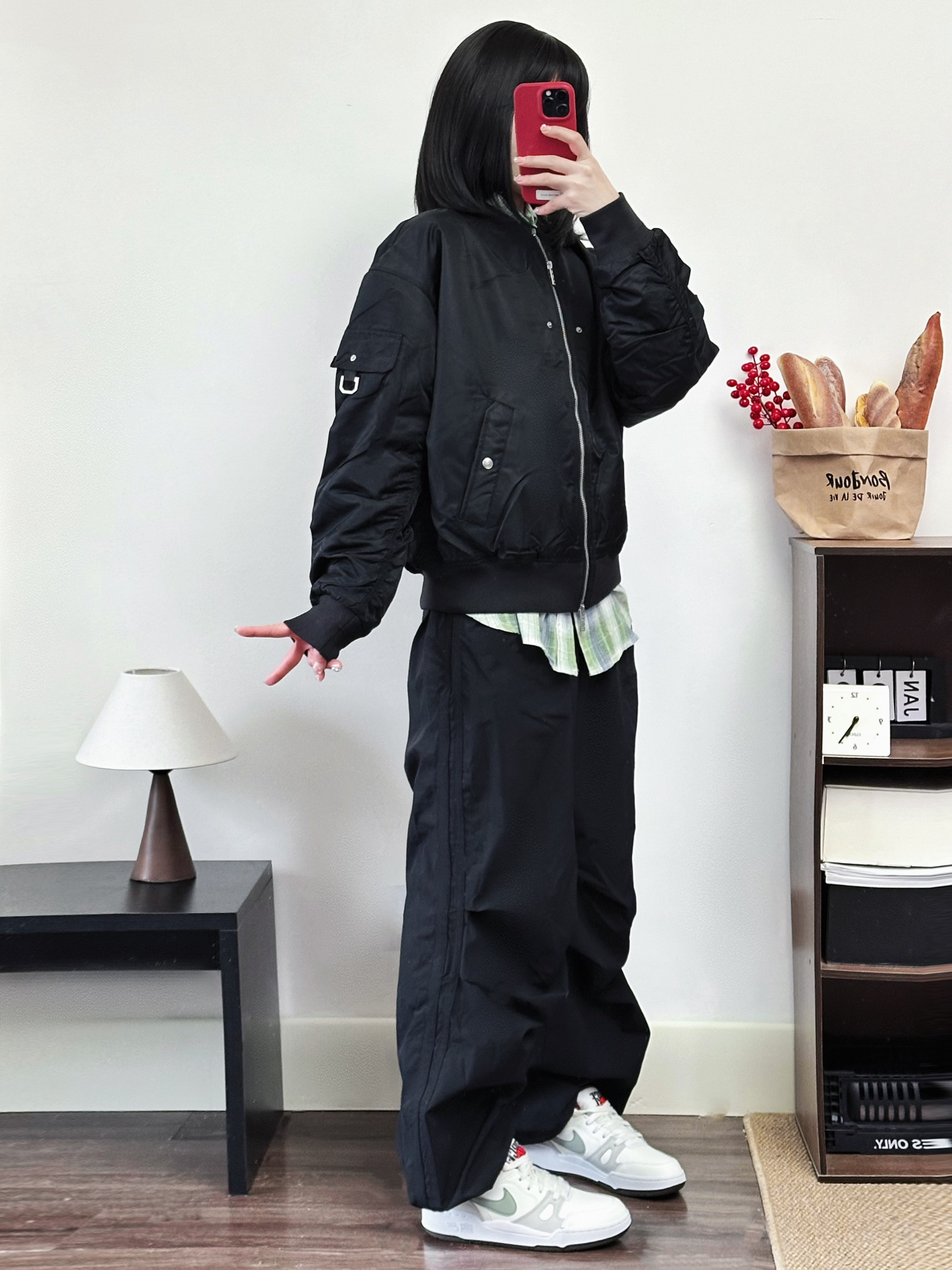新年也能穿的All Black🐈⬛ 黑色美式工装夹克➕黑色伞裤➕Nike Full Force蛇年限定! 外套很防风内里叠穿一件绿色衬衫刚刚好 我觉得挺适合新年早春穿搭哟~ #晒出我的新年穿搭 #新年新套新行头 #新年穿搭分享 #美式夹克外套棉服 #美式飞行夹克 #2025第一份哇塞礼物 #新年穿搭ootd
