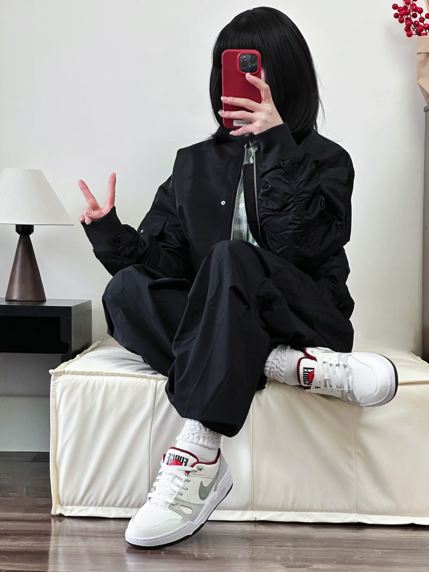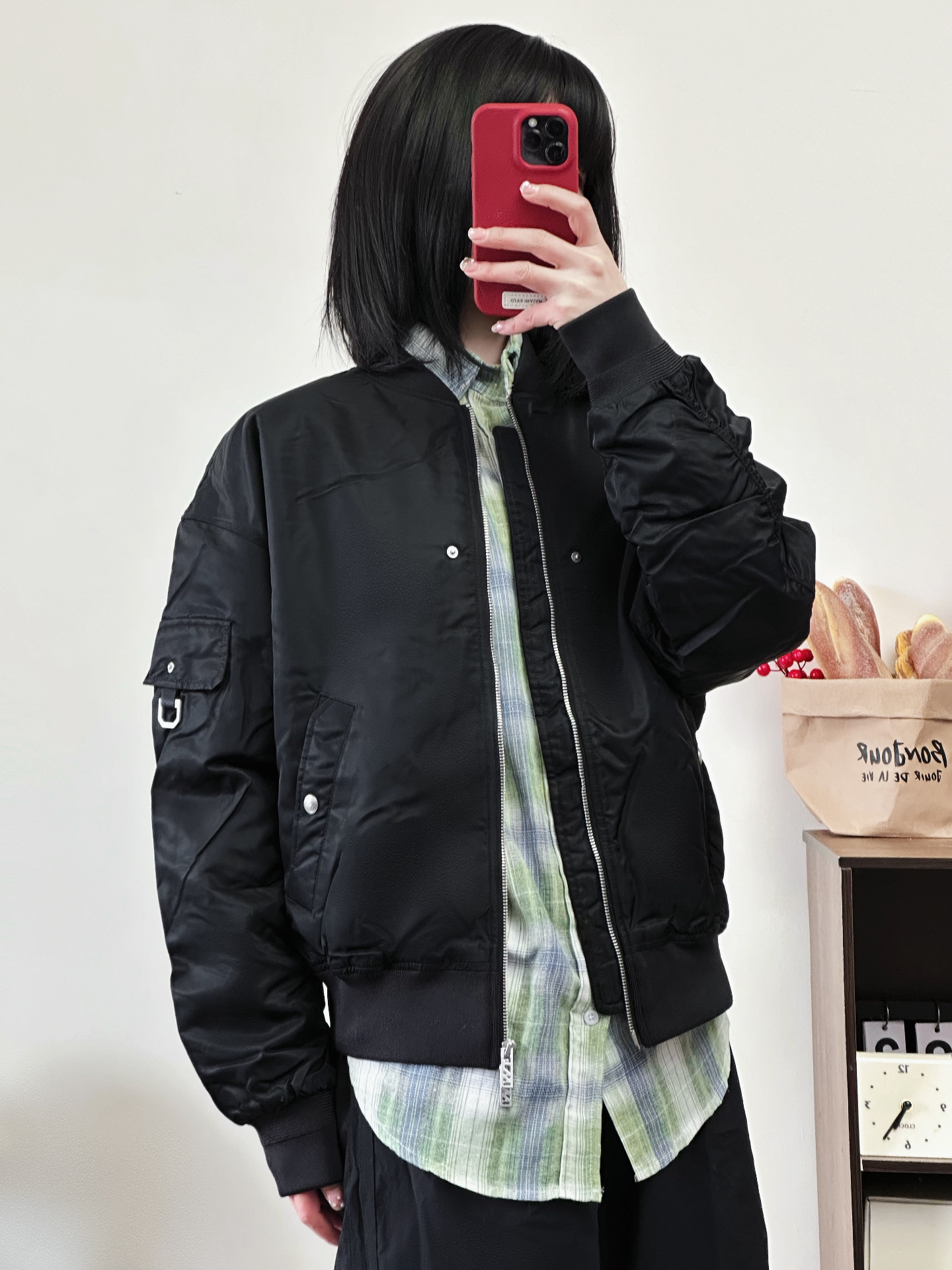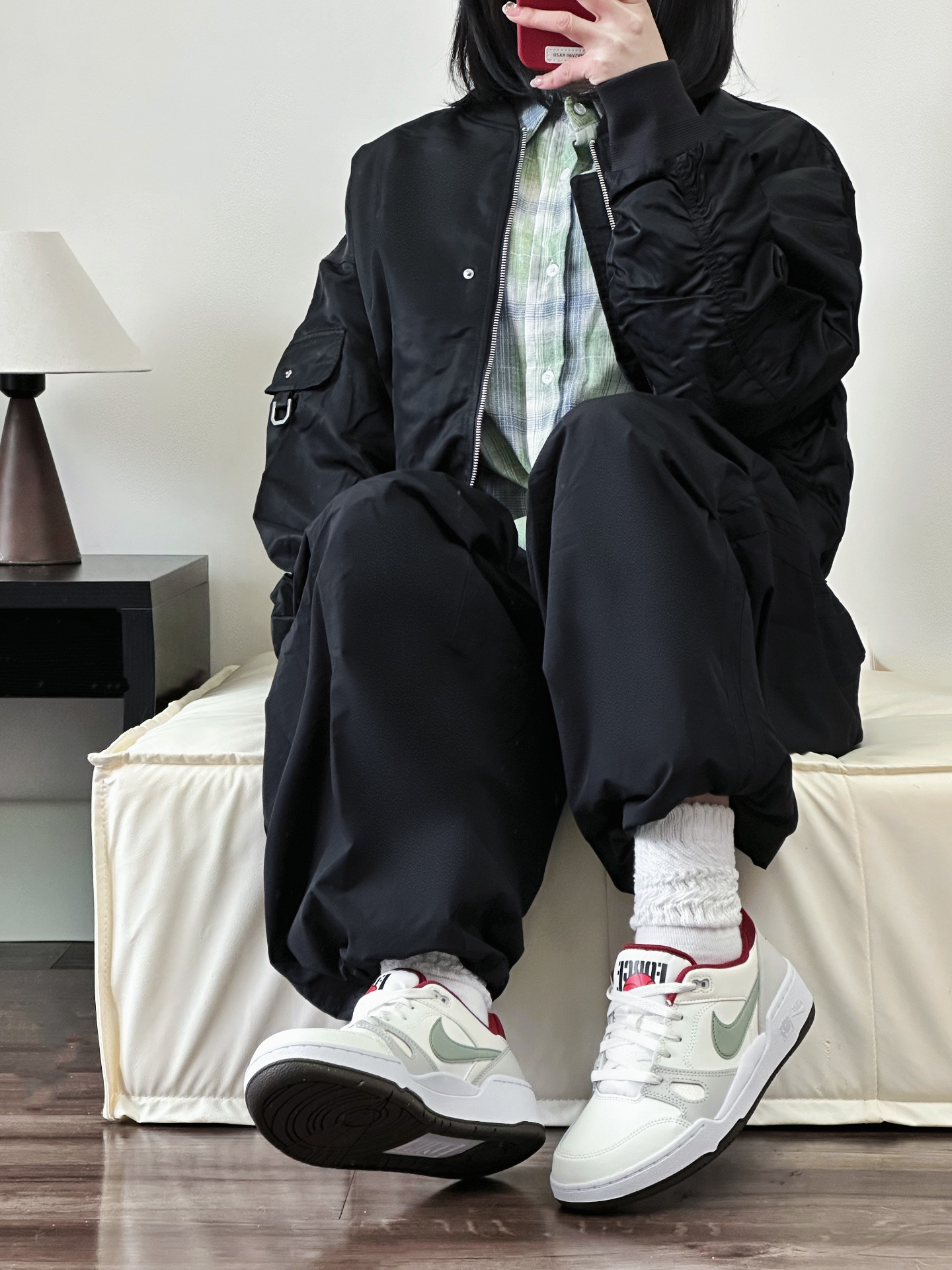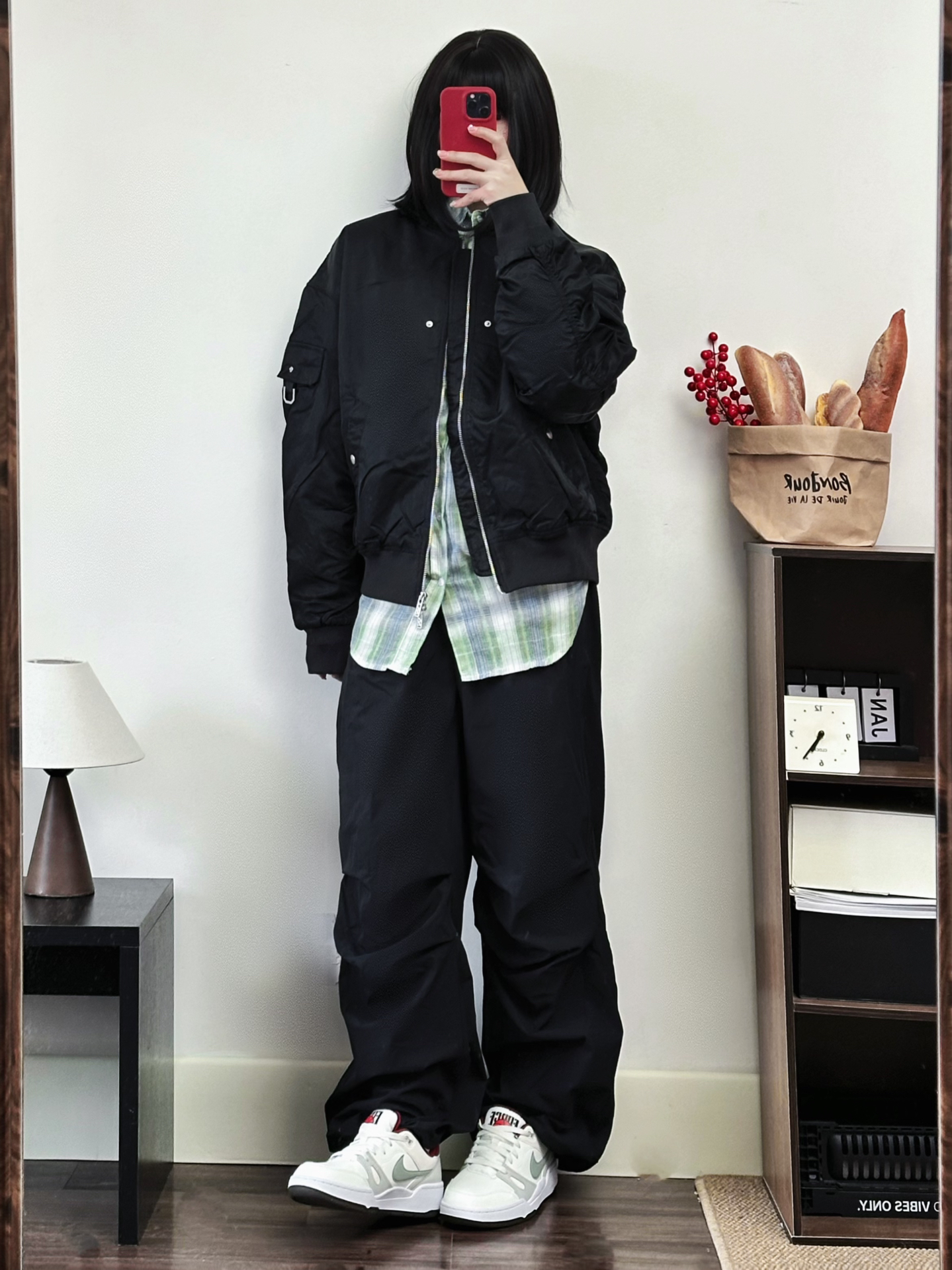 新年也能穿的All Black🐈⬛ 黑色美式工装夹克➕黑色伞裤➕Nike Full Force蛇年限定! 外套很防风内里叠穿一件绿色衬衫刚刚好 我觉得挺适合新年早春穿搭哟~ #晒出我的新年穿搭 #新年新套新行头 #新年穿搭分享 #美式夹克外套棉服 #美式飞行夹克 #2025第一份哇塞礼物 #新年穿搭ootd