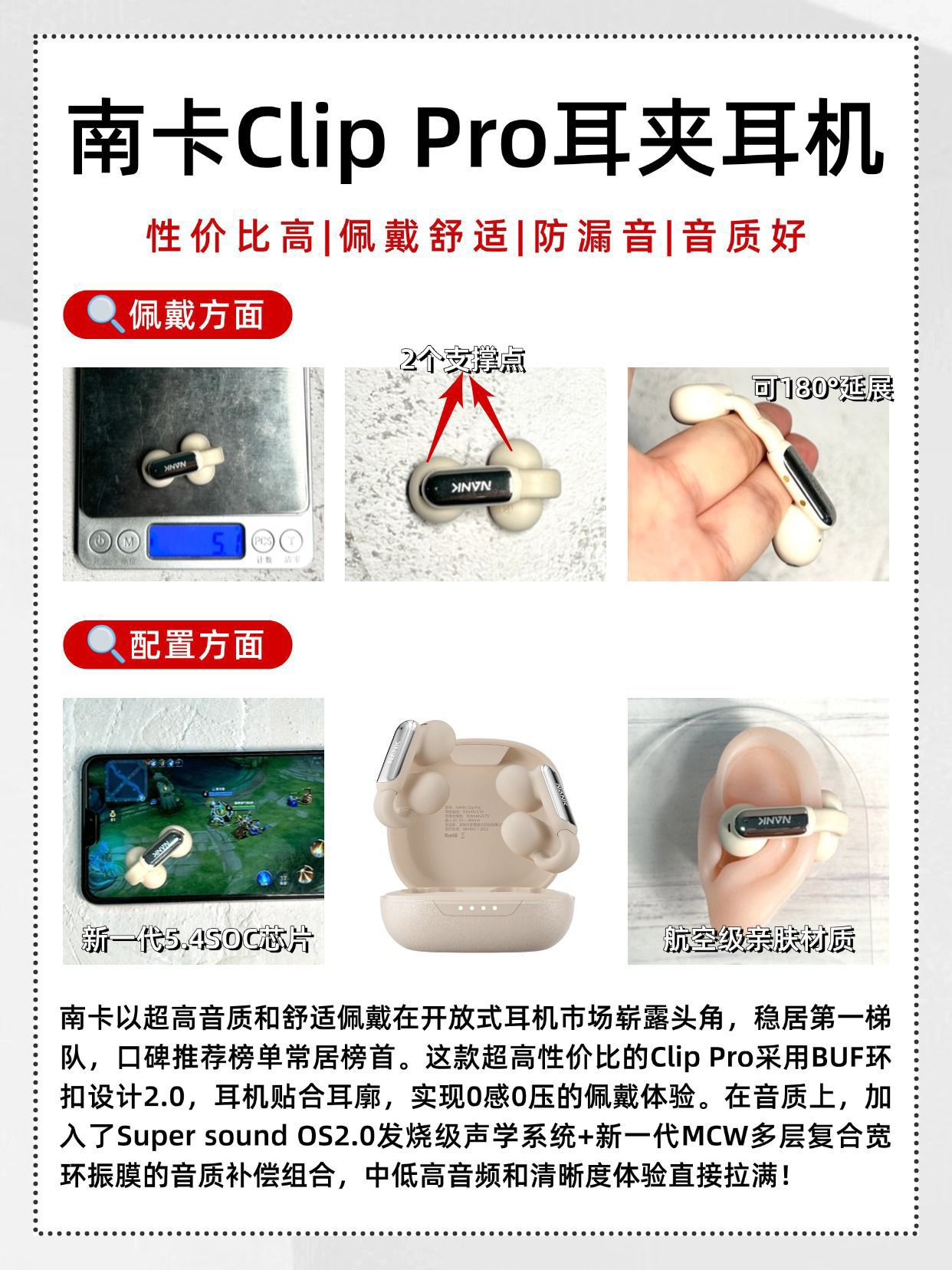 本篇笔记关联了NANK/南卡 Clip Pro 耳夹式 蓝牙 耳机 不入耳 开放式 防水 降噪 通话 真无线 超长续航 卡其色等商品,为用户提供真实的使用体验和购买参考。