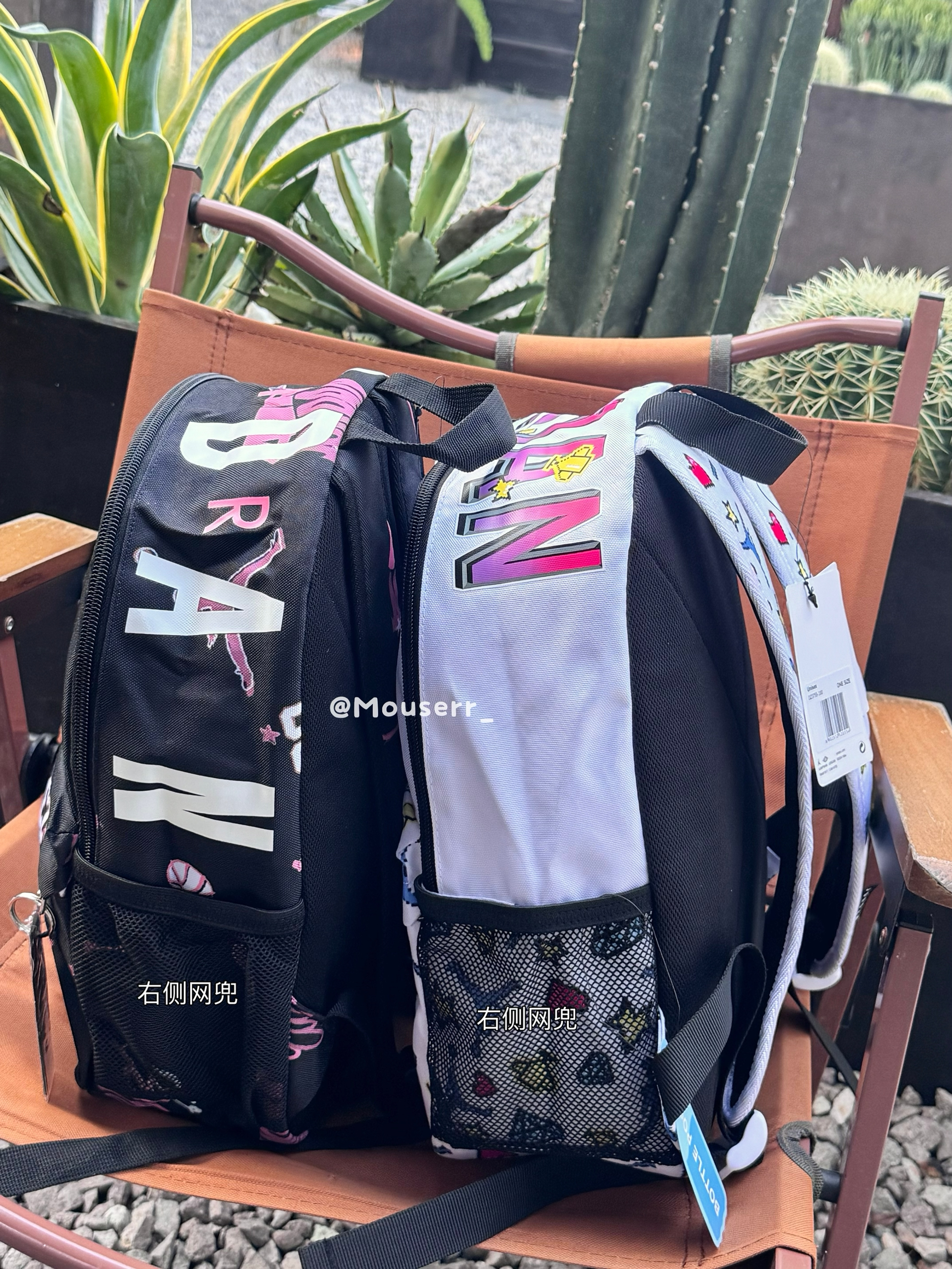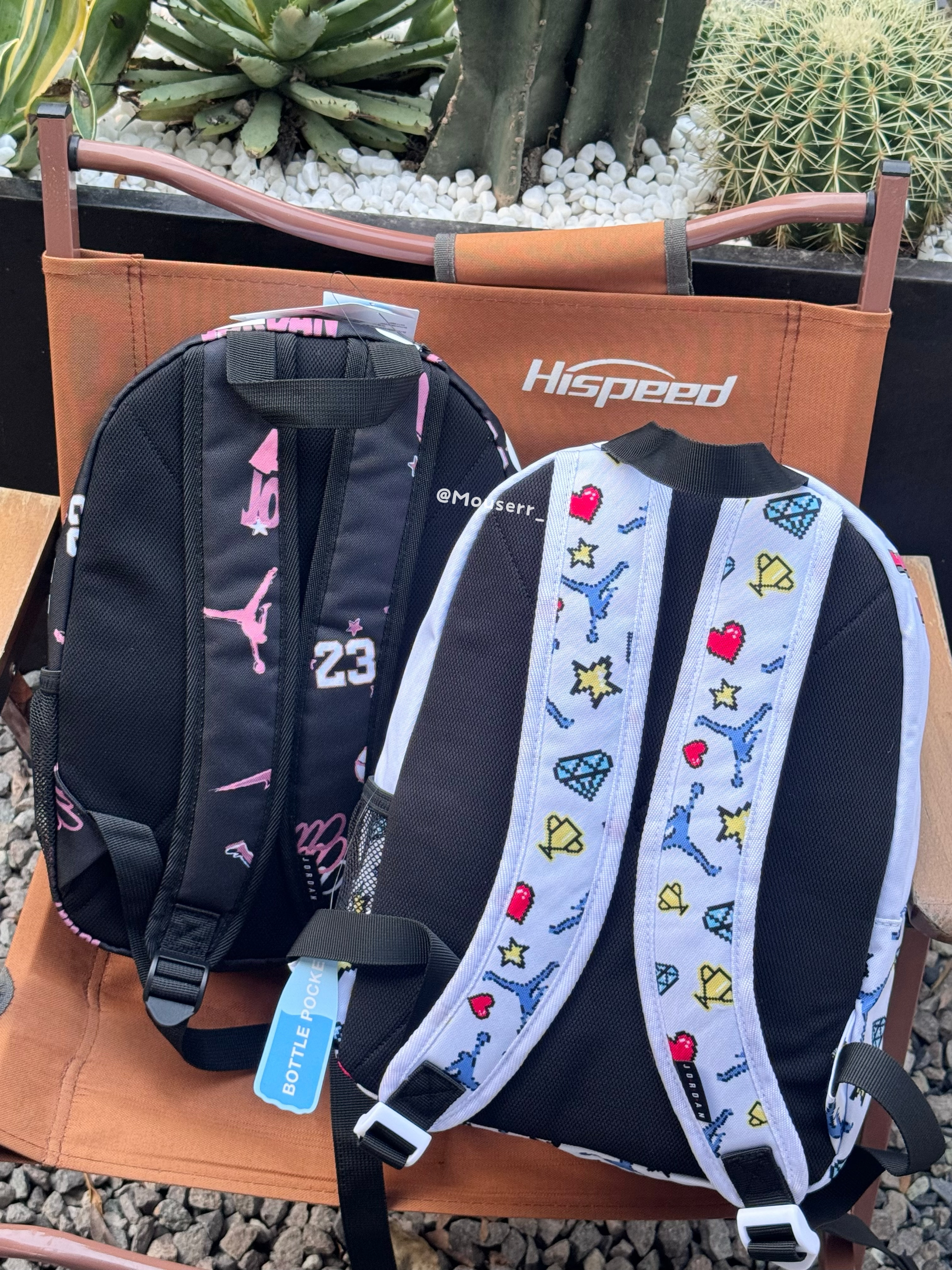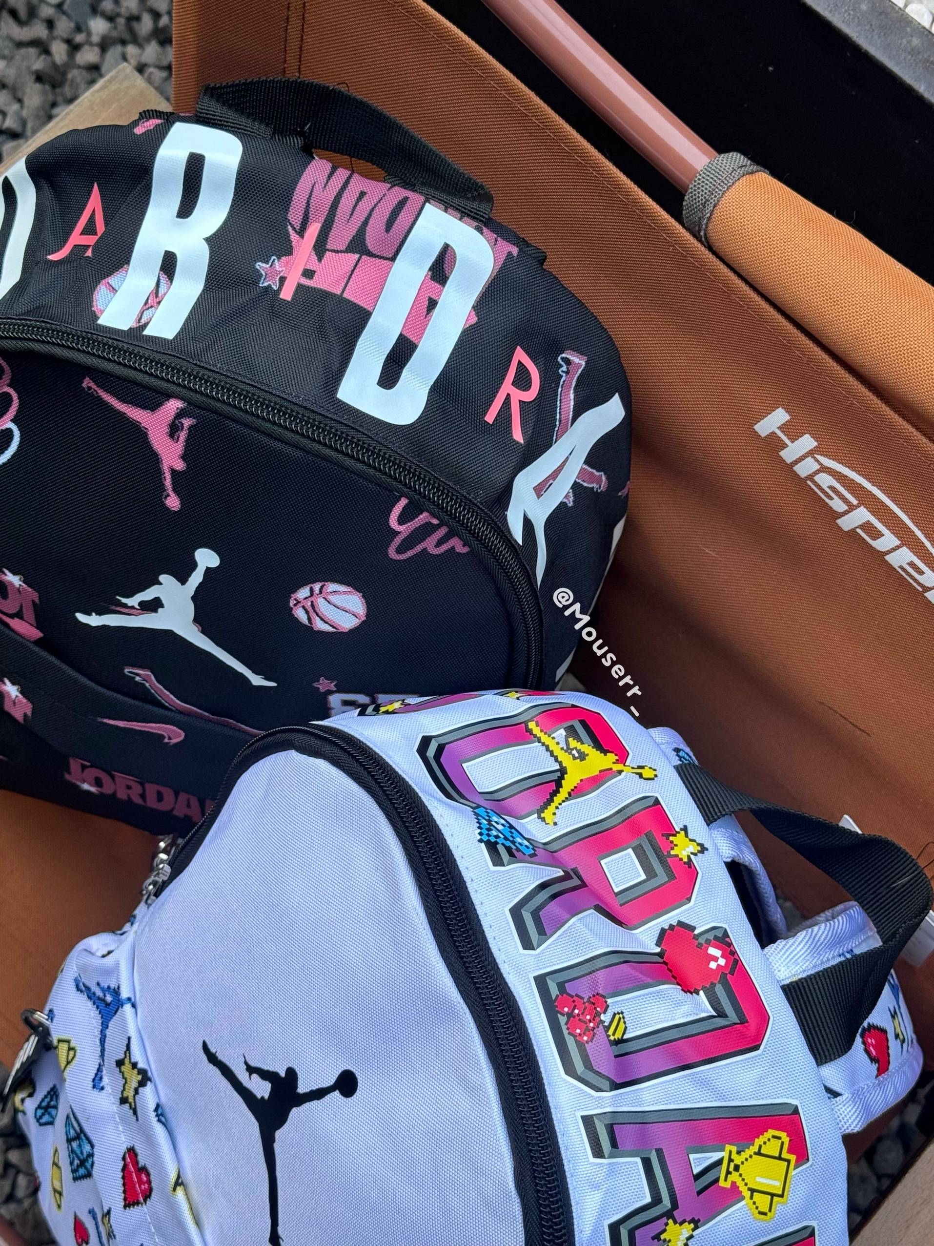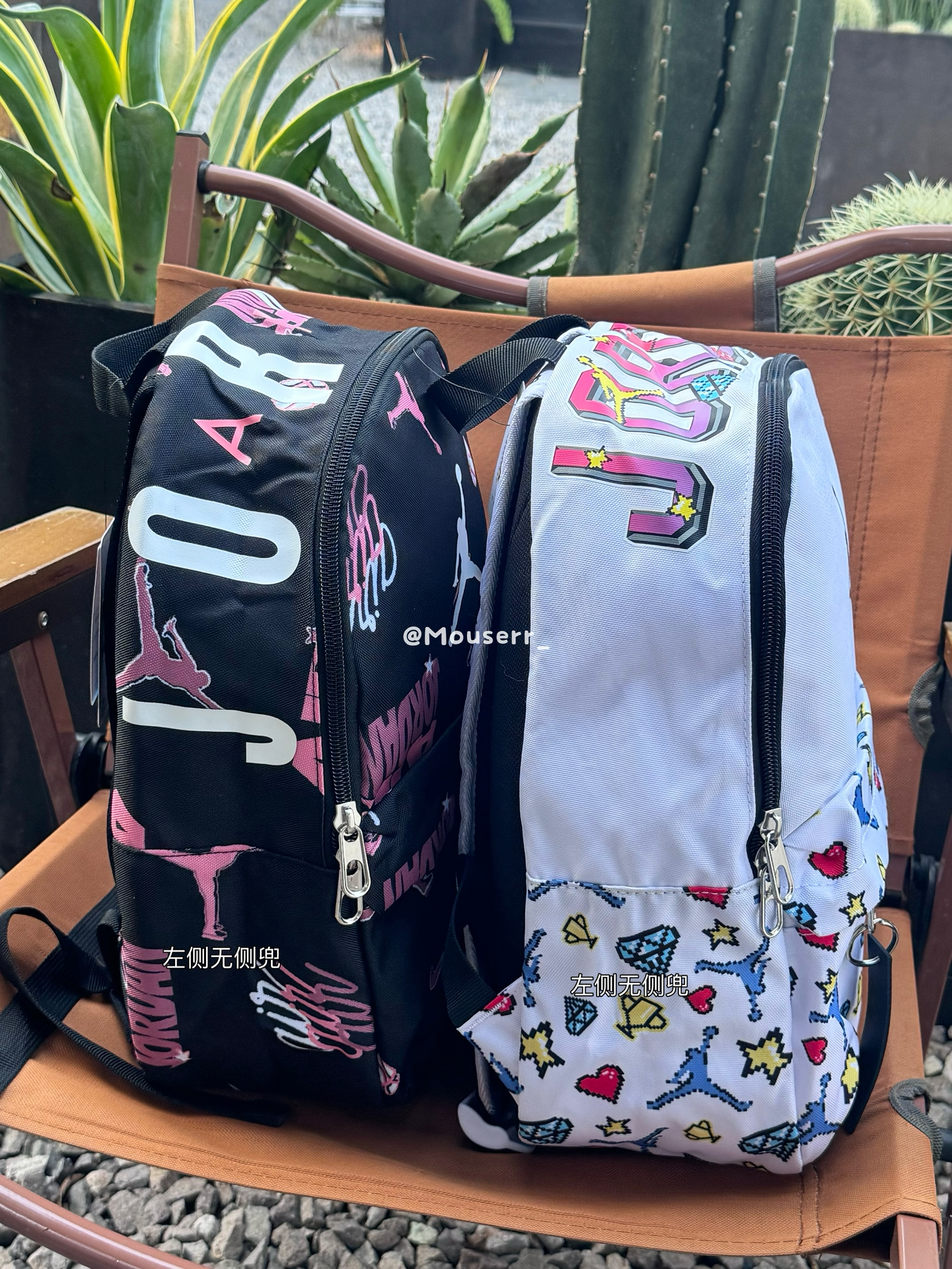宝子们,今天来给你们分享两款超有个性的乔丹双肩包啦🧐 👉图中有两款乔丹双肩包,一款是黑色底色带有粉色和白色图案,另一款是白色底色带有彩色图案,两款包上都有乔丹标志性的飞人logo,时尚感满满。 🌟这两款双肩包的设计很实用,他们虽然小,但都很能装哦!