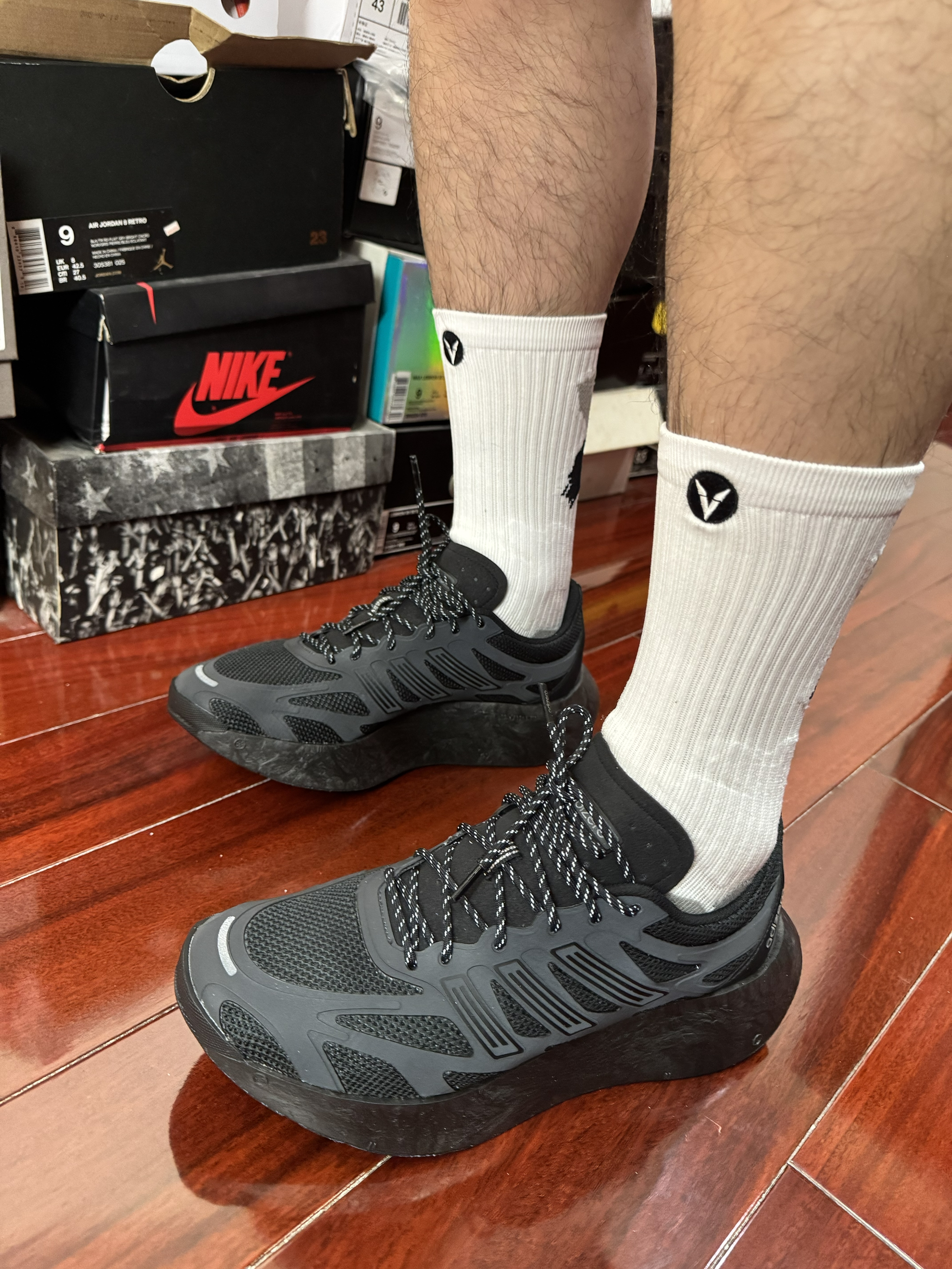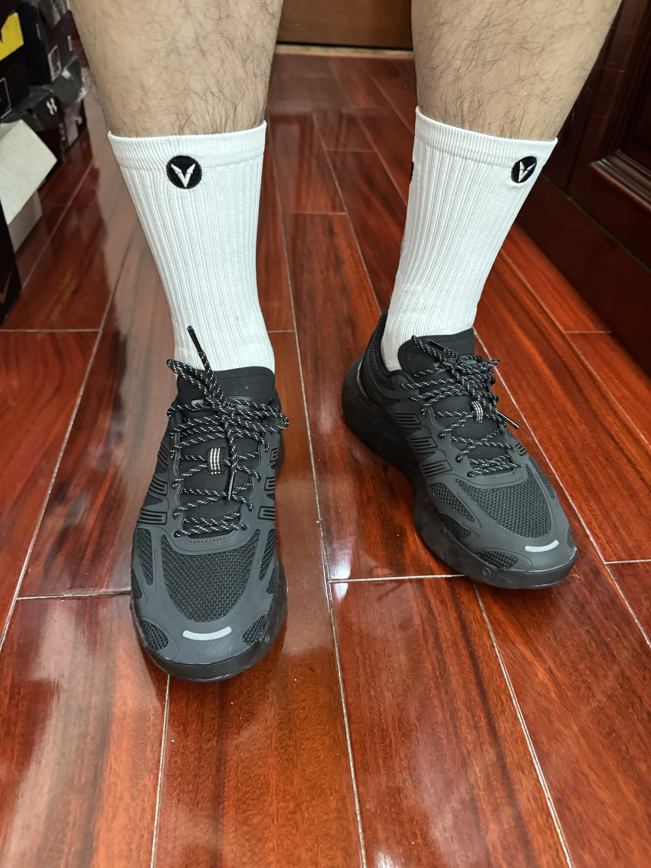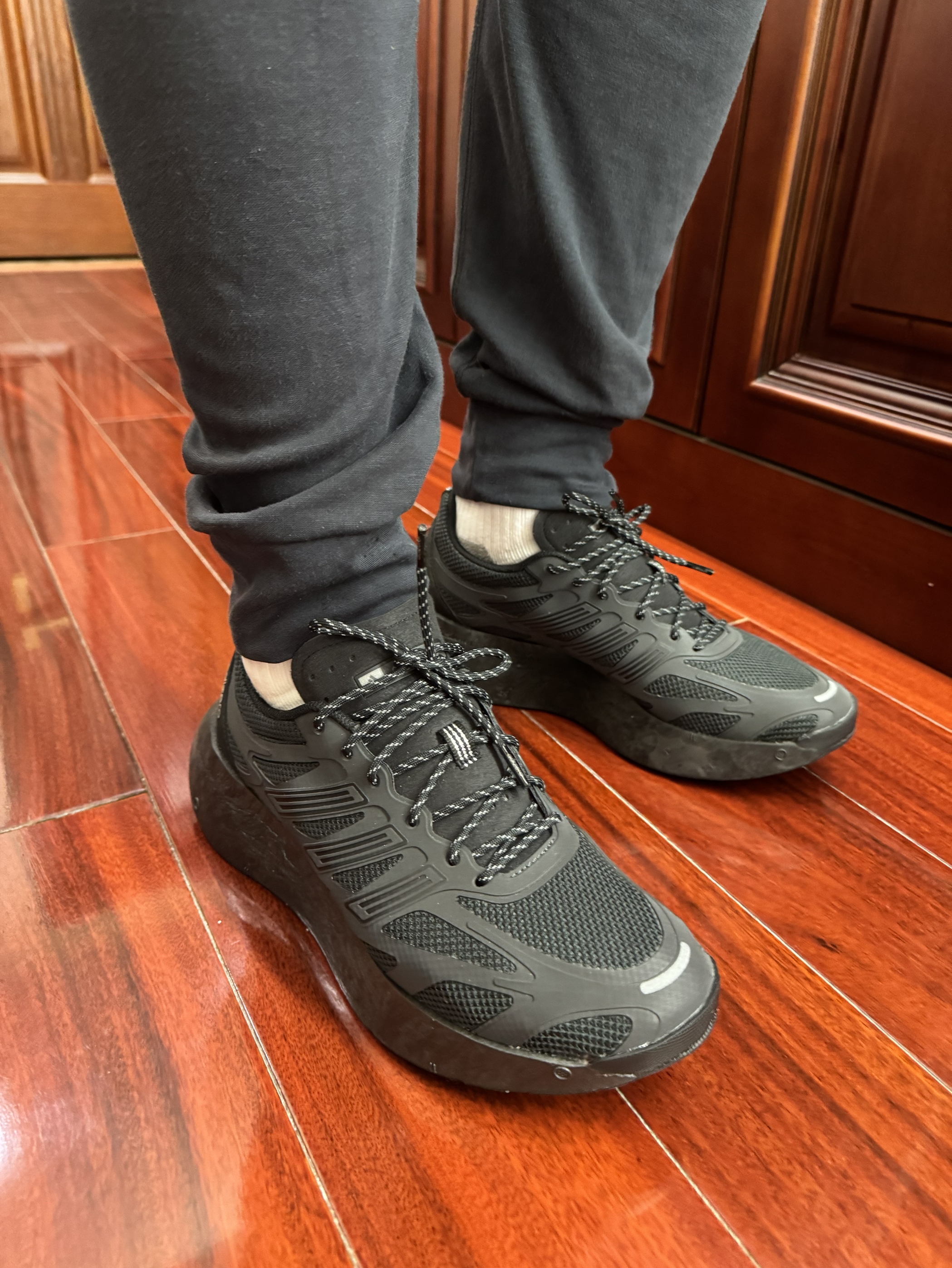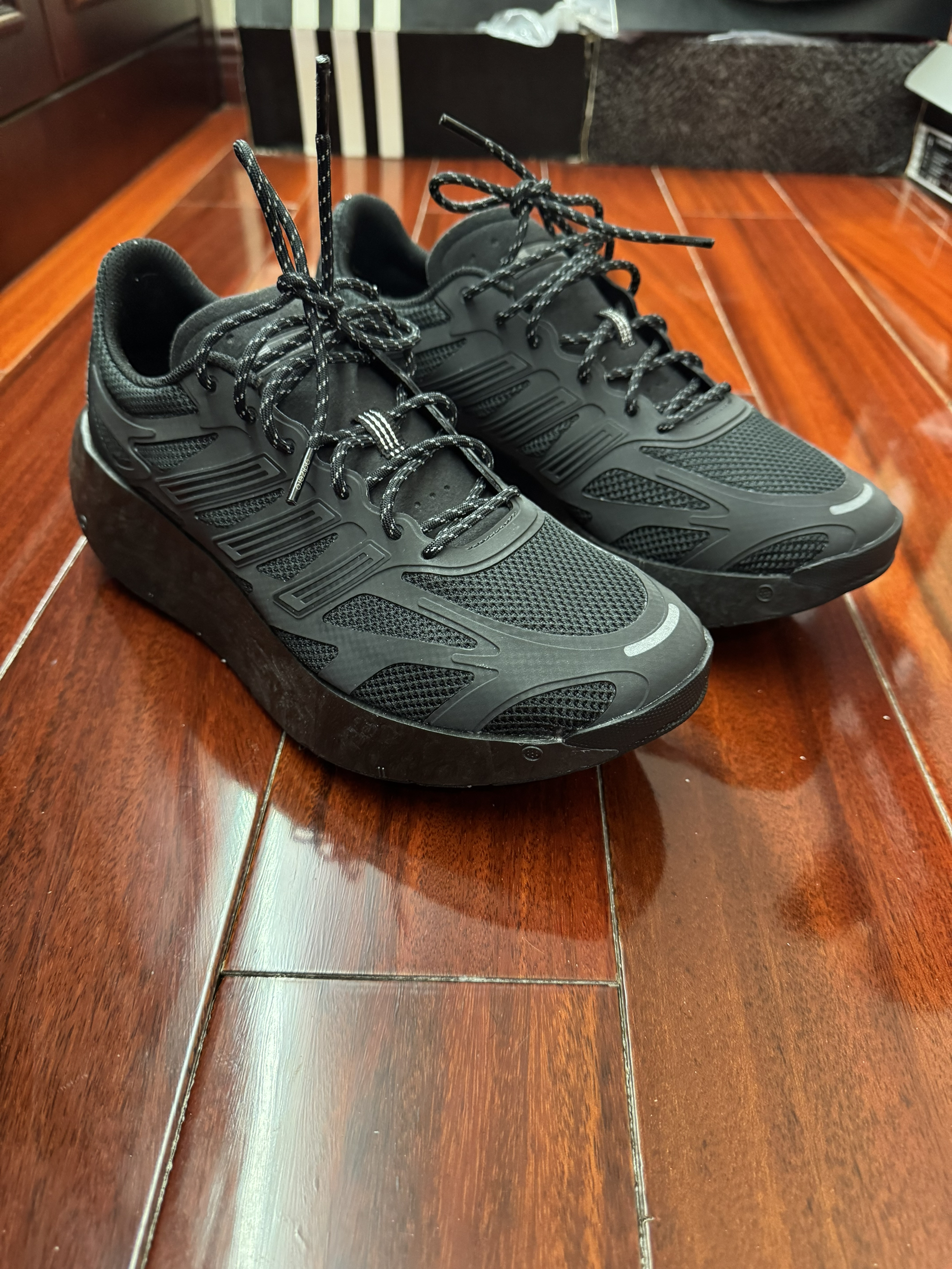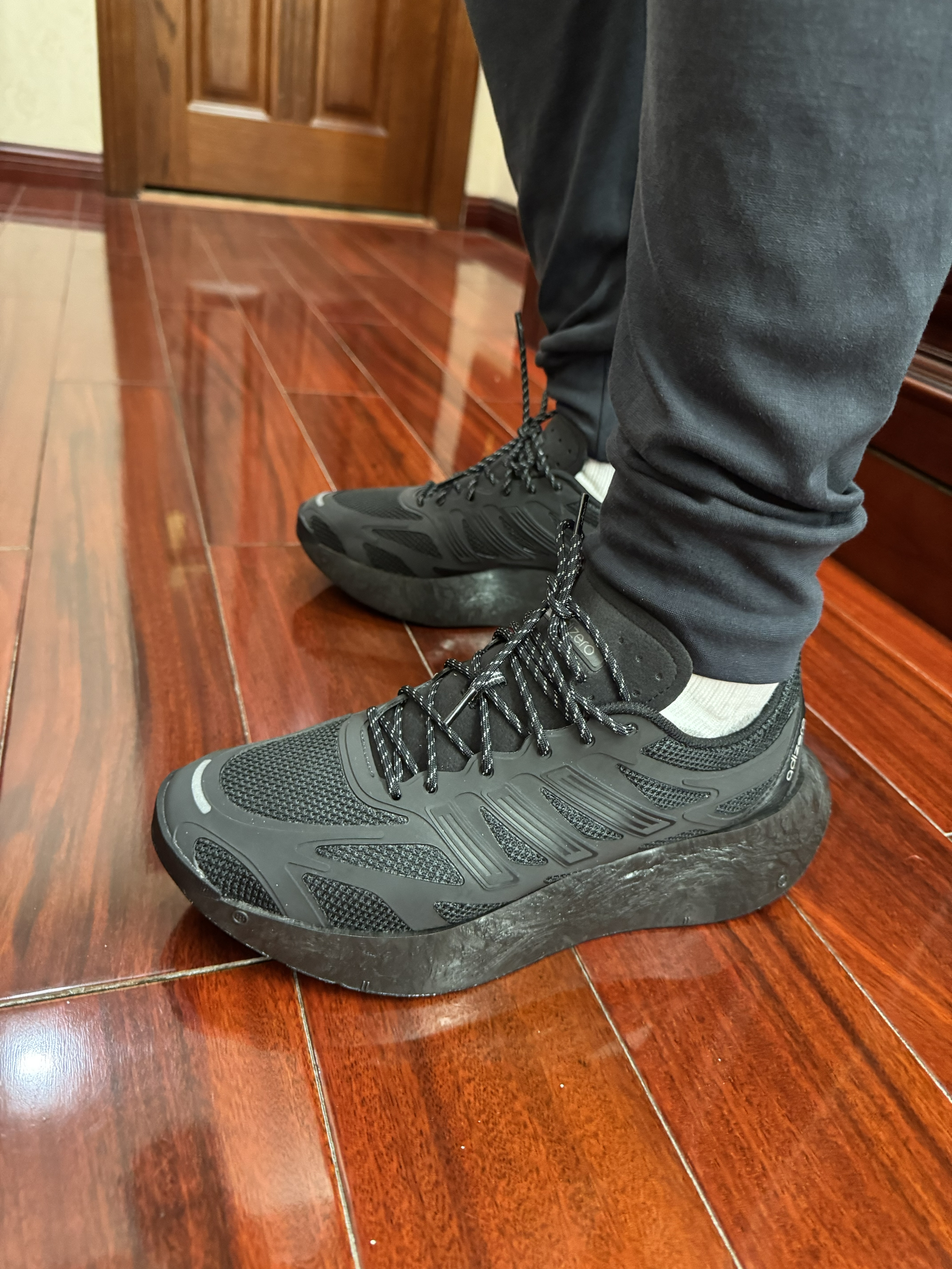 又入手新鞋咯,主要是颜值确实能打,而且日常通勤适配各种裤子,脚感韧弹,而且滚动感比较强👍👍就像后跟更软弹的绝影,但是安全感相对绝影要更好一些💯💯 缺点就是重量对于跑鞋略重了一点,42半重量大概370左右,日常通勤穿搭不计较。🆒🆒