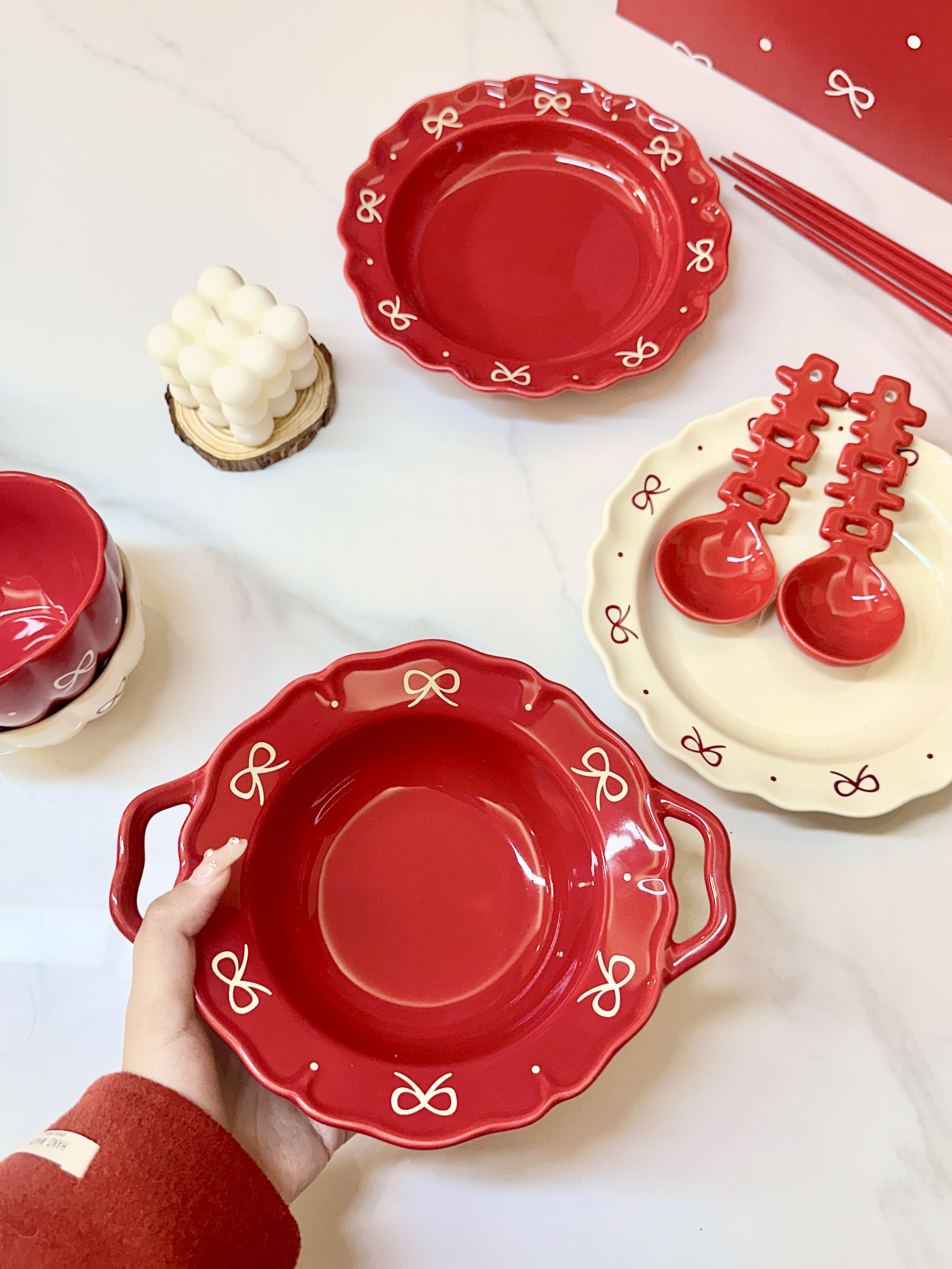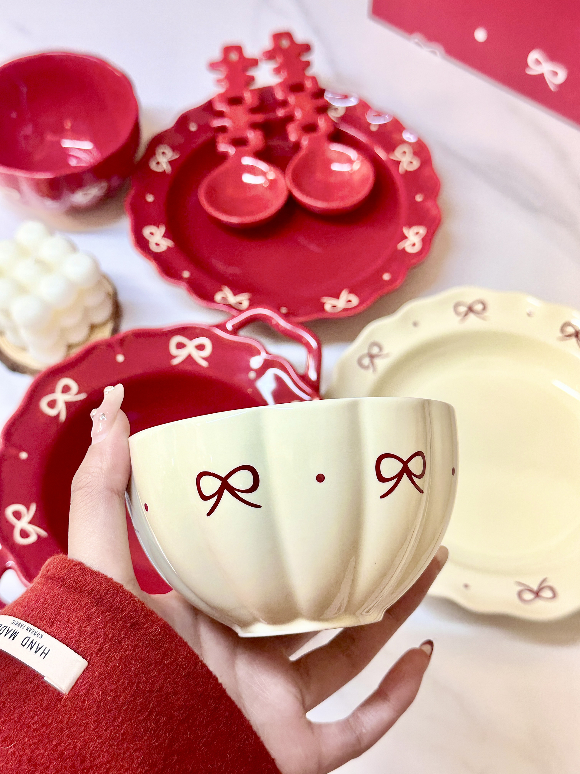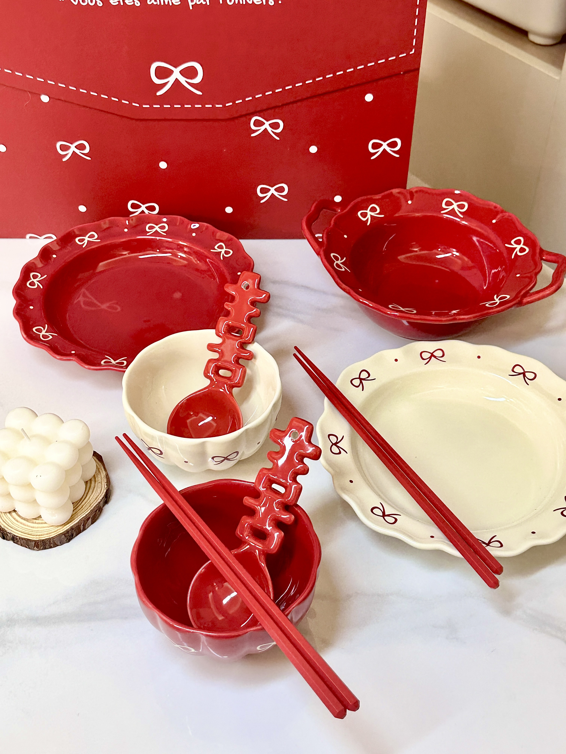 现在的结婚餐具也太好看了叭 一套礼盒包装,仪式感满满 打开我就知道是闺蜜喜欢的风格餐具是蝴蝶结和喜的元素 不会很死板,平时也可以用(0• •0)每个都是成双成对的,寓意很好! 正好适合他俩新婚小家的甜蜜生活