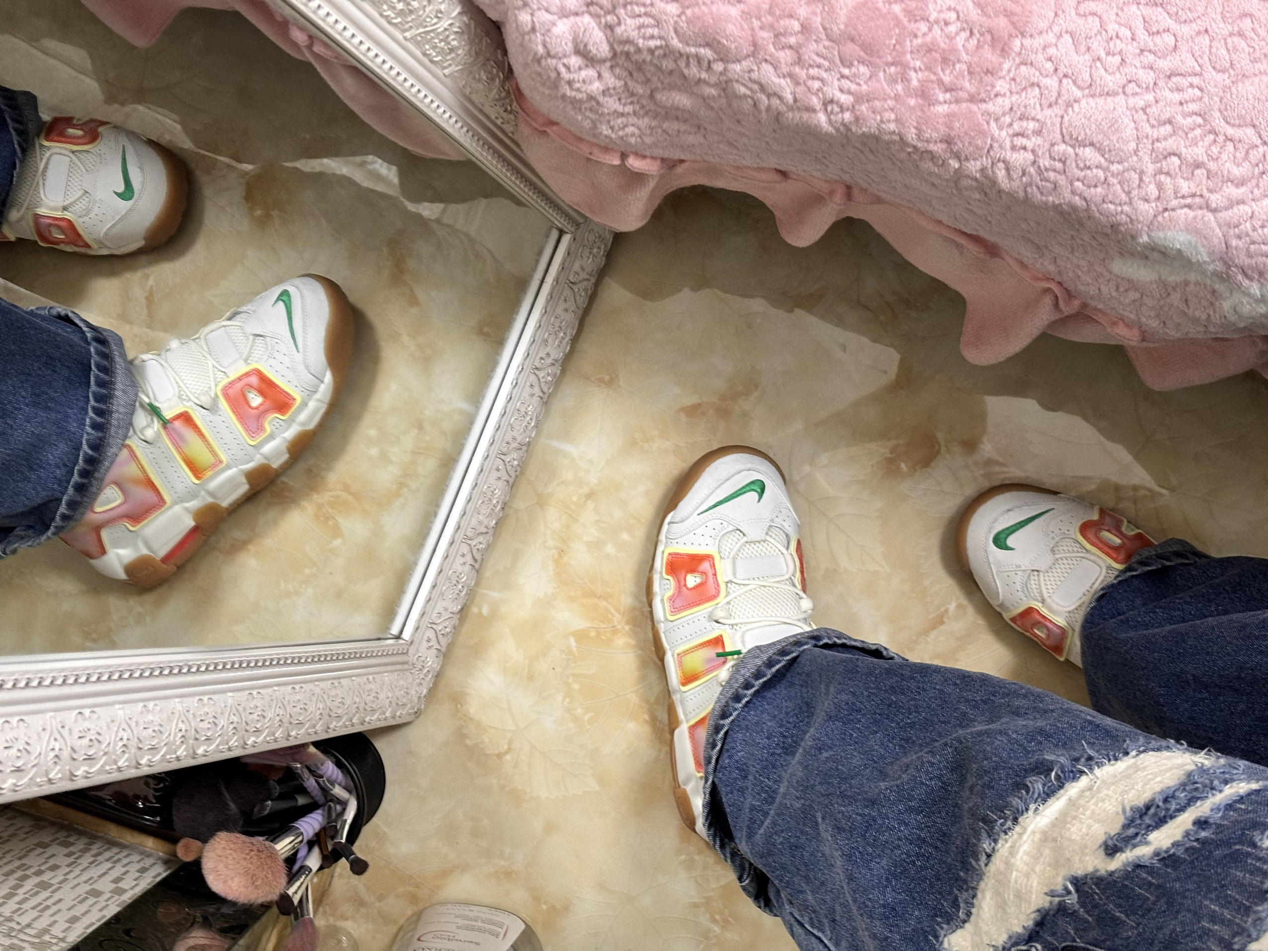 本篇笔记关联了Nike Air More Uptempo 皮蓬大Air 缓震 复古 防水 百搭 防滑耐磨 运动休闲鞋 GS/橙色/白色等商品,为用户提供真实的使用体验和购买参考。
