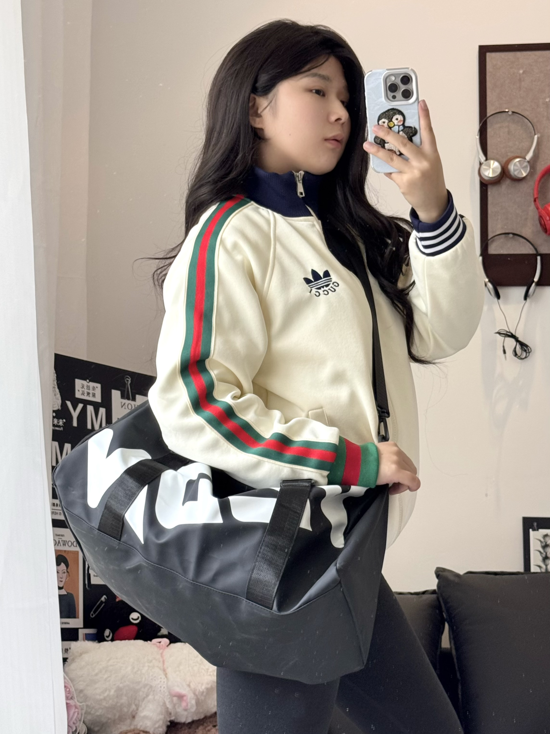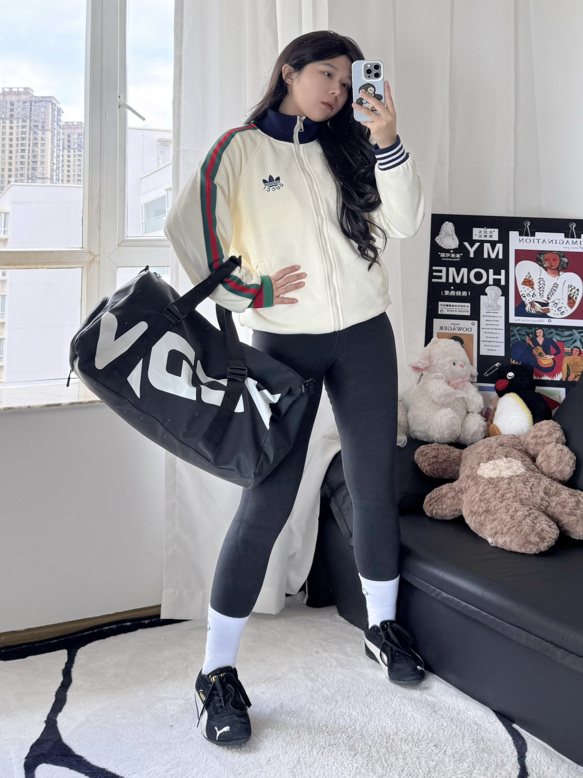 今天 你运动了嘛! 嗨喽 宝子们 今天和大家分享我的健身穿搭 必不可少的瑜伽裤 搭配赛车鞋 舒适好运动 健身包是 维动 VEIDOORN 的 这款健身包的容量刚好合适,不会很大 可以斜挎 手提 外层是皮质的防水防污 黑白配色很好看哦