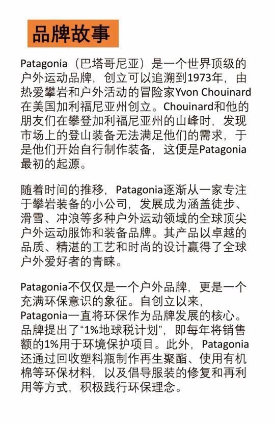 户外抓绒看巴塔哥尼亚,品牌介绍“为地球打工”巴塔哥尼亚(Patagonia)是美国户外用品品牌,由伊冯·乔伊纳德(Yvon Chouinard)于1973年创建。巴塔哥尼亚(Patagonia)以生产高质量的冲浪、攀岩和登山等户外用品而闻名世界,素有户外“GUCCI”之称。2022年9月,巴塔哥尼亚(Patagonia)创始人、亿万富翁伊冯·乔伊纳德(Yvon Chouinard)宣布放弃公司所有...