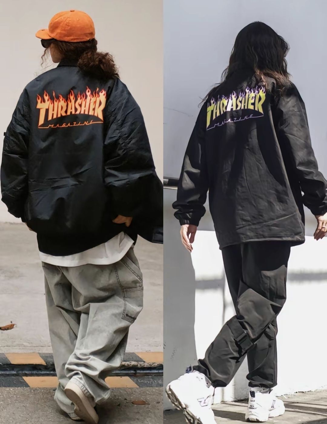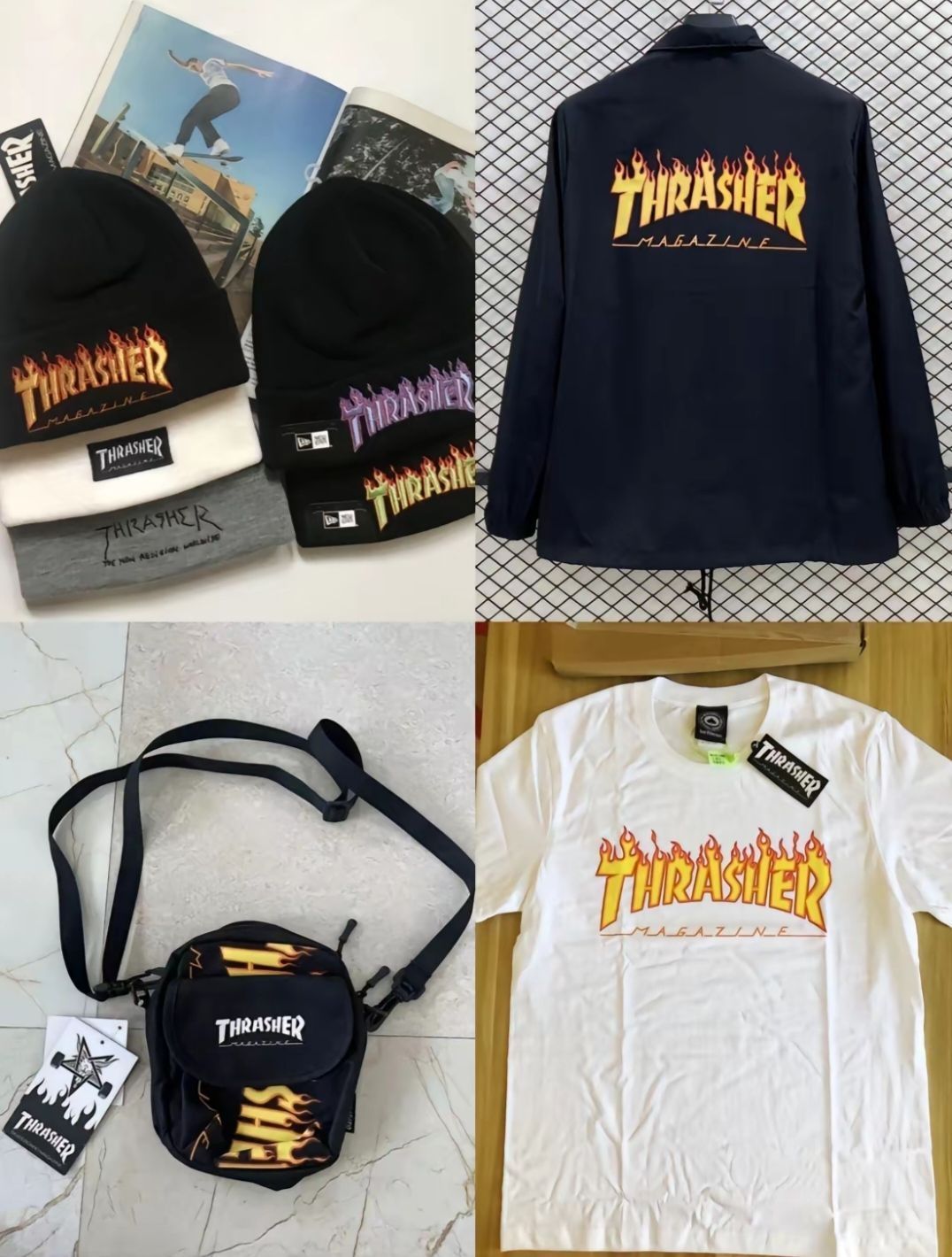 本篇笔记关联了Thrasher 纯色翻领口袋火焰教练夹克 黑、【王一博同款】Thrasher REFLECTIVE FLAME 燃烧火焰印花街头直筒圆领短袖T恤 黑/黄火焰、Thrasher JLP日版 火焰印花双面夹克 男女同款 THRAMJ045 黑等商品,为用户提供真实的使用体验和购买参考。