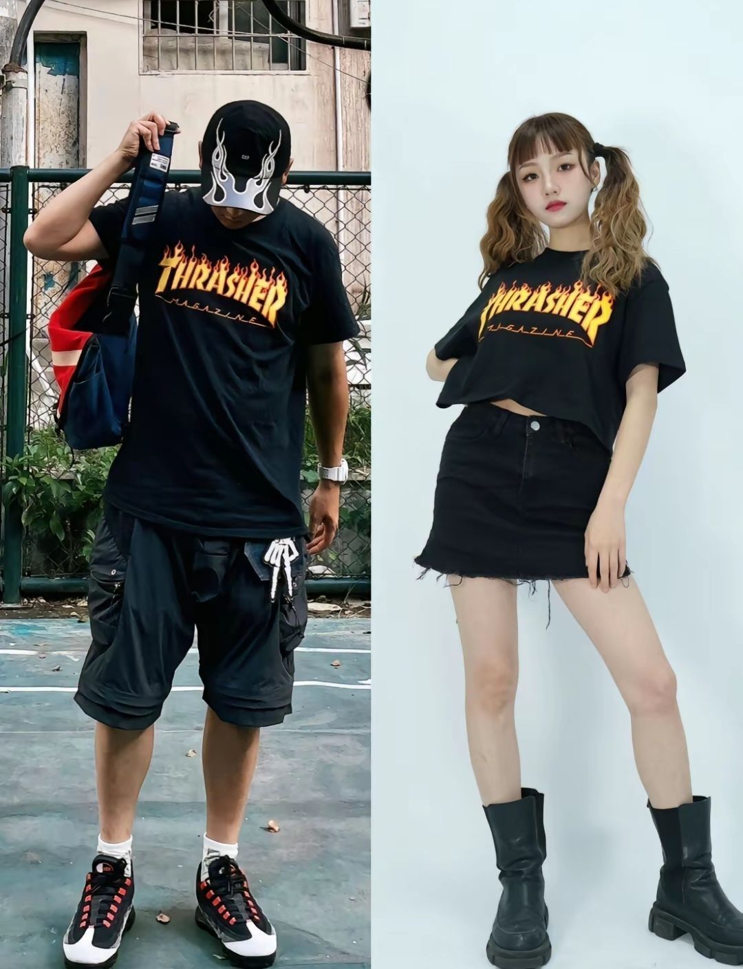 滑板界的圣经!火焰”牌子是THRASHER。它是美国著名滑板杂志《Thrasher Magazine》旗下的街头品牌,创立于1981年,以其独特的火焰Logo和粗犷的街头风格而闻名。THRASHER品牌的服饰、滑板等产品深受潮人喜爱,尤其是在滑板界具有很高的地位