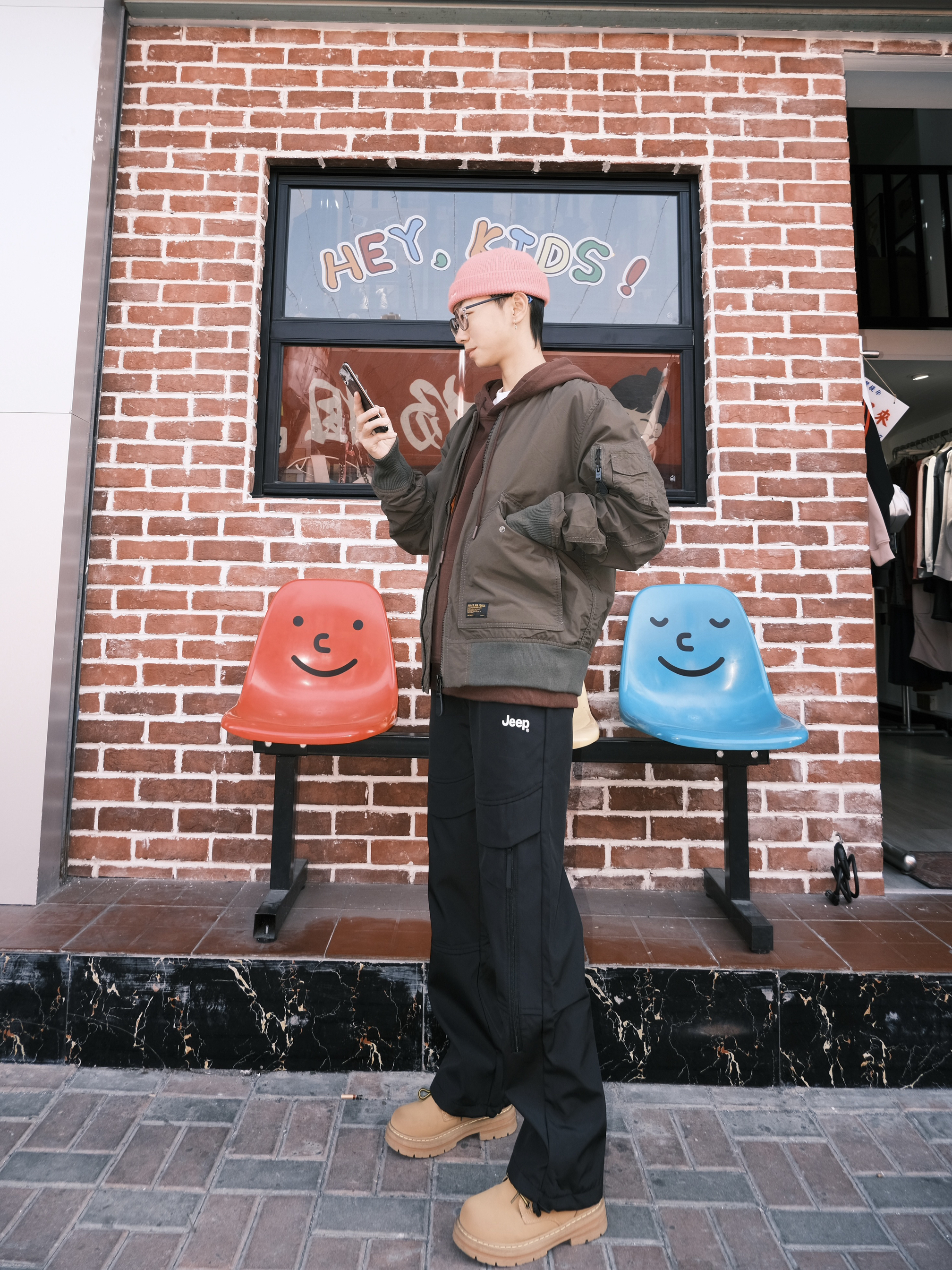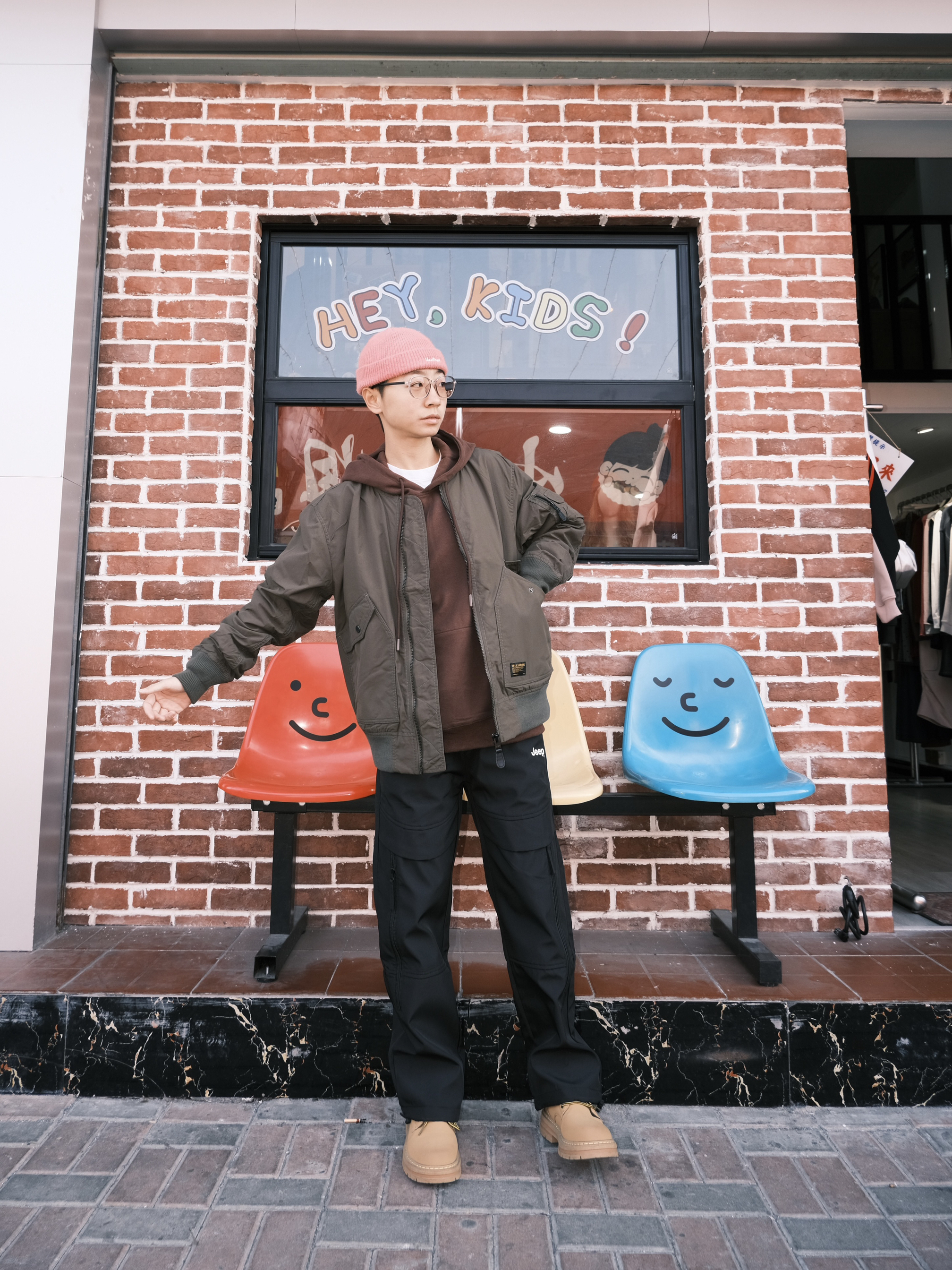 哈喽 欢迎来到哇哇哇穿搭分享频道! 172CM|55Kg|👔:M👖:m 嘟嘟嘟 机能风一下 一套让你秒变顶男的户外工装穿搭来也 上身军工风夹克外套 内搭巧克力色卫衣 层次感拉满! 下半身搭配jeep 工装机能裤 加绒的嘞 百搭舒适 户外防风第一名 gogogo 出门玩咯~