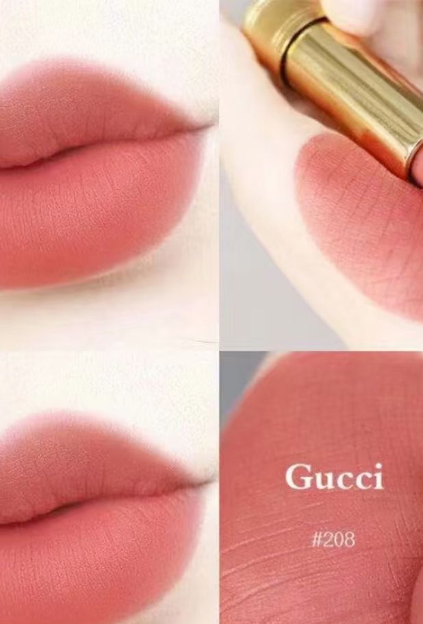 Gucci古驰金管哑光208,枫糖蜜茶棕,减龄又温柔口红调和橘棕调刚得刚和好,薄涂种有一还奶茶感,温柔又气质的感觉丝绒哑光质地,着色力好,厚涂薄涂都可
