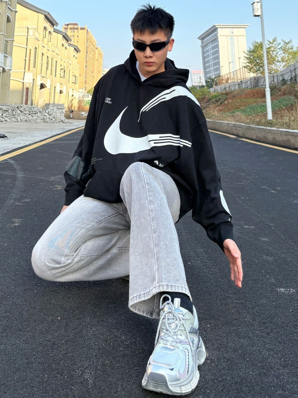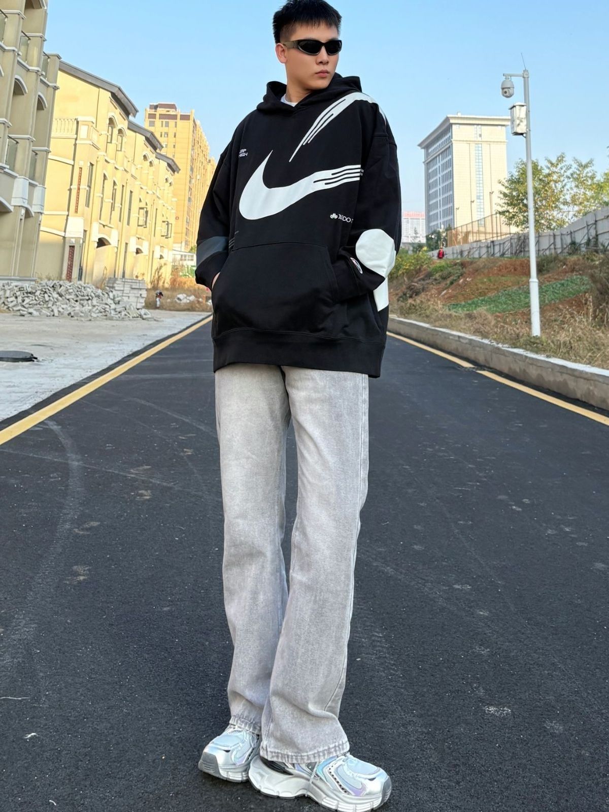 hello 大家好,立志成为潮流博主的今日ootd 今天是帅气男孩哦 上身一件休闲卫衣穿搭cool,前后的logo设计感满满 搭配一条水洗纯色牛仔长裤 穿出一身的时尚气息,推荐给大家哦 鞋子是黑武士系列老爹鞋 图源网络侵删