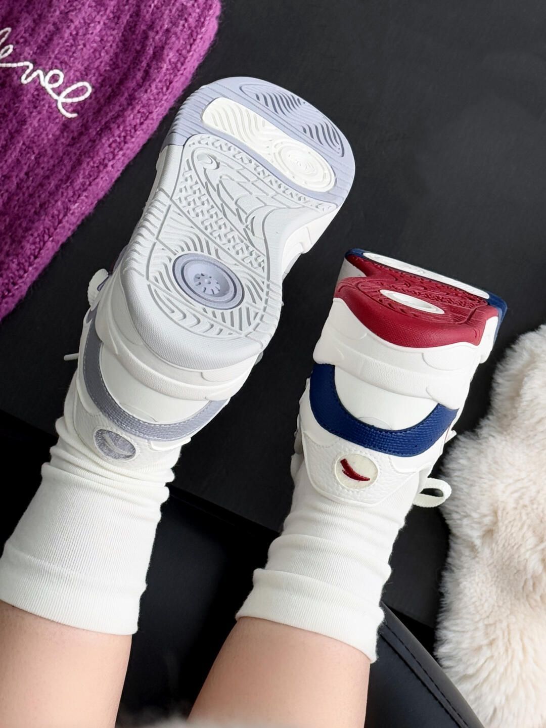 踏波浪鞋〰配色要不要做的这么好看哇👀 红配蓝有新年的氛围了都 过年穿这双应个景! 香芋紫也蛮温柔的~比较日常百搭 厚底板鞋一般都挺显乖的是我的菜了 底子挺软的很舒服而且也不笨重 搭配一下给冬天来点颜色瞧瞧
