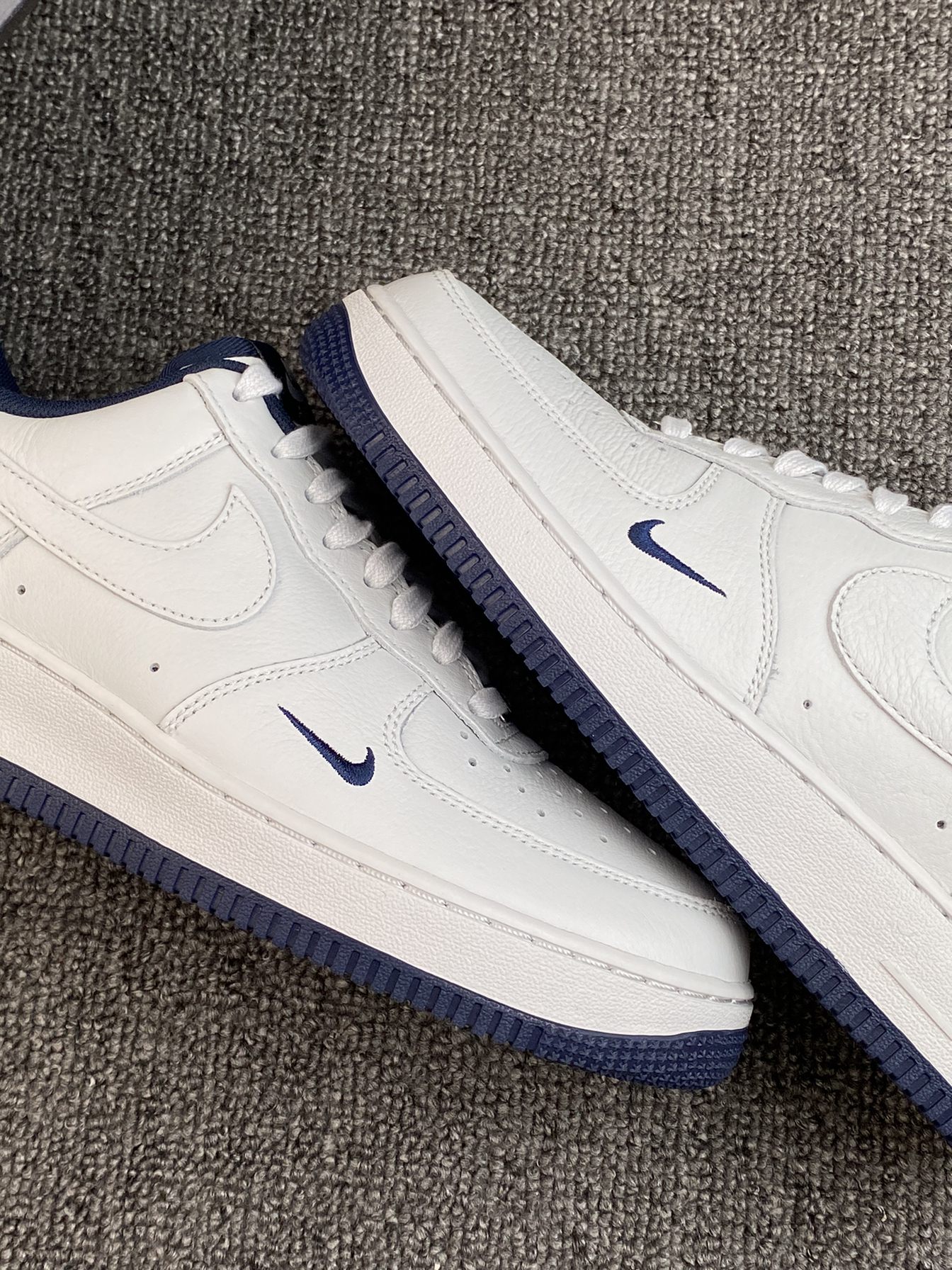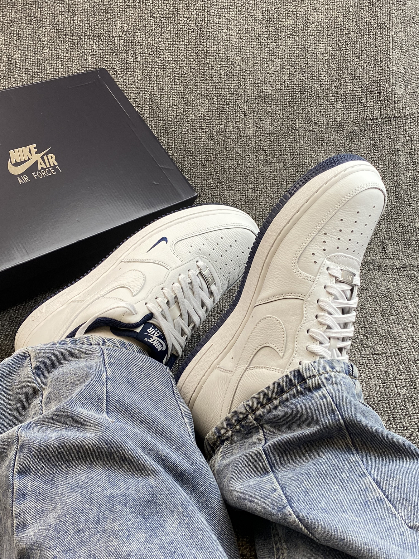 哈喽👋这里是老歌啊 今天分享这双Air Force 1 板鞋 空军谁能拒绝呀,百搭首选啦 今天的白色我感觉有些偏灰,搭配了深蓝色 整体是很干净的那种少年感哦 鞋头侧边还有一个小Logo,蛮精致的✨