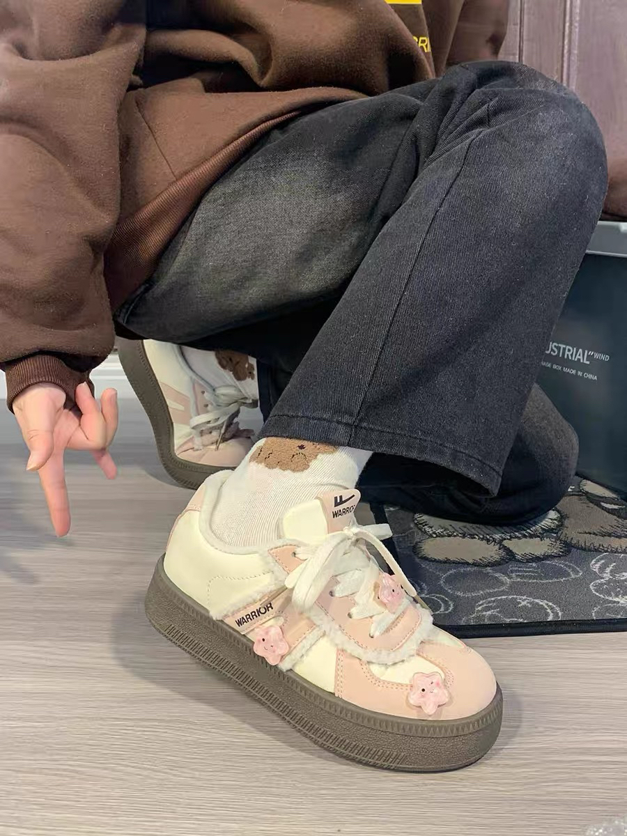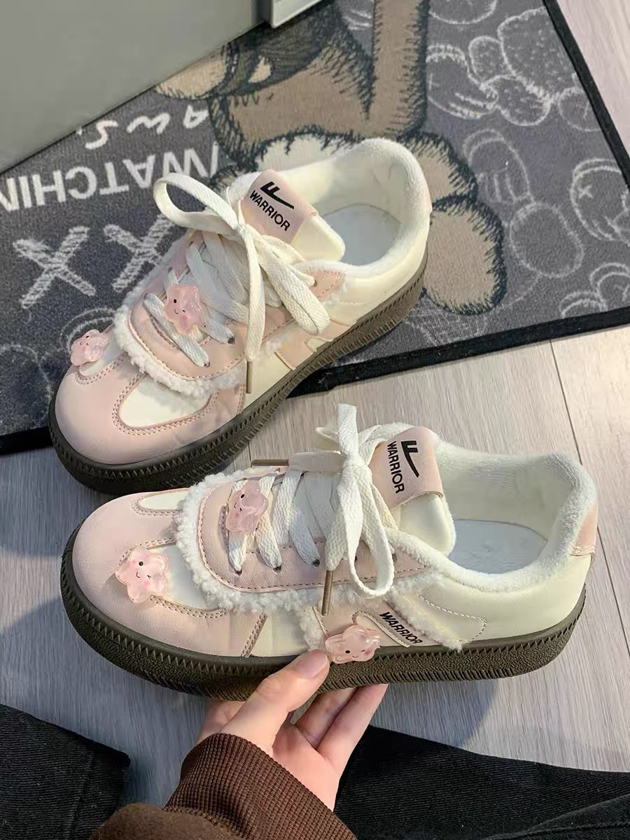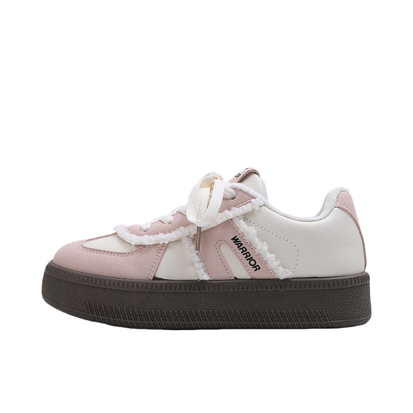 一、时尚新宠 冬日寒风,时尚达人觅保暖个性鞋,粉色回力成新宠,独特设计与温暖质感,添街头温柔色。 二、粉色浪漫 鞋面粉调柔似暖阳,粉白配清新甜美如童话。鞋面粉花点睛,灵动俏皮显少女心。 三、温暖舒适 天冷脚需暖,鞋内毛绒如怀,呵护双脚。厚底支撑好,隔寒行舒适。 四、品质传承 鞋舌“WARRIOR”醒目,回力品牌与品质象征,岁月沉淀,工艺时尚兼具,鞋融经典时尚,实用又潮。 五、百搭亮...