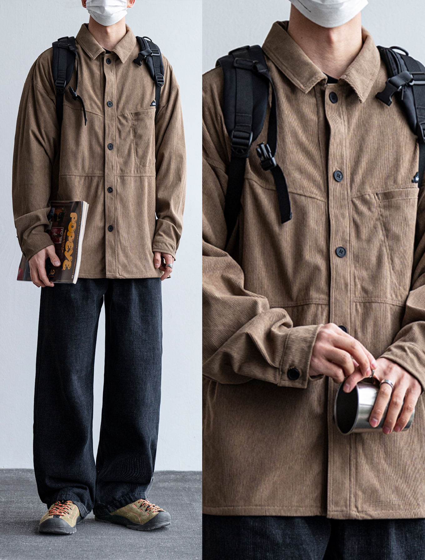 深浅卡其不同是短裤我单方面宣布是配色救星 都是大众人群的首选色,很好搭配 无论是户外还是日系都可以轻轻松松完成穿搭! 抗冻又百搭!灰常推荐! 视觉上面可观性强,丰富了整体穿搭的同时 单品的简单化可以为它营造出更多的穿搭可能 整体慵懒又giao级,很适合春天出街或通勤! - 模特:身高172CM | 体重62.5KG