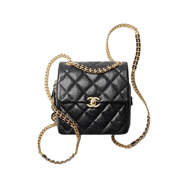 CHANEL香奈儿 22P 复古金扣标志性菱格纹链条肩带翻盖式开合 牛皮 背包双肩包 女款 黑色