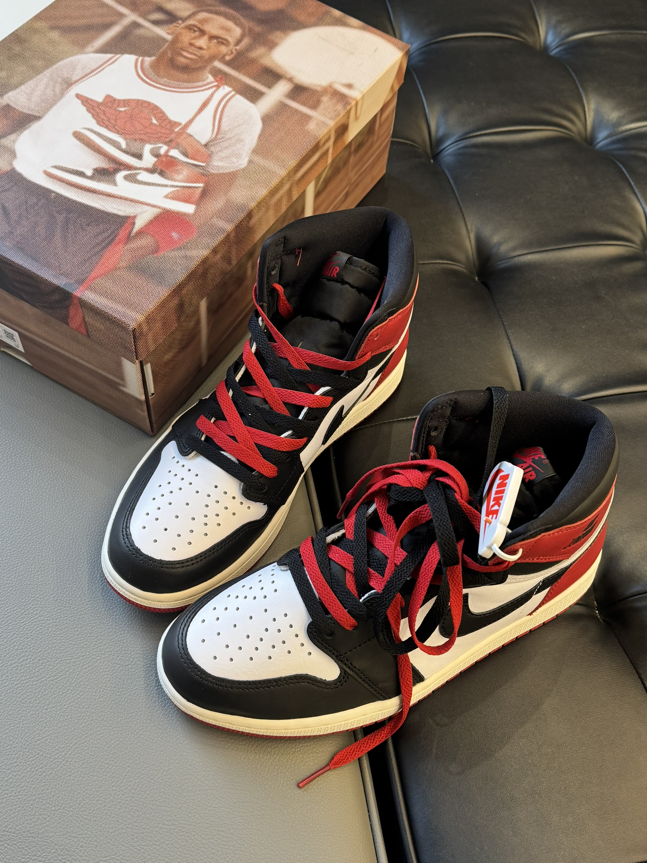 本篇笔记关联了Air Jordan 1 板鞋 运动休闲鞋 复古潮流支撑合成革 OG/高帮/男款/黑脚趾/红色、Air Jordan 1 板鞋 运动休闲鞋 复古潮流支撑合成革 大童/黑色/红色/白色 等商品,为用户提供真实的使用体验和购买参考。