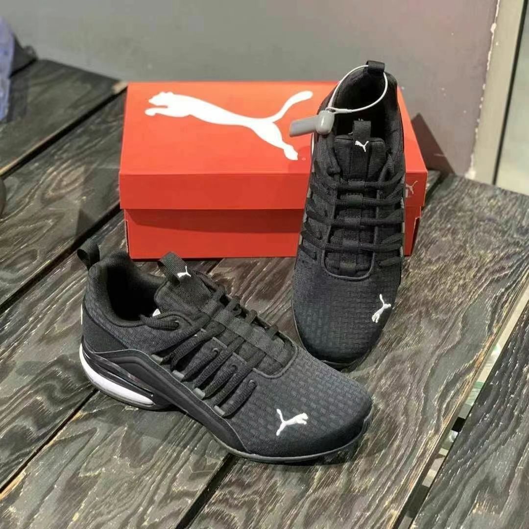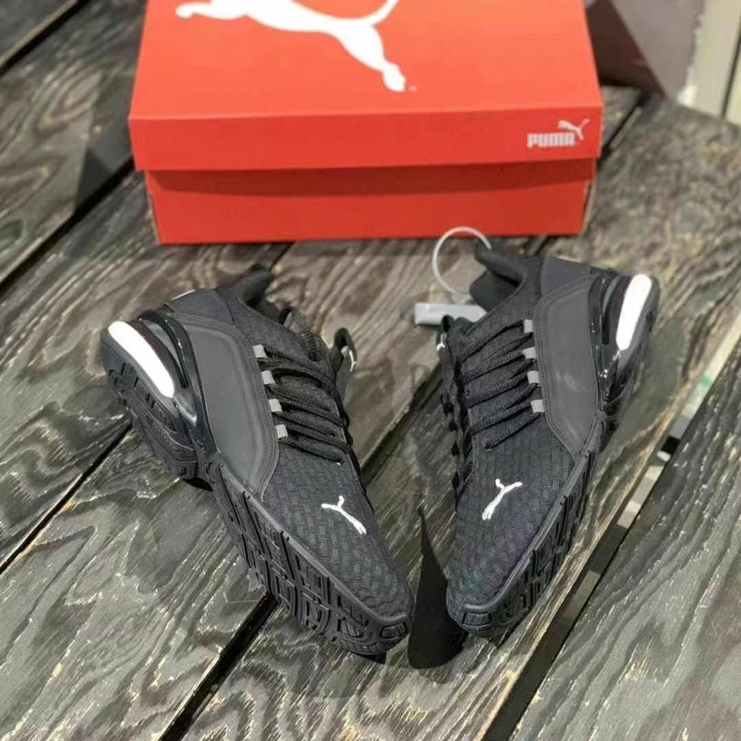 鞋尖独特,部分款式类似赛车鞋,有速度感。配色丰富,如经典黑白、亮眼黑绿等,荧光绿刺绣美洲狮标志吸睛。鞋面采用透气针织面料,不同配色编织花纹不同,鞋跟有粗体logo字标和便捷拉环固定带。