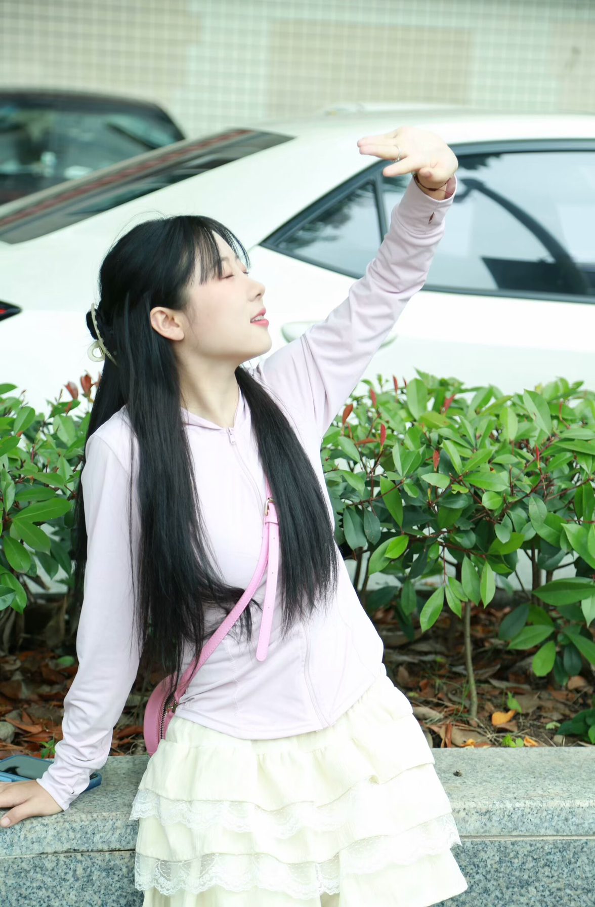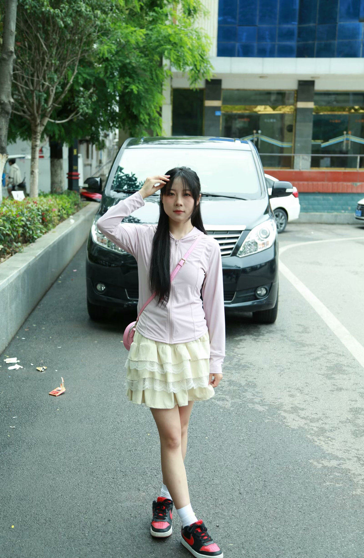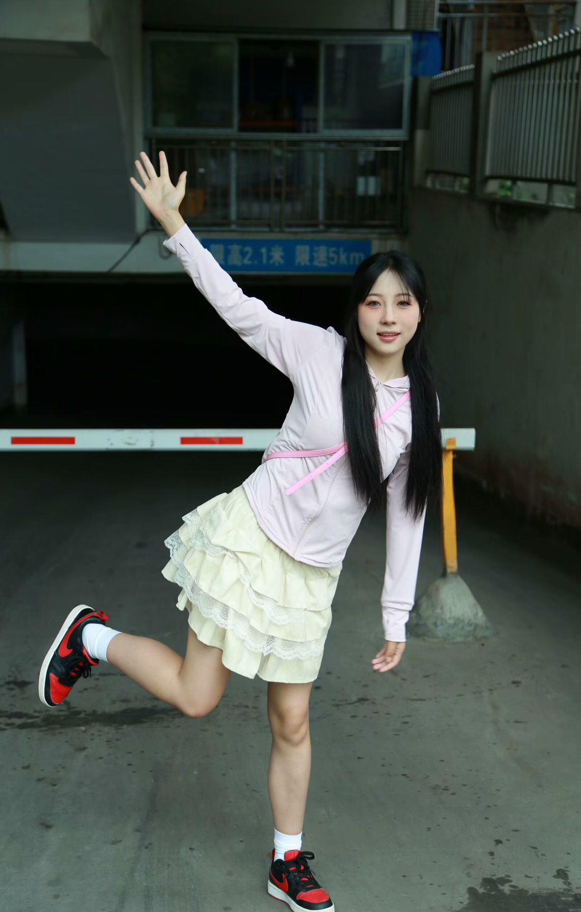 当时穿的时候没有特意去搭,发现拍出来挺好看哒,但是这个妆太丑了